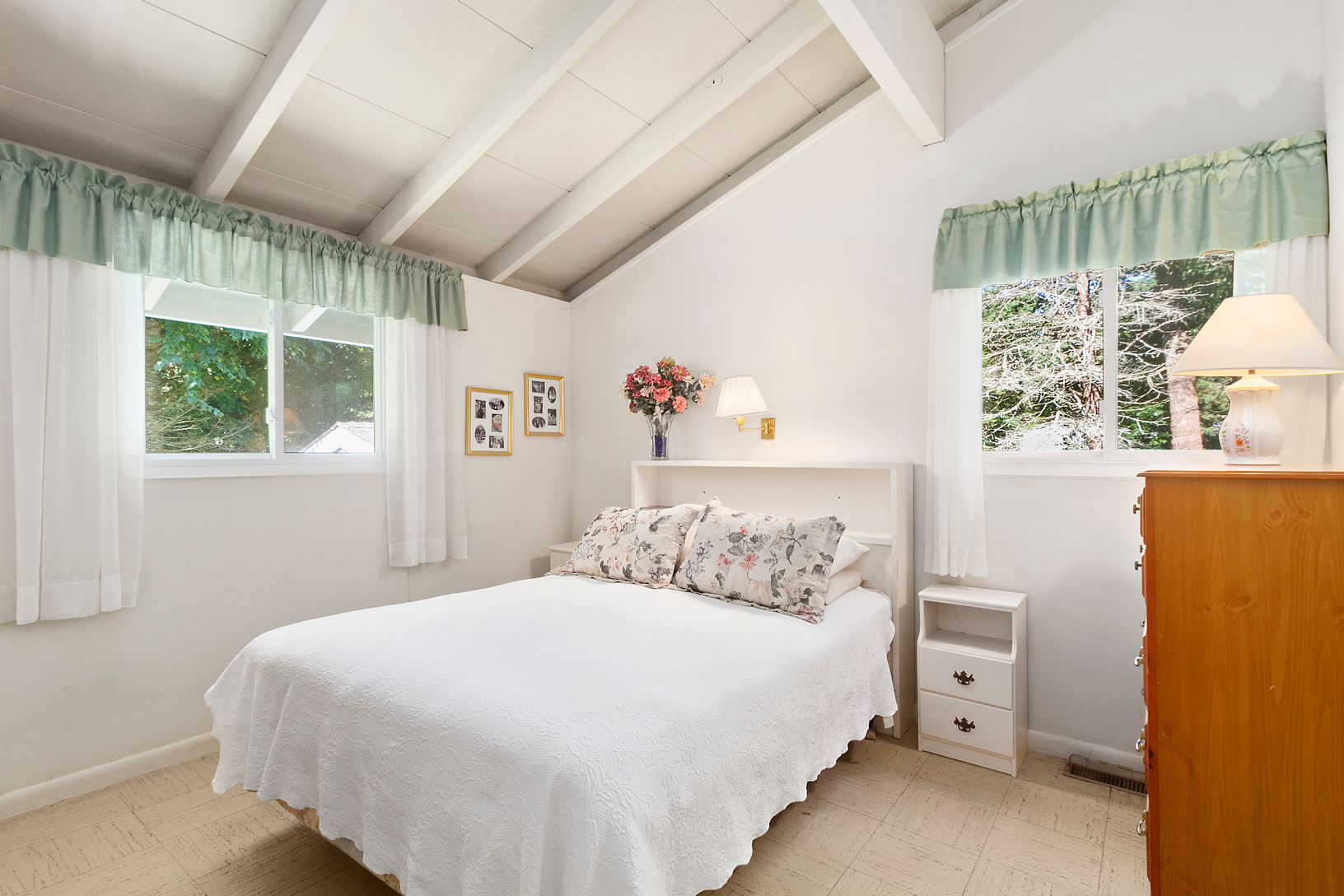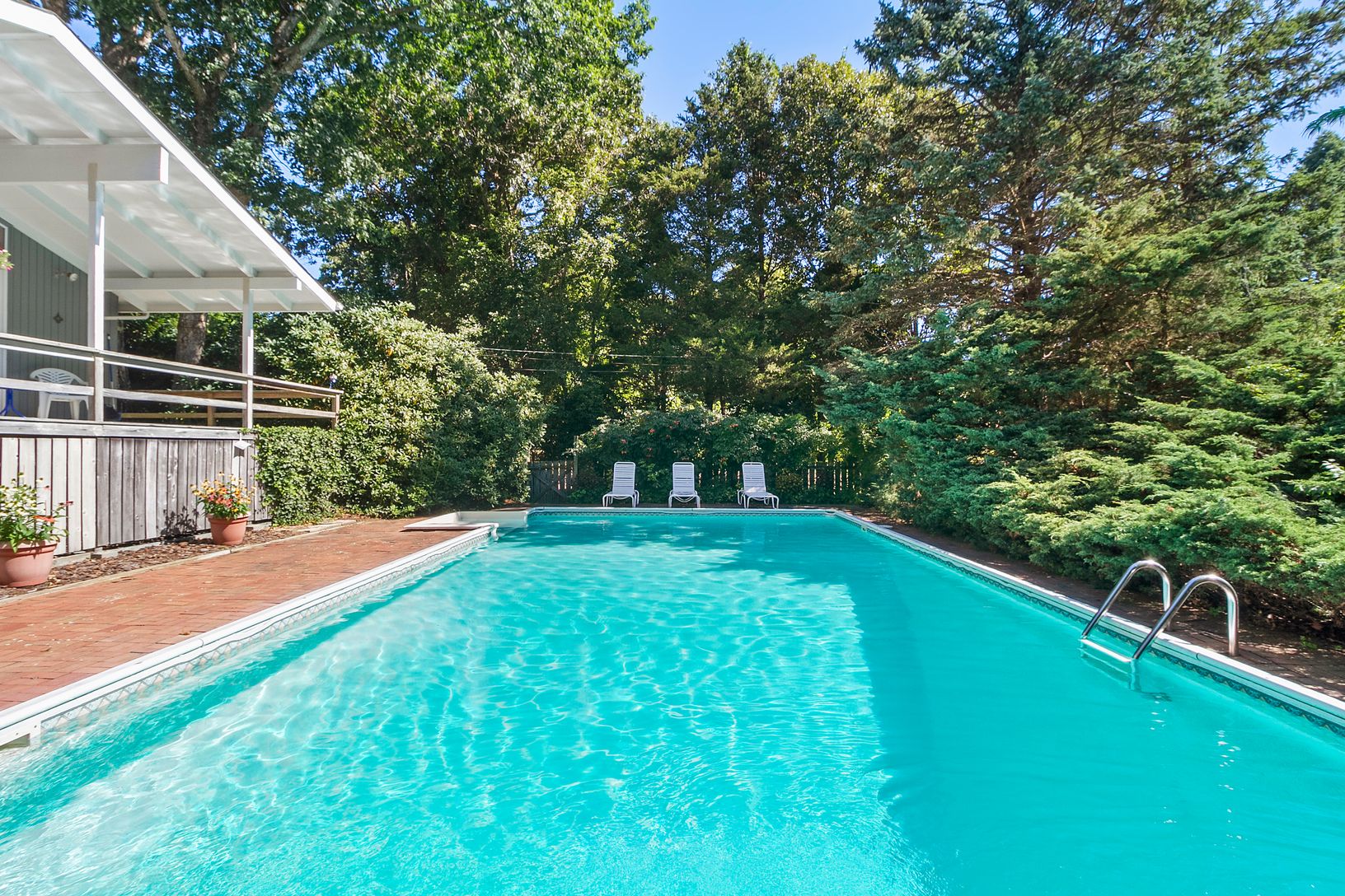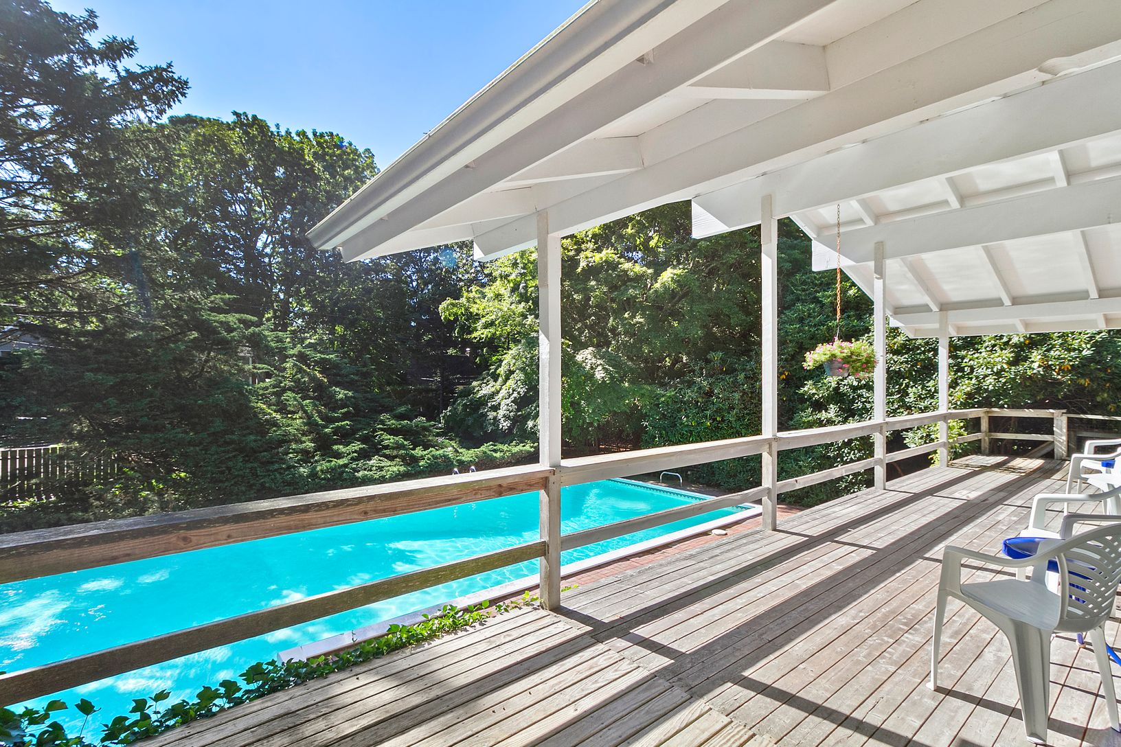 Minutes to resident only bay beach and marina, this move in ready beach house offers three bedrooms and one and a half bathrooms. The oversized windows and vaulted ceiling offer an abundance of natural light throughout. Sliding doors off the living room lead to large wrap around decking with access down to 20 x 40 pool. Finish the expansive walk-out lower level to add additional living space and value.