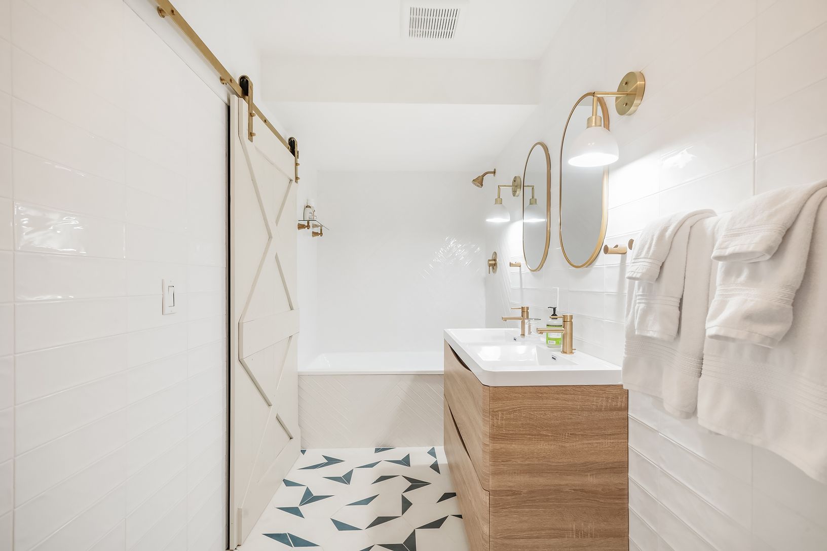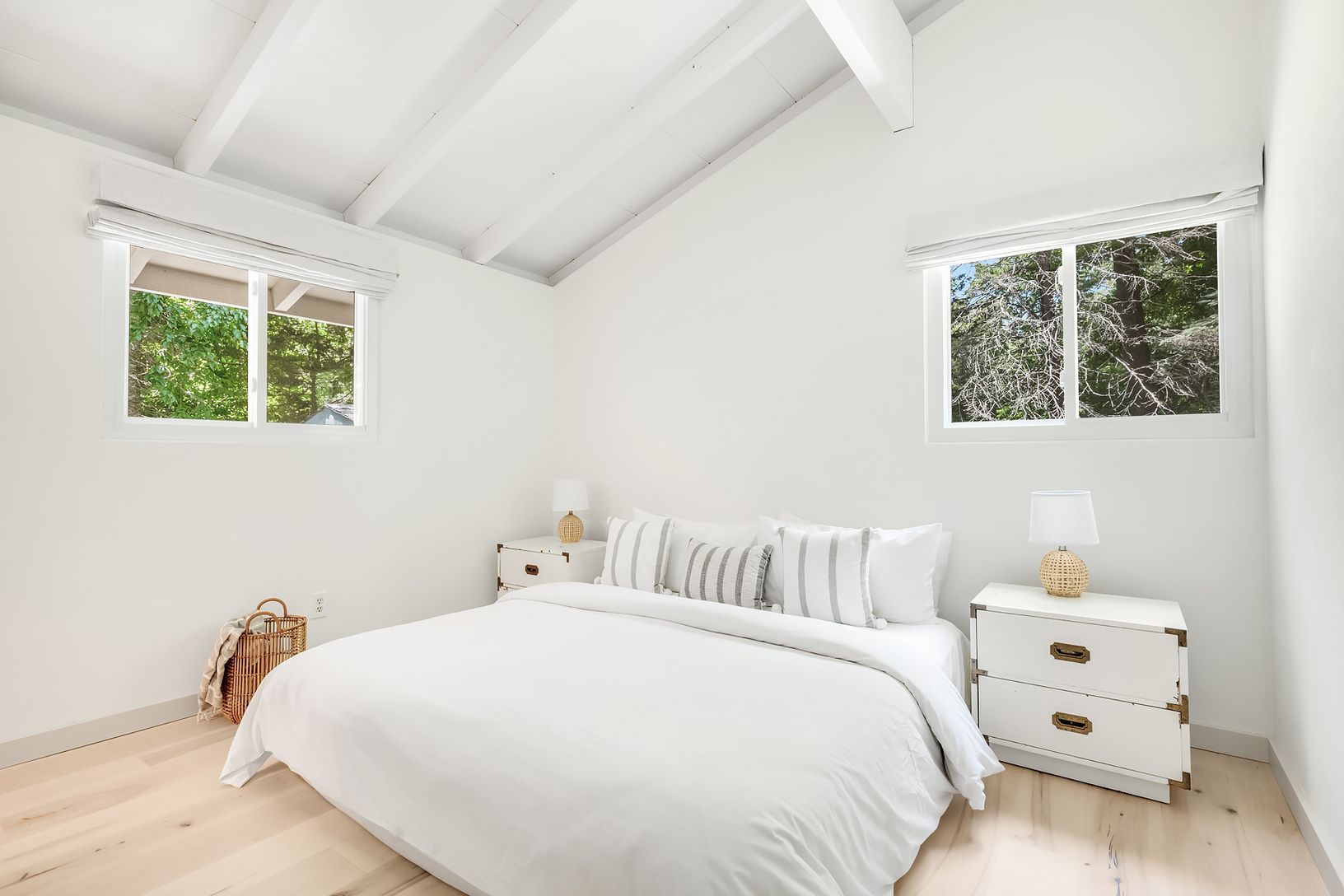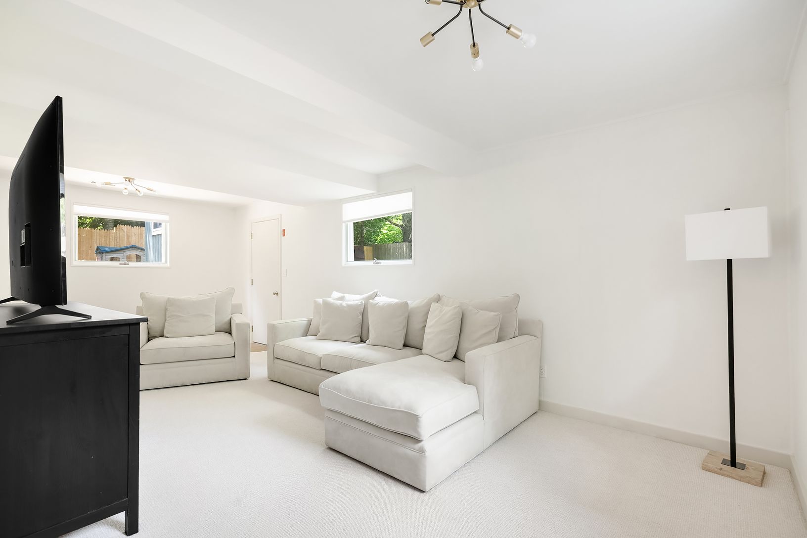 Minutes to resident only bay beach and marina, this move in ready, stylish beach house offers four bedrooms, three bathrooms, open living room, and brand new kitchen. The finished walk out lower level features an additional media room, bedroom, bathroom, and laundry area. Find oversized windows, vaulted ceilings, and designer details throughout. Sliding doors off the living room lead to large wrap around decking with access to 20 x 40 heated p