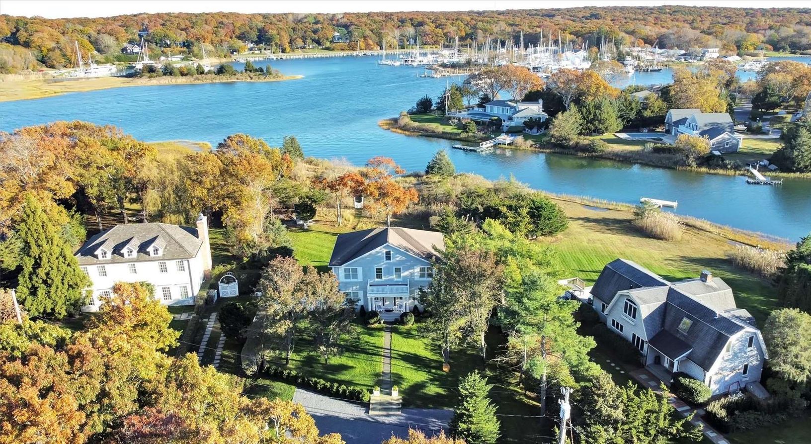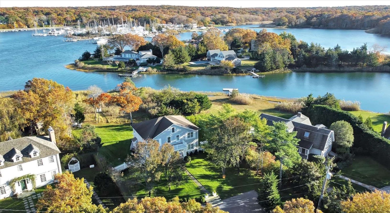 Stunning 4 Bedroom, open-concept home in the highly desirable area of Hampton Waters! This waterfront home has been recently renovated to perfection and is light, bright and cheery!! The views are spectacular and one may enjoy both the private Association Beach right down the cul-de-sac, as well as the dock, which is ideal for your small or large craft! Enjoy breathtaking views of Three Mile Harbor from almost every room in the home! The yard