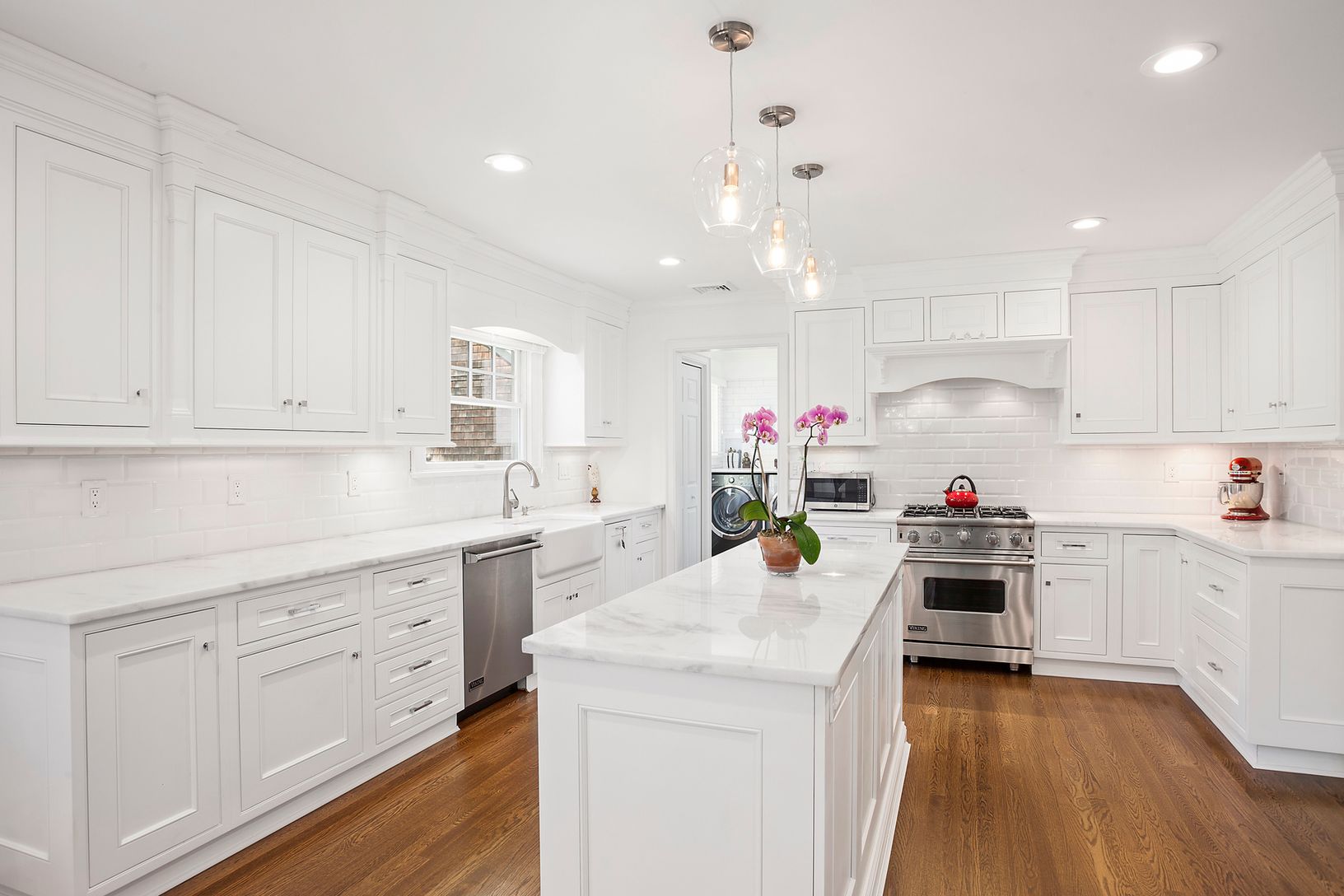 This perfectly pristine and modern home boasts a white gourmet kitchen with Viking appliances and quartz countertops, a sun-filled living room with fireplace, spacious dining room, two guest bedrooms with a shared bath, an additional en-suite guest bedroom, and a graciously sized en-suite master bedroom offering direct access to the pool, it's own fireplace and a white marble bathroom complete with soaker tub. The expansive finished basement w