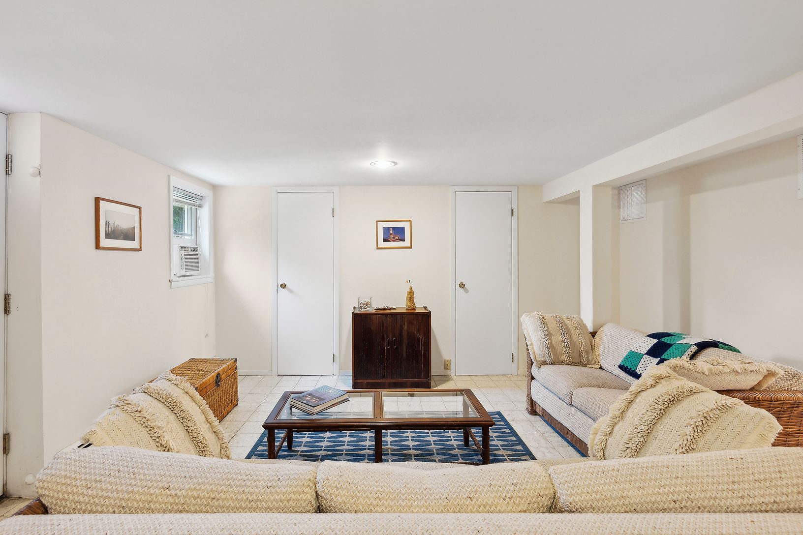 Situated in the coveted Hither Hills Beach Association of Montauk, this charming traditional-style home has been meticulously cared for and offers 2,500 sq ft of living space across three levels. Upon entering, you'll be greeted by a bright and airy living room featuring double-height ceilings, a wood-burning fireplace, and two sliding doors that open onto the back deck. This inviting space flows seamlessly into the kitchen, equipped with stai