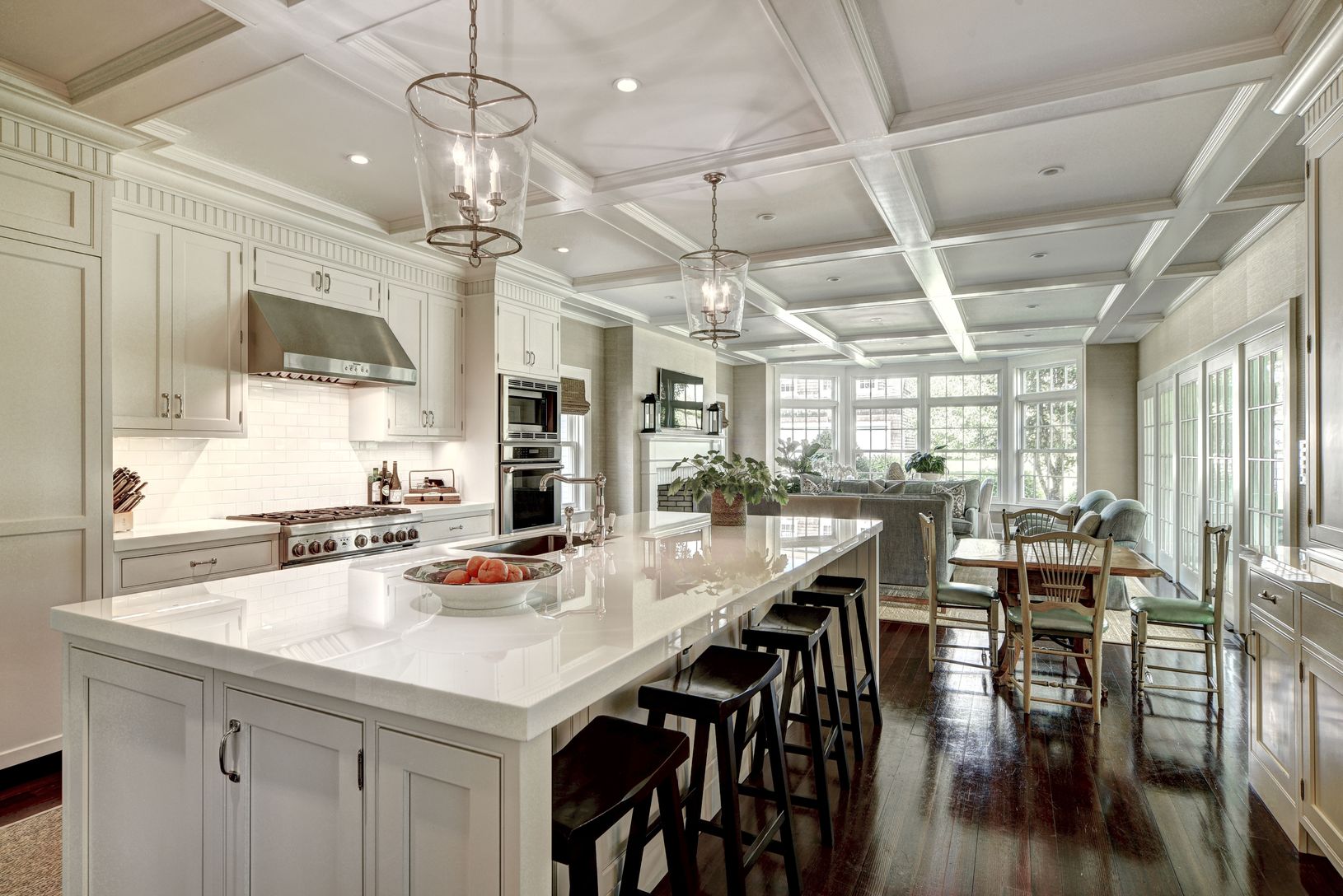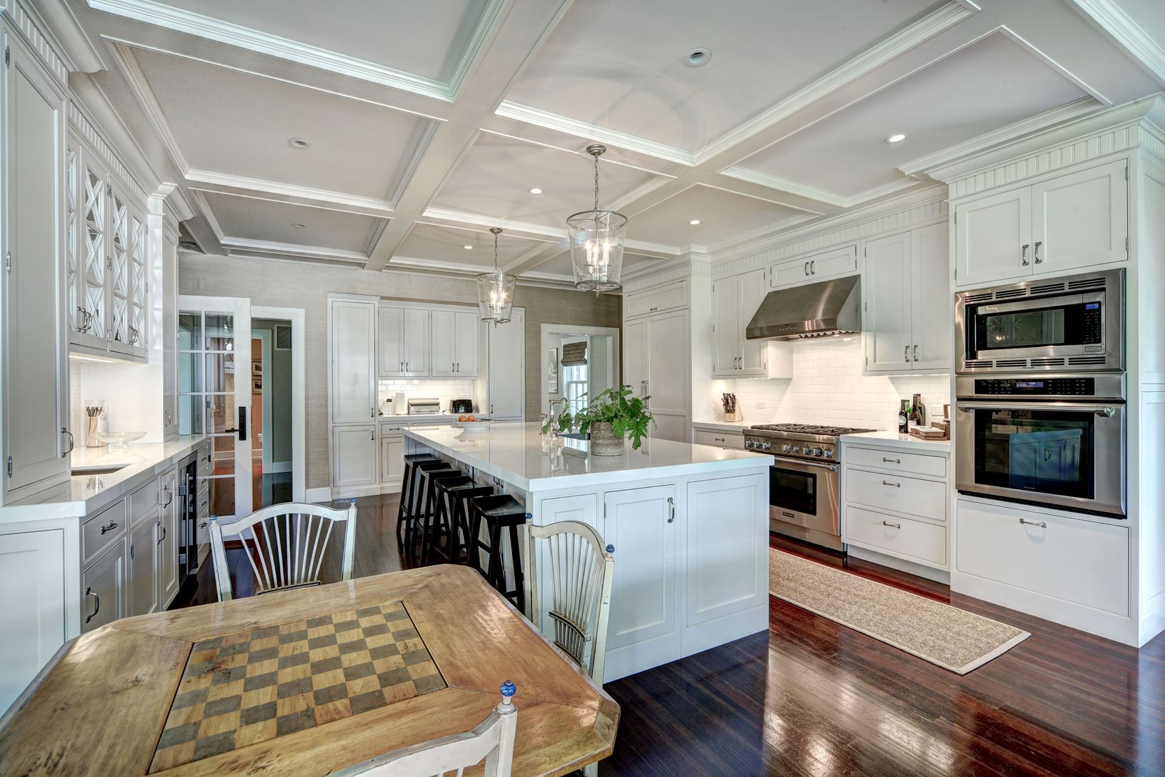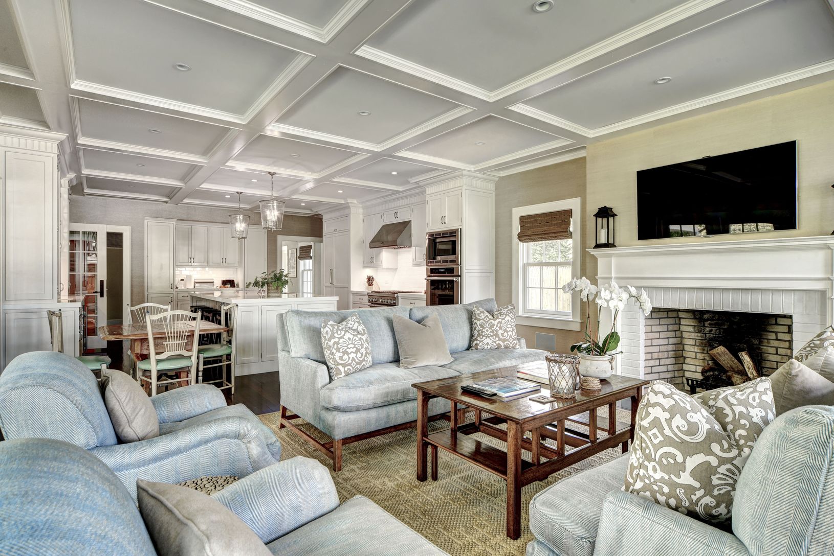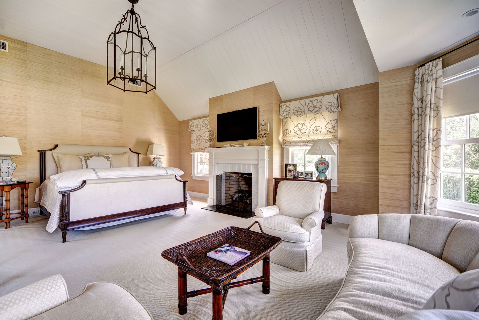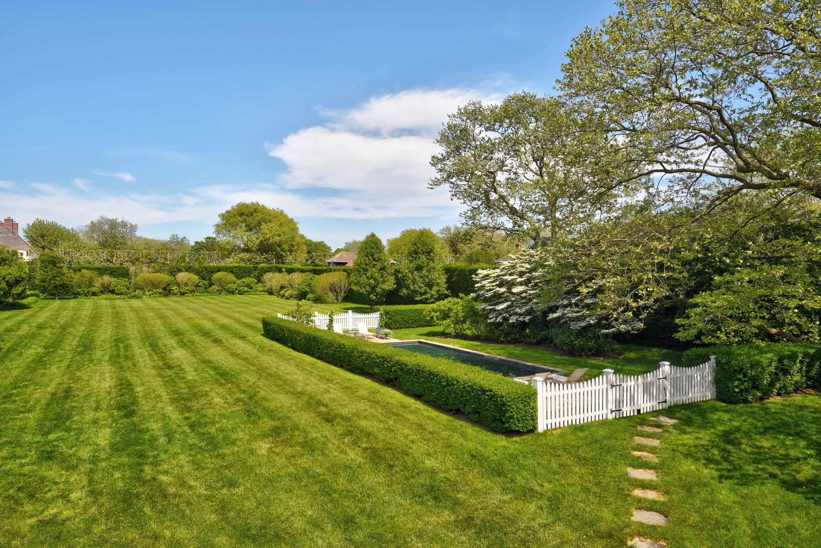 Graceful and refined living in Georgica, South of the Highway in East Hampton, takes plece on one-and-a-half acres. As you enter the foyer, a bright blue living room with fireplace greets you as well as the formal dining. There is an intimate, study for quiet reading in front of the cozy fireplace. Toward the back of the house is the stunning kitchen with an open living space with fireplace fronted by a wall of French doors and windows to v