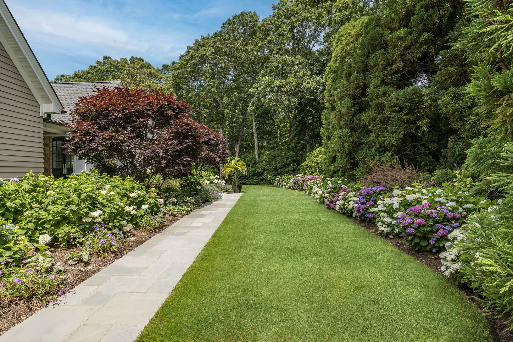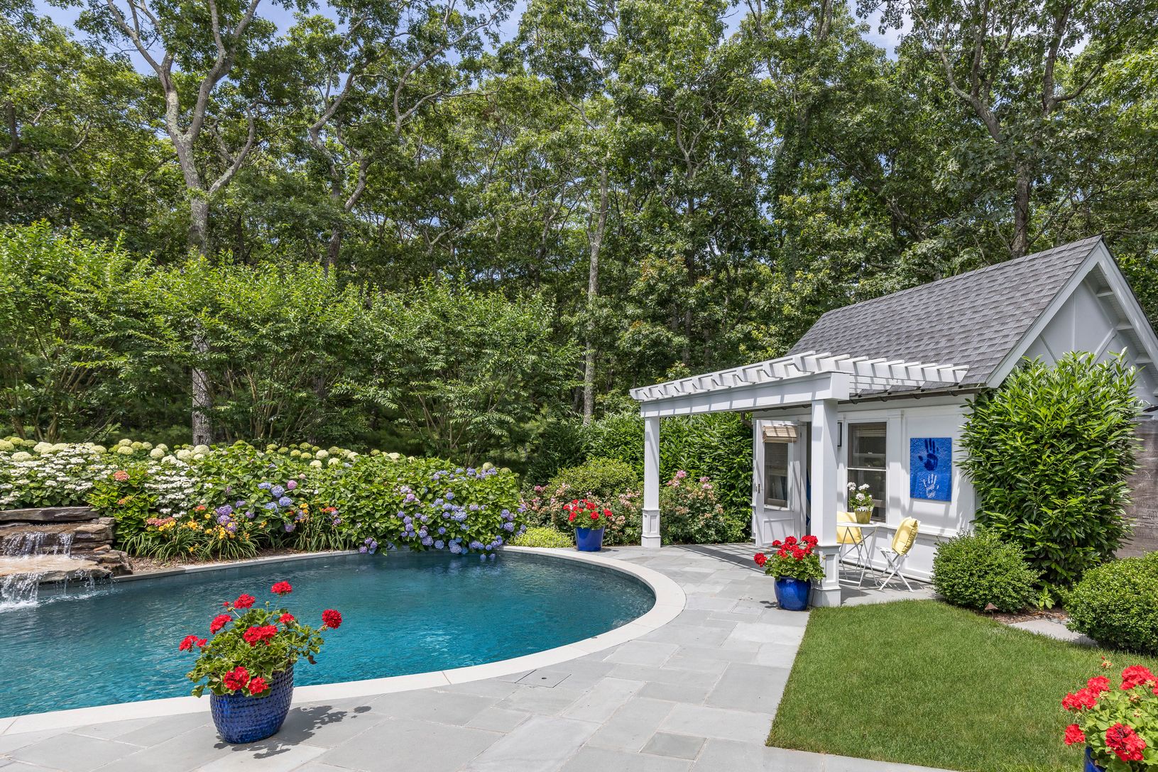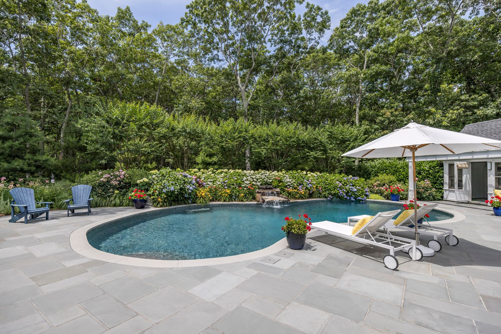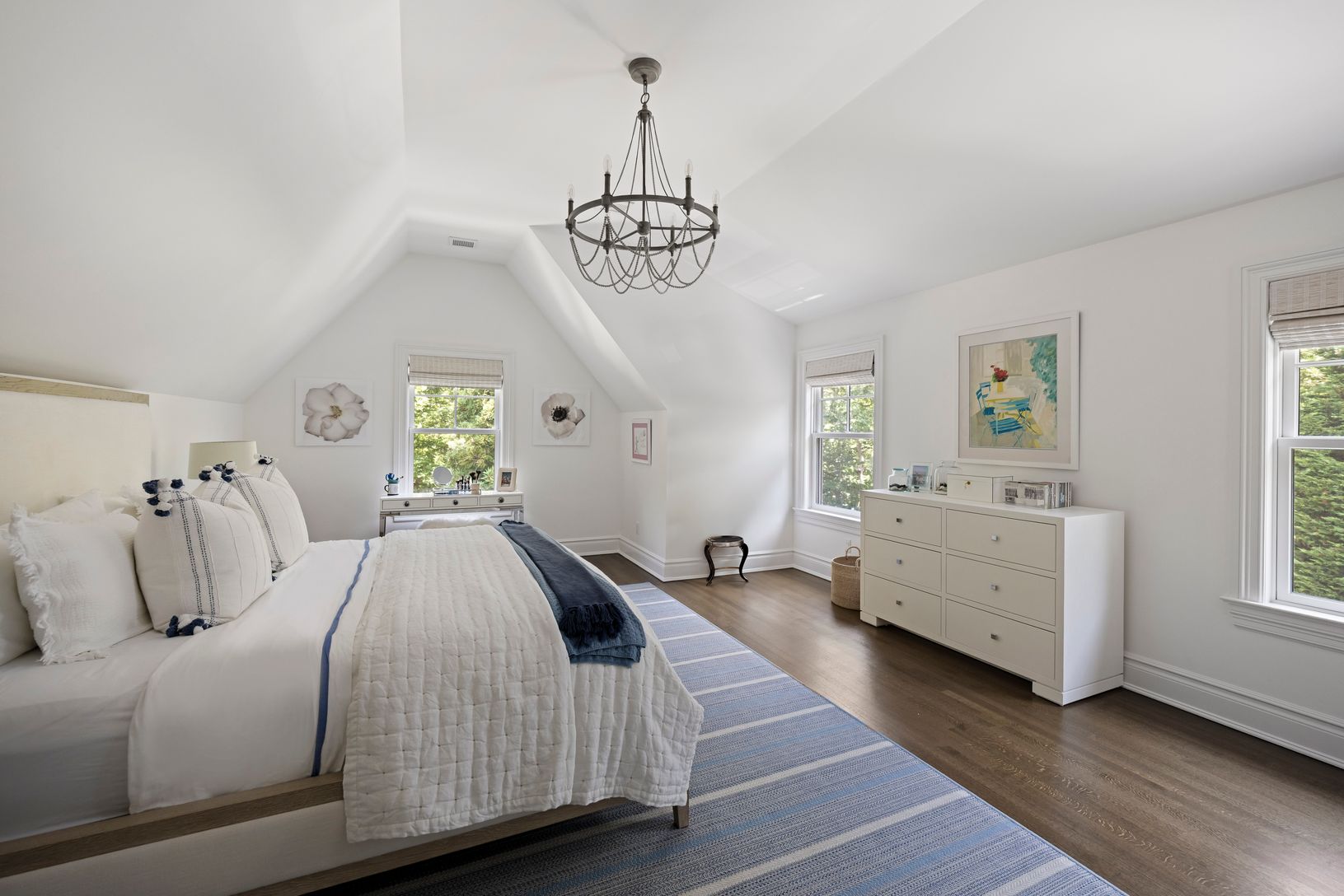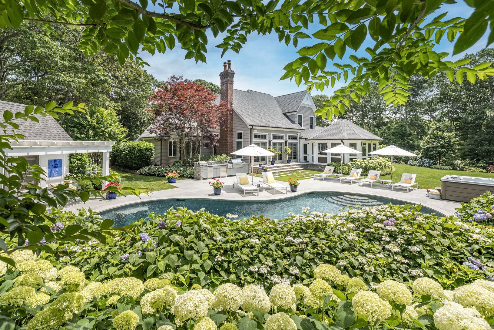 Nestled in the serene landscapes of Amagansett, this exquisitely renovated custom home offers approximately 5000 +/- sq ft of luxurious space, harmoniously blending comfort and elegance. Upon entering, you are greeted by an expansive great room, where soaring ceilings create an airy atmosphere and a stunning wall of glass sliders bathes the space in natural light. A cozy wood-burning fireplace adds a touch of warmth and intimacy, perfect for g