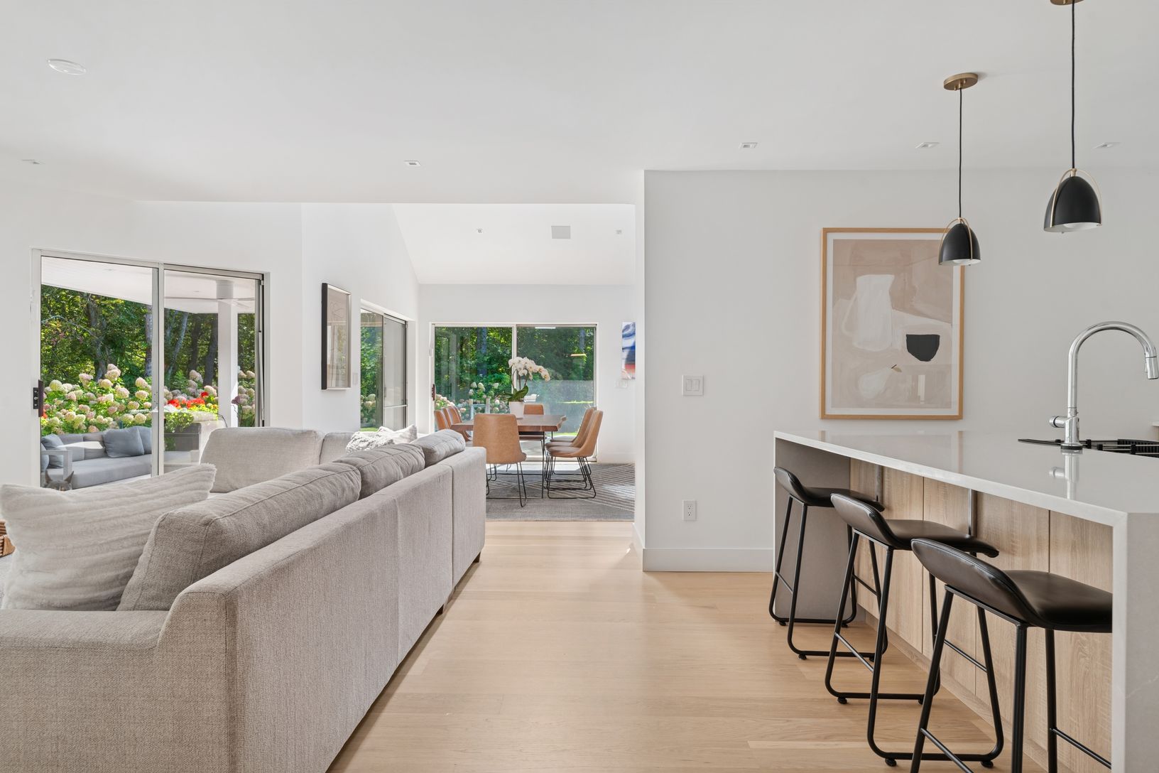 Nothing compares to summer in the Village of Quogue: especially at this newly designed and tastefully furnished Hamptons retreat. Thoughtfully renovated and styled by a designer, this residence delivers the ultimate Hamptons summer experience, blending sophistication with ease. Step inside to find nearly 4,000 square feet of sun-filled living space, featuring a wide-open layout, soaring ceilings, and brand-new hardwood floors that highlight th