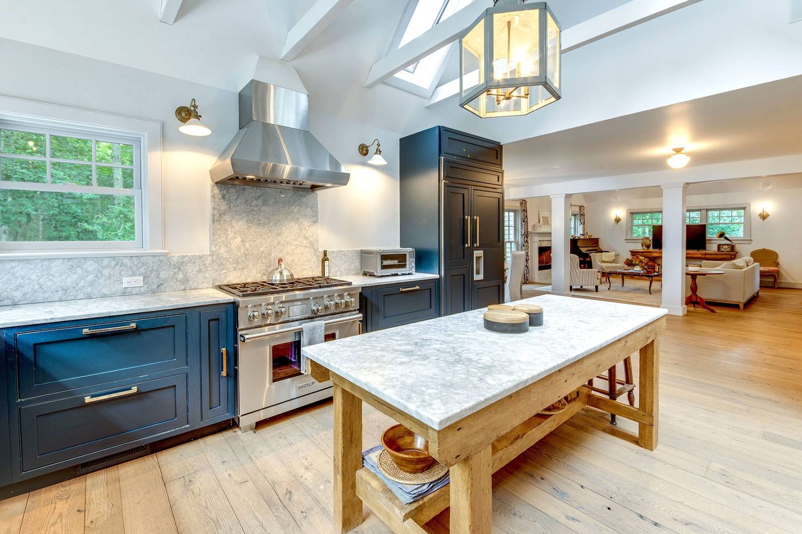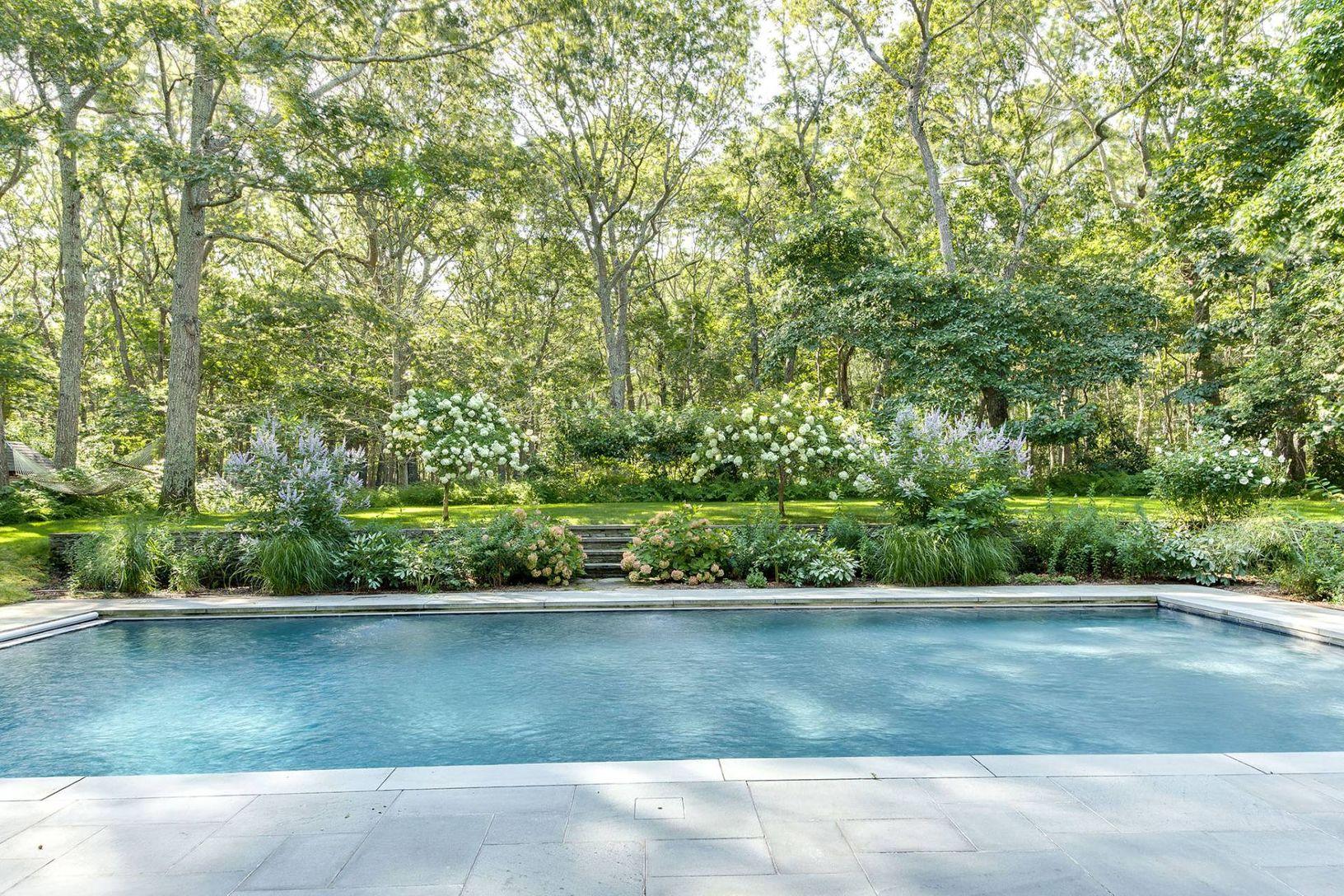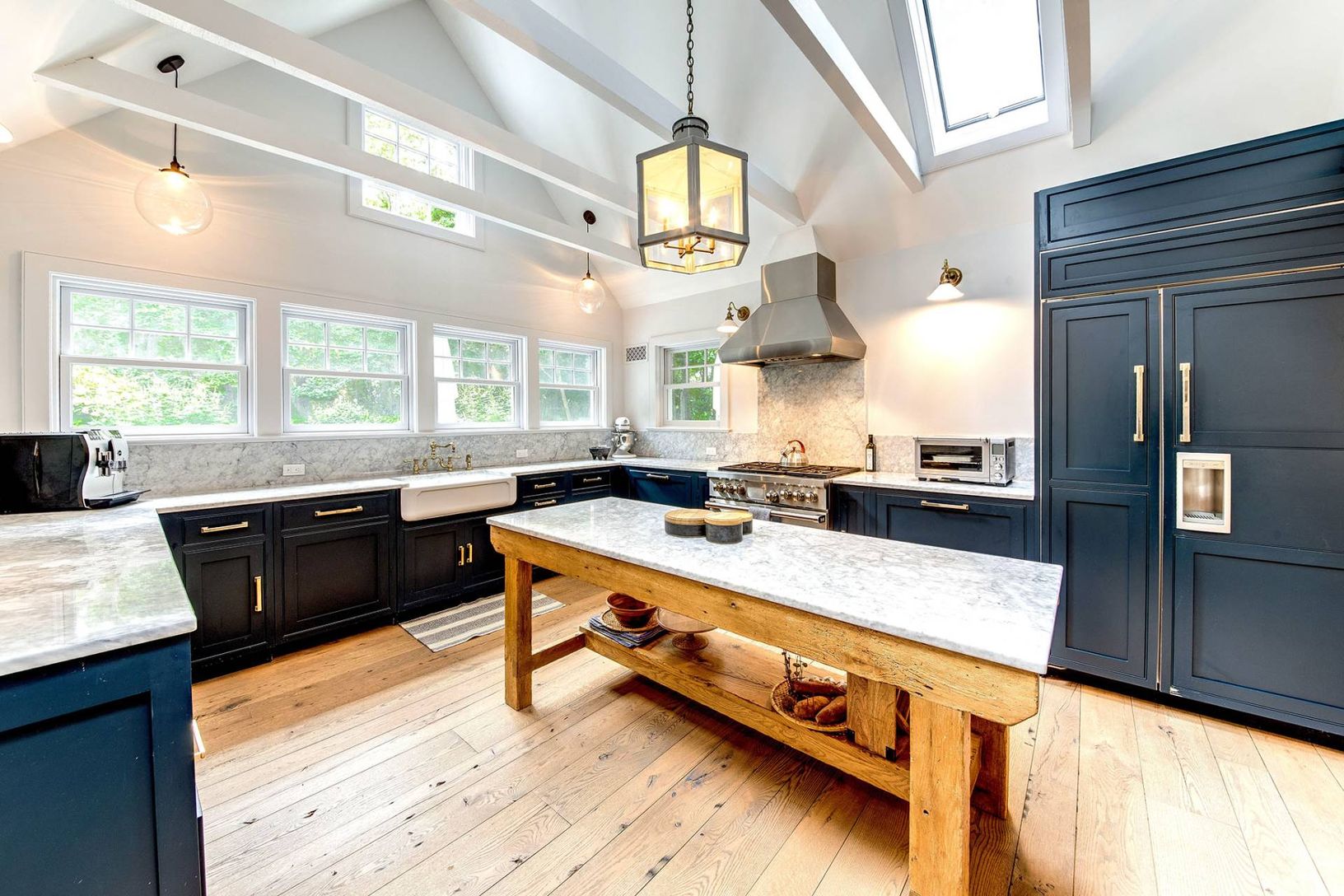 Tucked just beyond the edge of East Hampton Village, this custom-designed, modern saltbox-style home is a true coastal retreat in the heart of the Hamptons. Thoughtfully sited on a secluded .83 acre parcel that borders a nature preserve, this three bedroom, four and a half bath residence was fully rebuilt in 2016 in a style that is both timeless and elegant, where light and space abound. Throughout the first and second levels, the custom recla