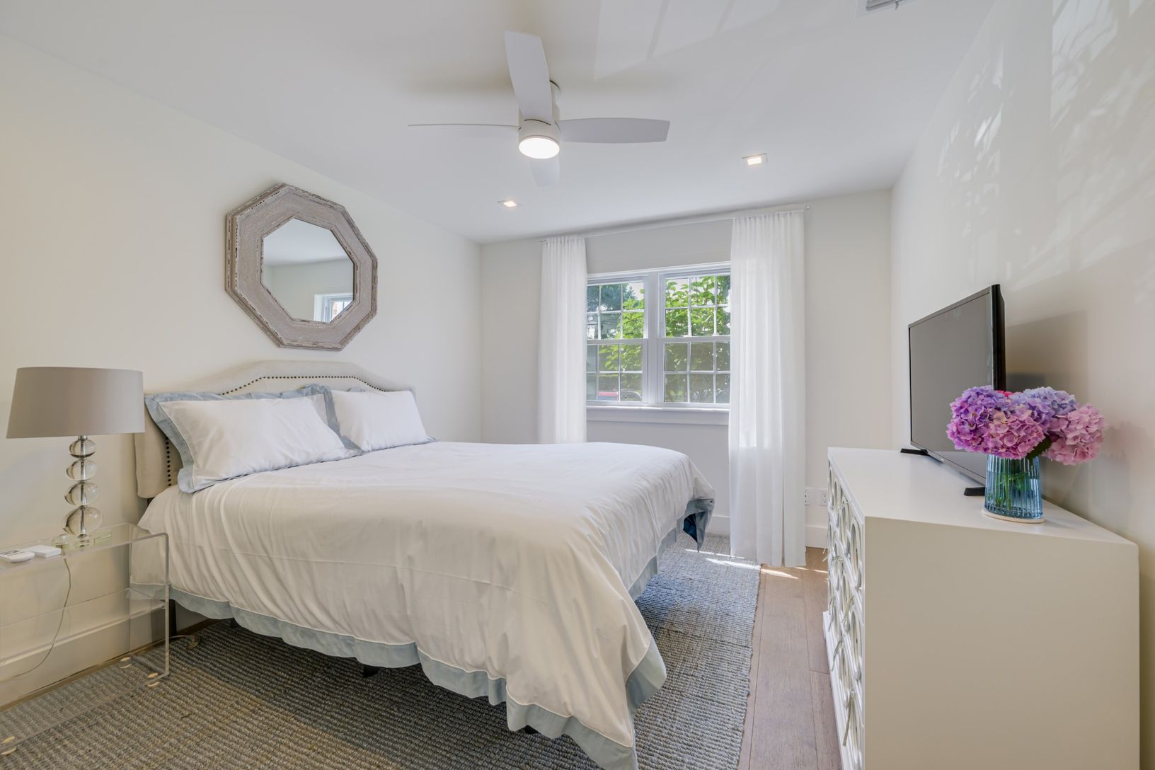 Located South of the Highway and close to ocean beaches, this fully renovated two-bedroom, two-bath condominium in Canterbury Mews offers easy, stylish living in the heart of Southampton Village. A desirable end unit, it features tall ceilings, abundant natural light, and an open-concept great room with a fireplace. The premium kitchen is outfitted with high-end appliances and flows seamlessly into the dining and living areas. Sliding doors op