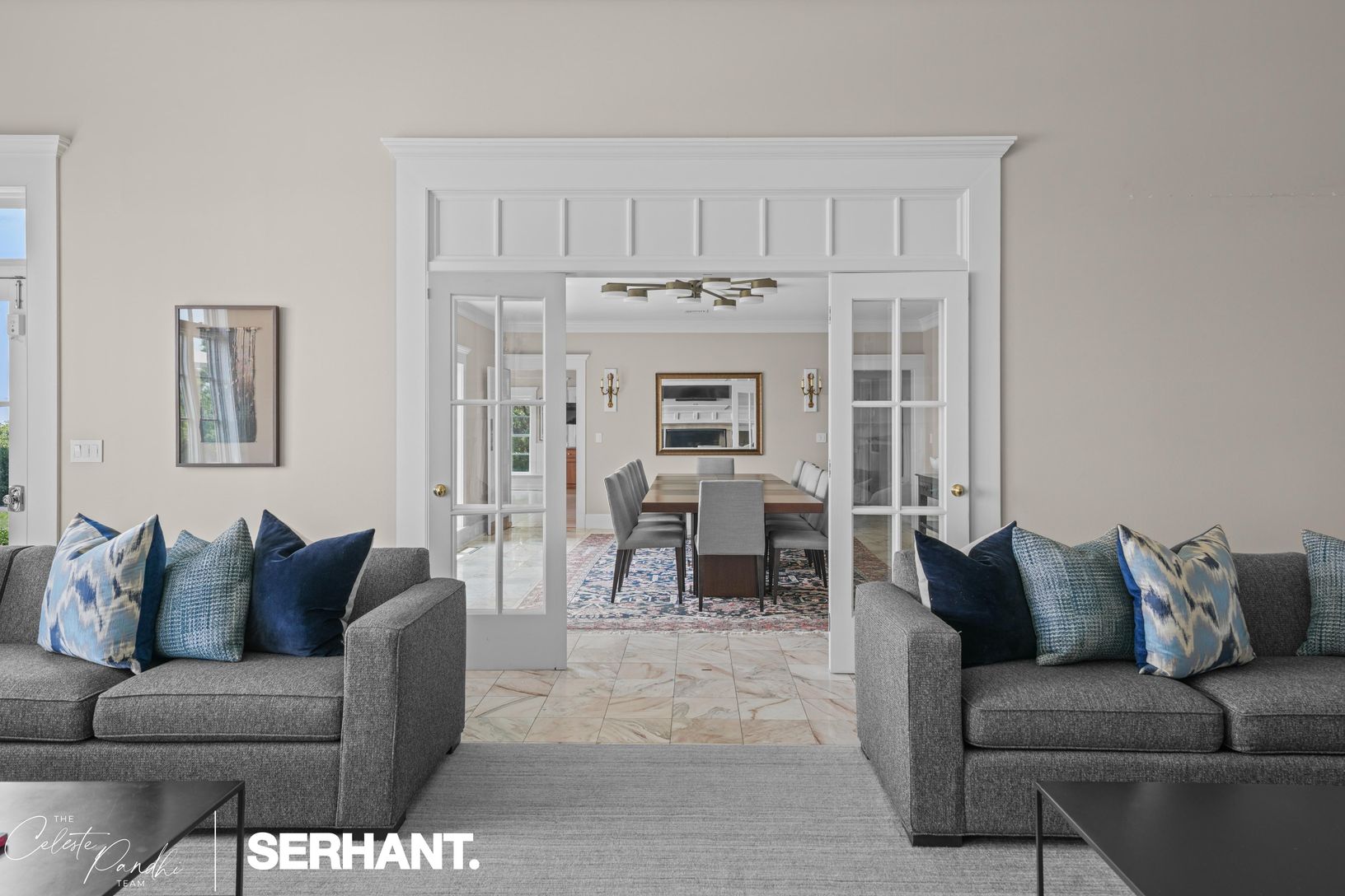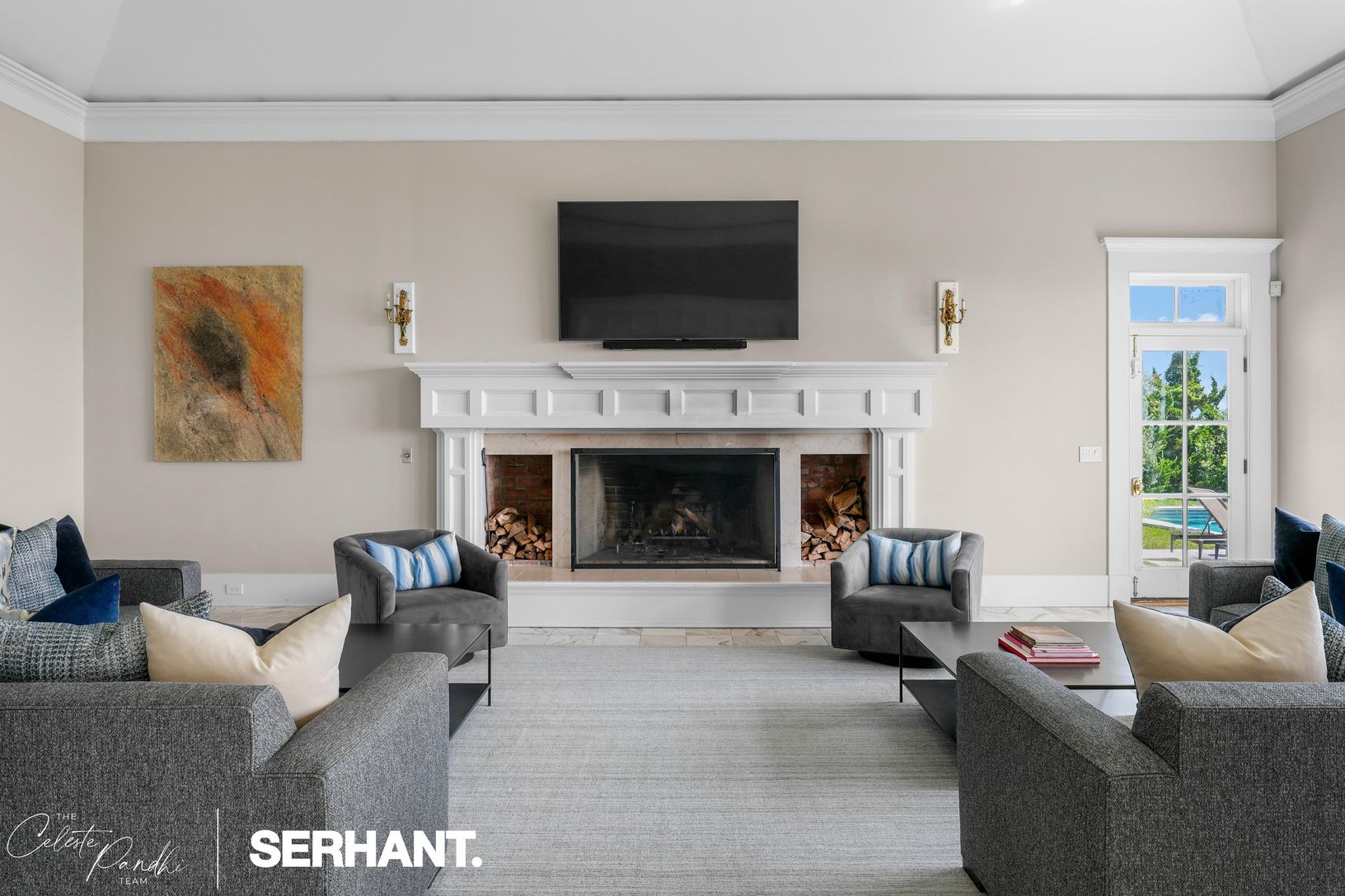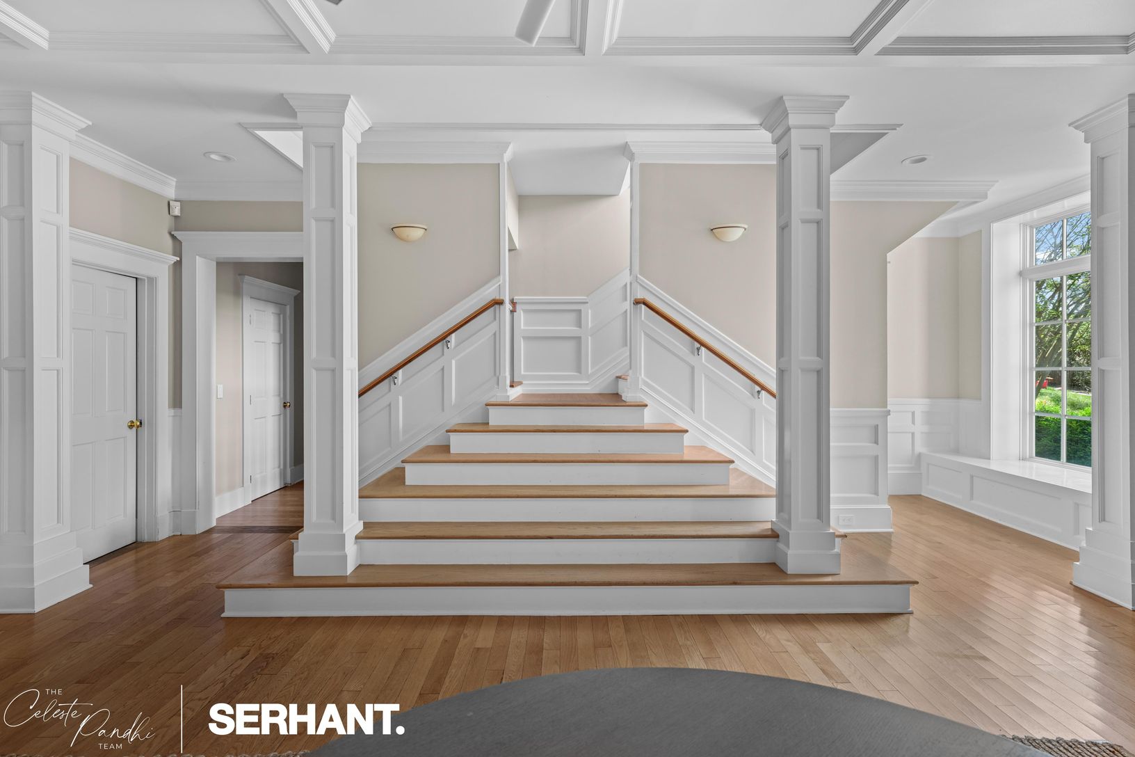 The ground level welcomes with a gracious foyer, media lounge, game room, gym, and three bedrooms — including a bunk room ideal for guests — along with