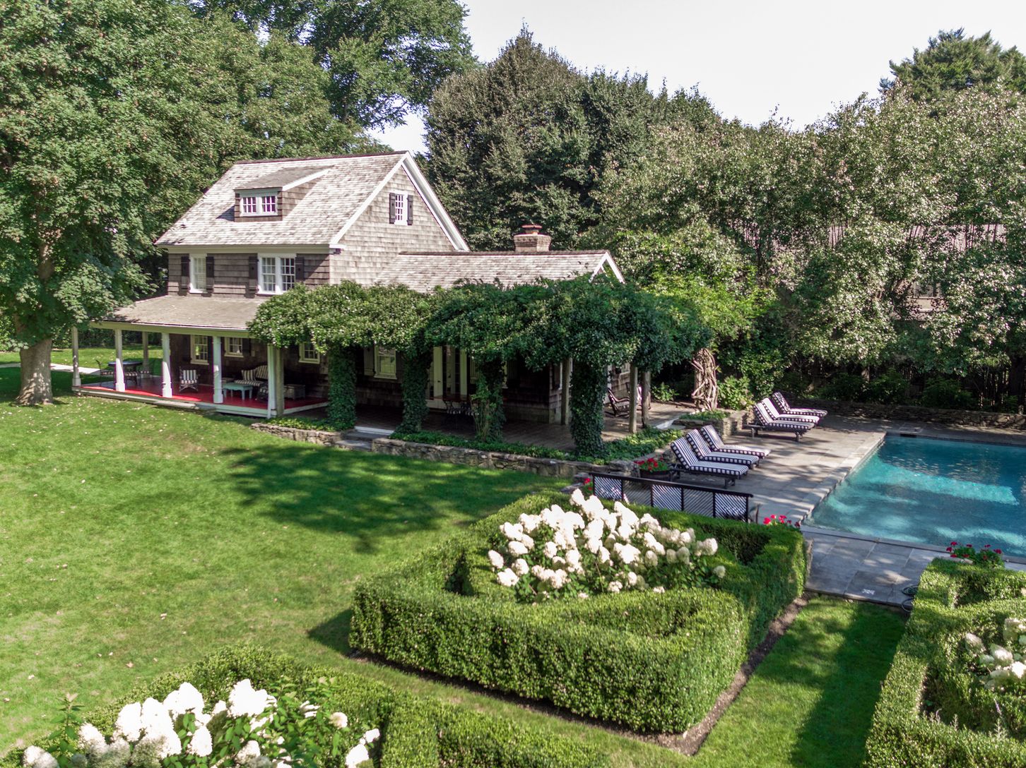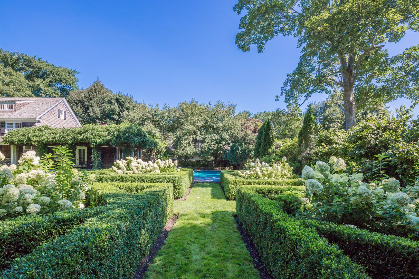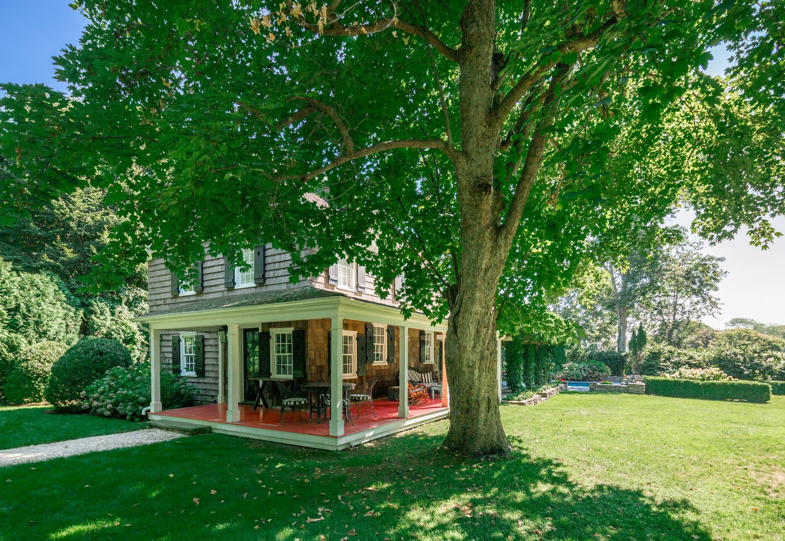 Charming cottage renovated by designer/owner on a quiet tree-lined lane in the heart of the Village short walk to Town Pond. Double-height living room with fireplace, open kitchen/dining, 2 bedroom suites, painted hardwood floors. French doors open to wraparound porch overlooking spectacular grounds with heated gunite pool, blue stone patio, lush landscaping and extensive English gardens.