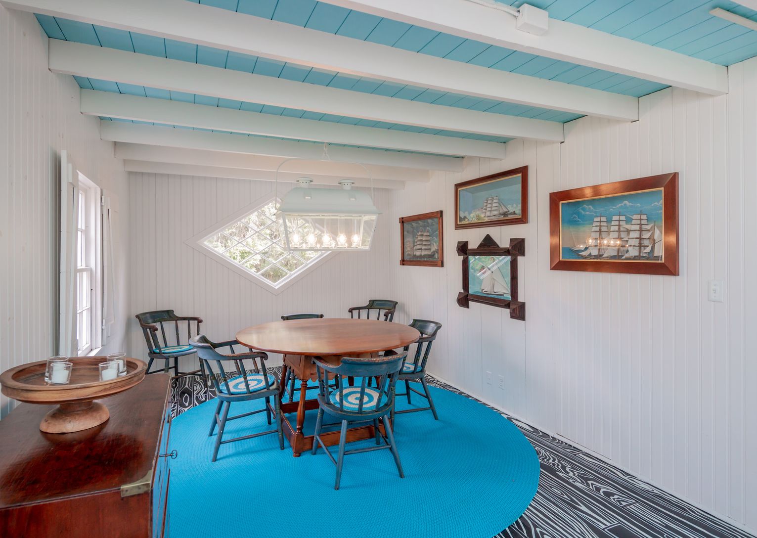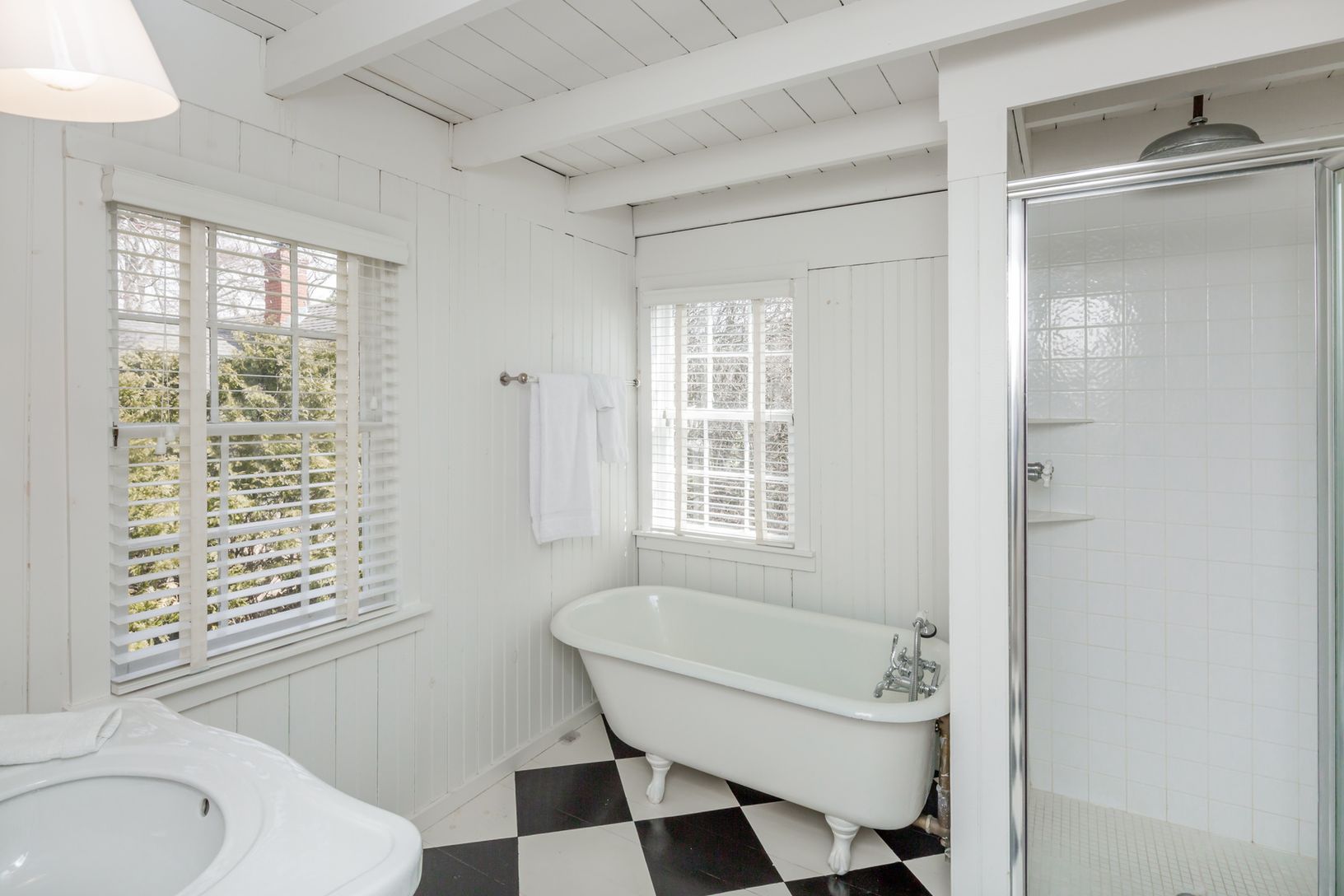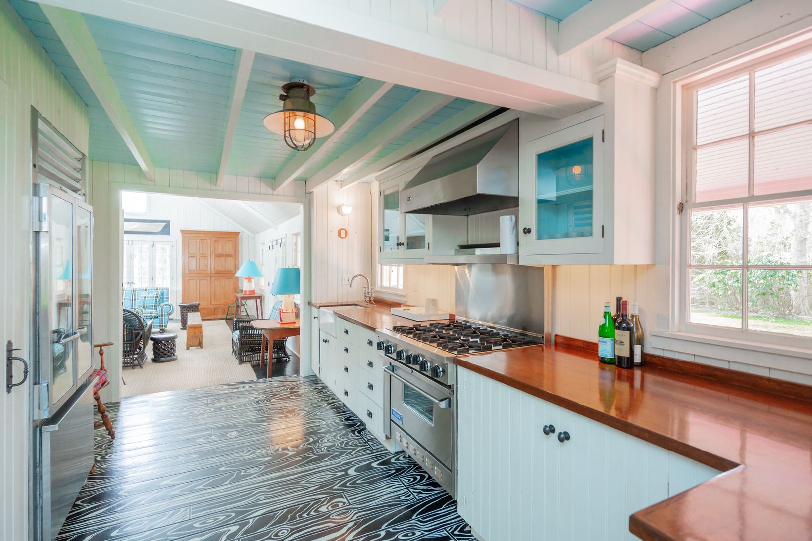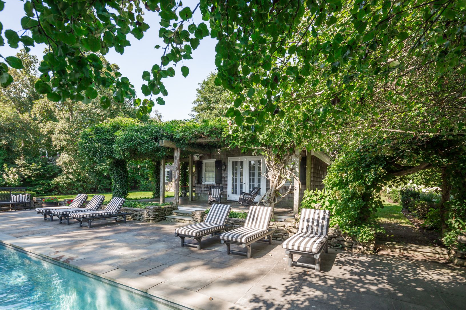 Charming cottage renovated by designer/owner on a quiet tree-lined lane in the heart of the Village short walk to Town Pond. Double-height living room with fireplace, open kitchen/dining, 2 bedroom suites, painted hardwood floors. French doors open to wraparound porch overlooking spectacular grounds with heated gunite pool, blue stone patio, lush landscaping and extensive English gardens.