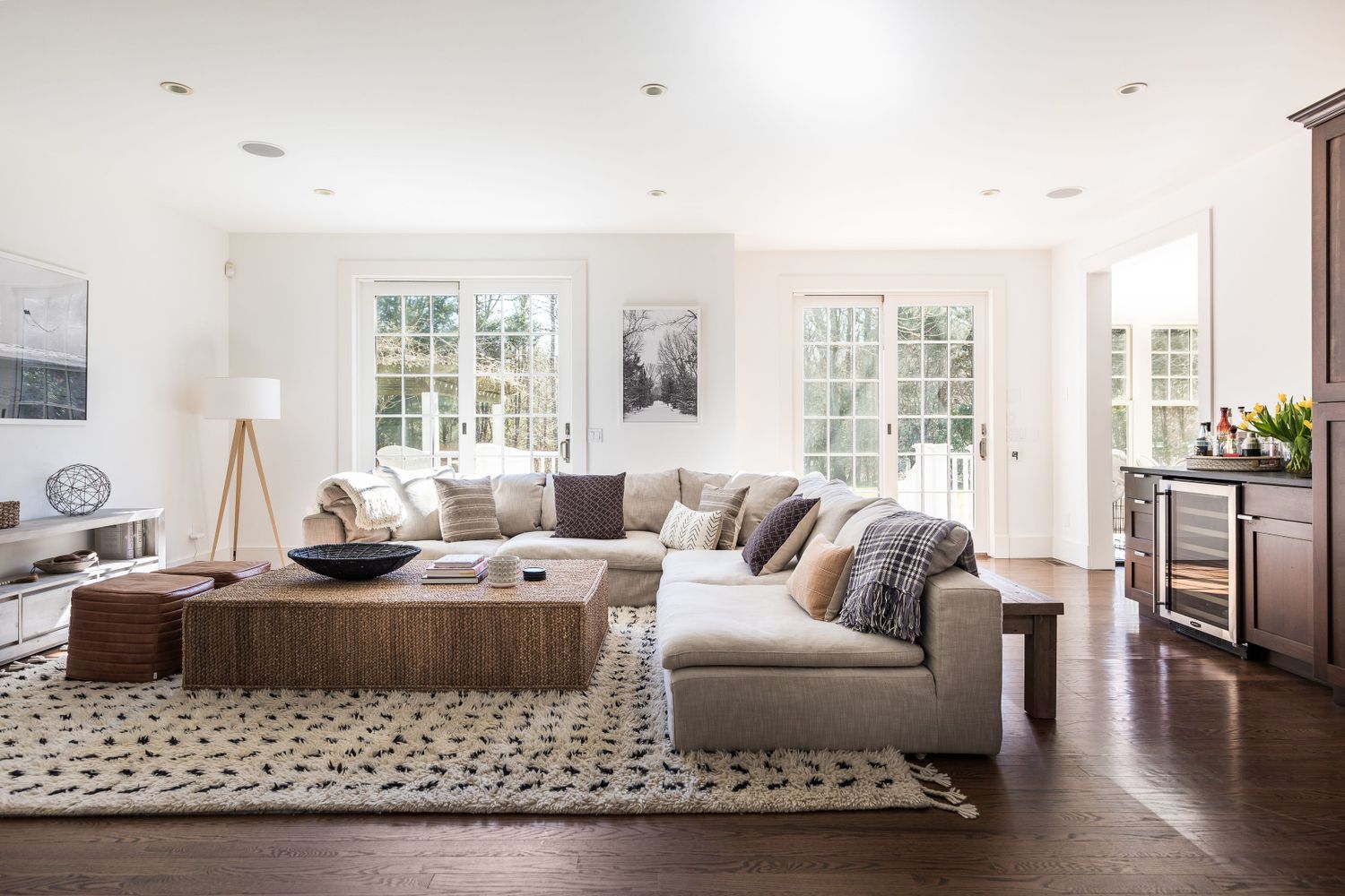This beautifully renovated home with sophisticated and chic decor is located in a prime south of the highway location. There are 5 bedrooms in total including a primary suite. The first floor living area features an open plan living room and dining with high ceilings and big windows allowing natural light to pour inside. A brand new high end kitchen features every modern convenience. Glass doors open from the living areas to a delightful thre