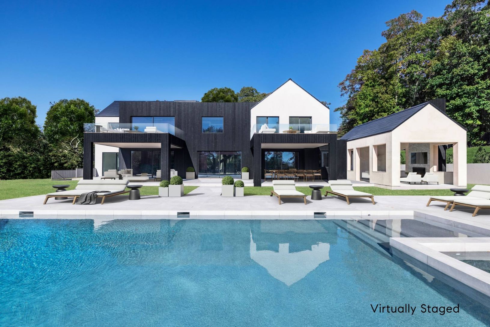 Situated on a sprawling 2.06-acre estate, this modern masterpiece boasts 8 bedrooms and bathrooms, offering a luxurious and comfortable space for living and entertaining. Featuring cutting-edge Tesla Solar Roof technology with a 25KW capacity, this home ensures maximum energy efficiency, potentially eliminating the electrical bill. European Cortizo zero-frame sliding doors and arch-invisible windows create a seamless connection to the outdoors