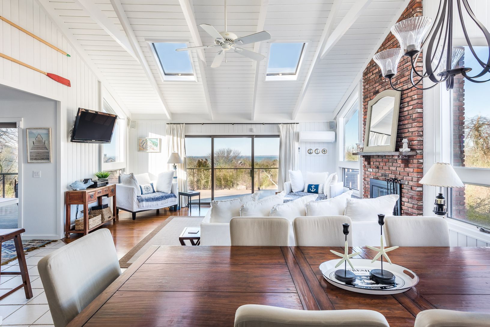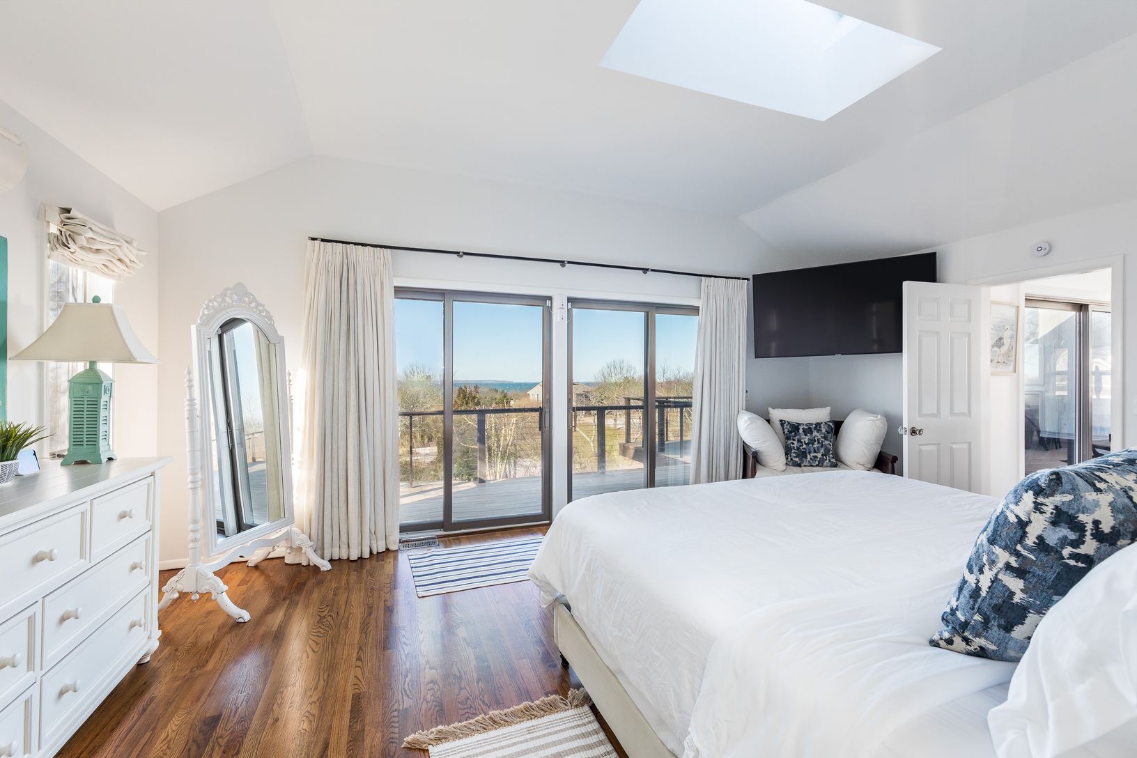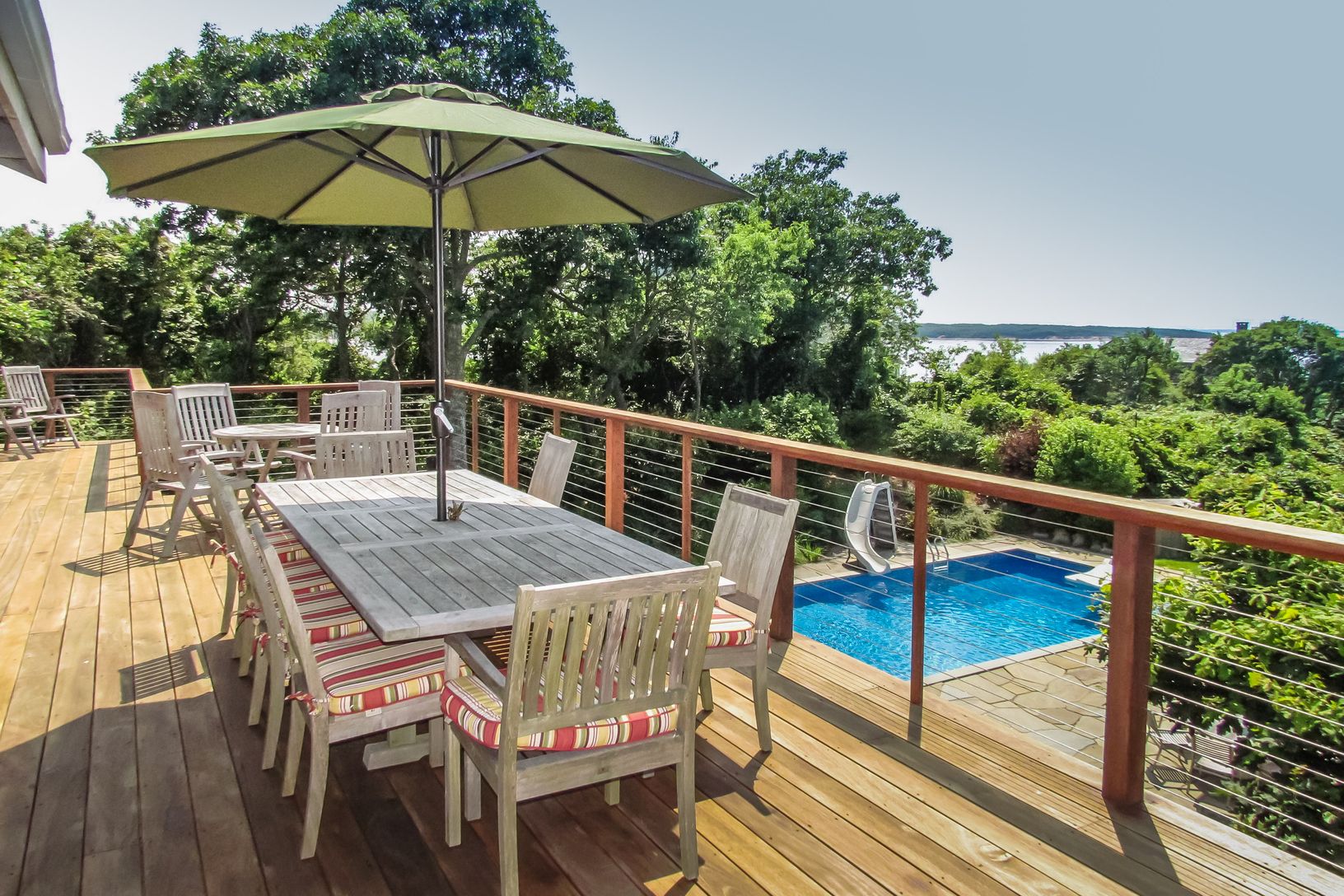 This amazing location near the end of a cul-de-sac offers sensational sunsets overlooking Fort Pond Bay. Stunningly landscaped four bedroom, three bath contemporary home offers the ultimate in comfort and privacy. Newly decorated, heated pool, wood floors, sanctuary like master bedroom with a separate bay view deck and private ensuite master bath with Jacuzzi bath and separate shower. Additional amenities include a second common area, office s