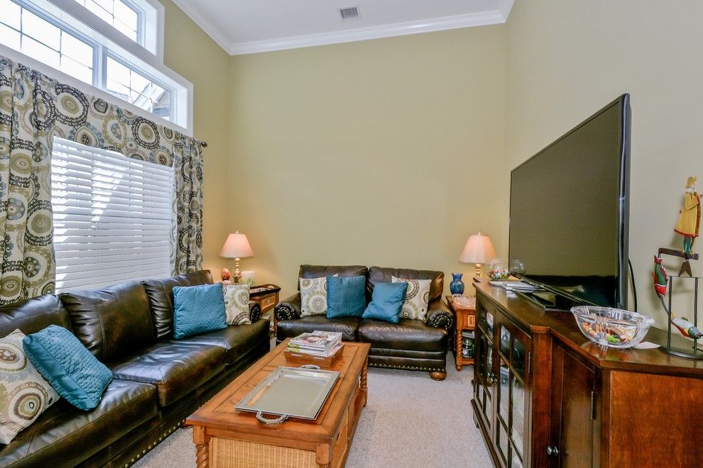 Gated 55+ Encore Atlantic Shores community. This condo features a first floor master bedroom suite, two additional guest bedrooms and three baths. The open interior space has a living room with fireplace, dining room and an eat-in kitchen. The community features a club house with indoor and outdoor pools, tennis courts and a fitness room.