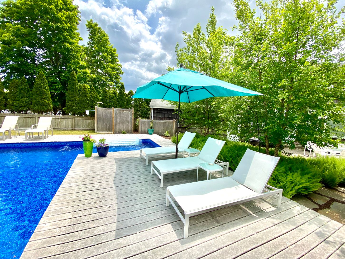 Classic Beach house getaway with sunny pool!! By the month or shorter term. Located south of the highway in the Rampasture area of Hampton Bays you are just seconds from bay beach access and a few minutes to the ocean beaches. Super clean and freshly updated there is plenty of room to stretch out. There is a spacious eat in kitchen, dining room with large farm table, living room with flat screen tv and cozy den and a Peloton bike for those pre