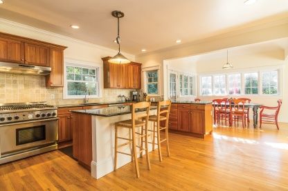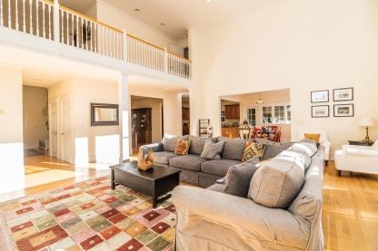 Beautiful landscaping and a gracious columned front porch welcome you to this spacious traditional home offering five bedrooms and four and one-half baths on .75+/- acre. The double height living room with wood-burning fireplace has large windows on both levels that flood the interiors with natural light. Main floor interiors provide an easy flow among the living room, formal dining room, sunny breakfast area and eat-in kitchen with stone coun