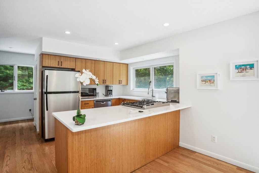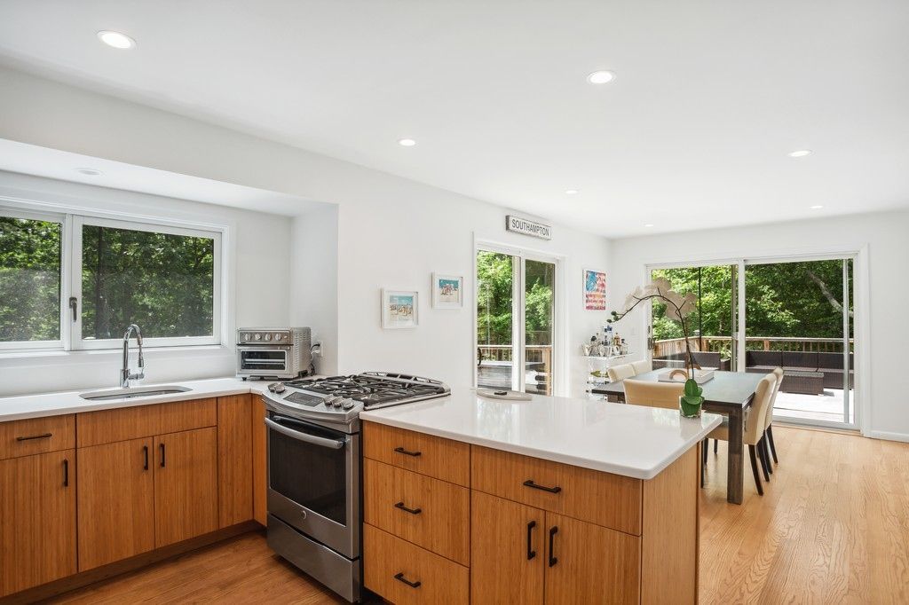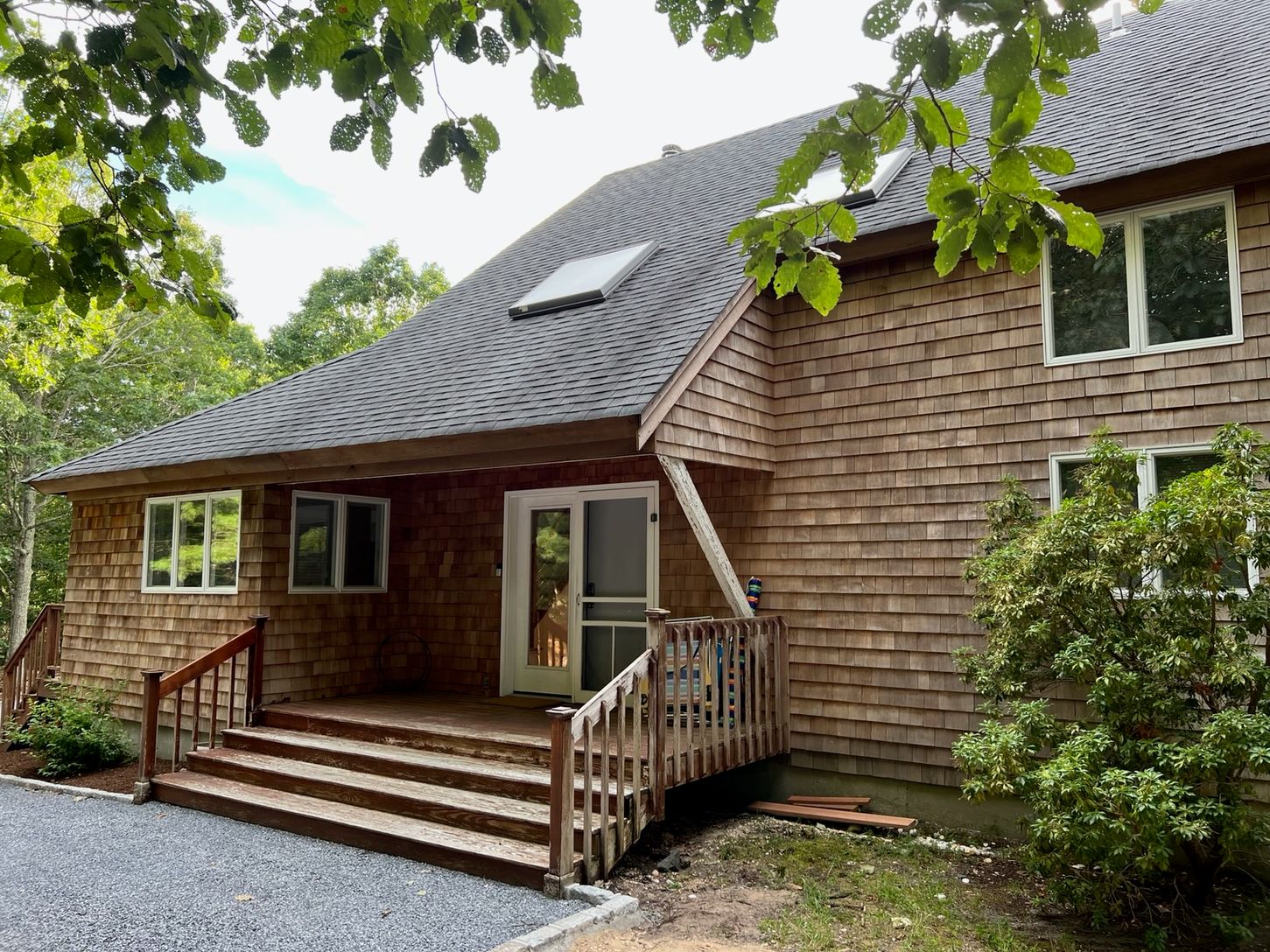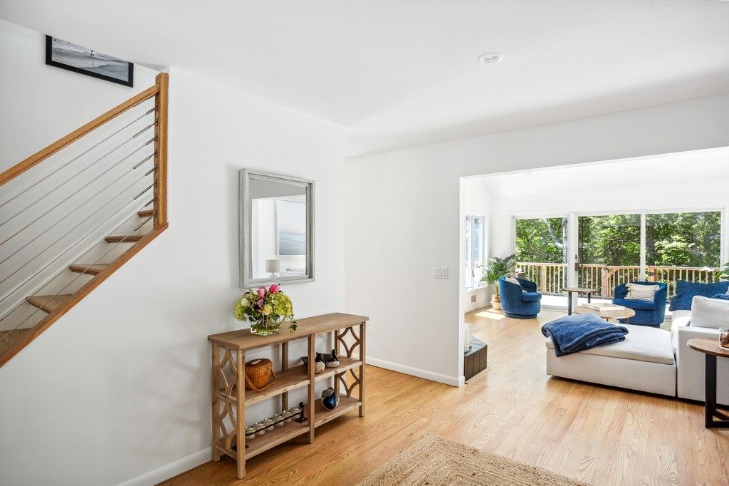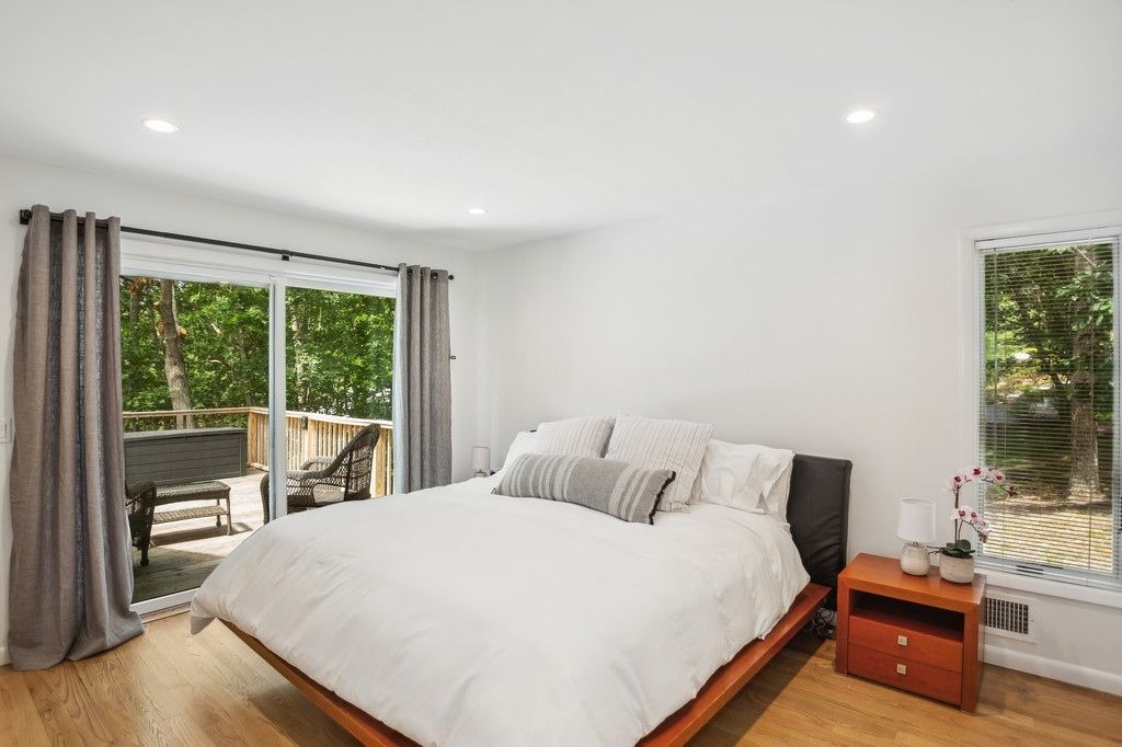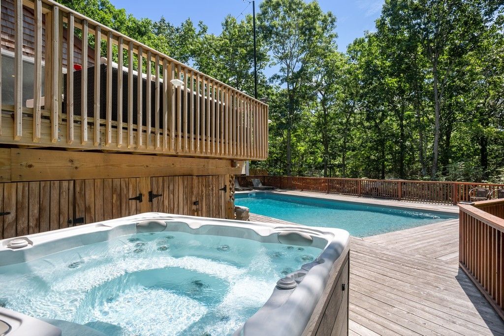 Located in lovely Whalebone Landing Peconic Bayfront Community, with private community beach and tennis, sits this lovely, bright renovated 3 bedroom and 2.5 bath home on 1.07 acres. Tons of outdoor deck space surrounds the updated and heated 18'x36' pool and hot tub. Newly paved driveway with both asphalt and oil and stone. Step into this very bright living room with double height ceiling and skylight. Open flow dining room that leads to the