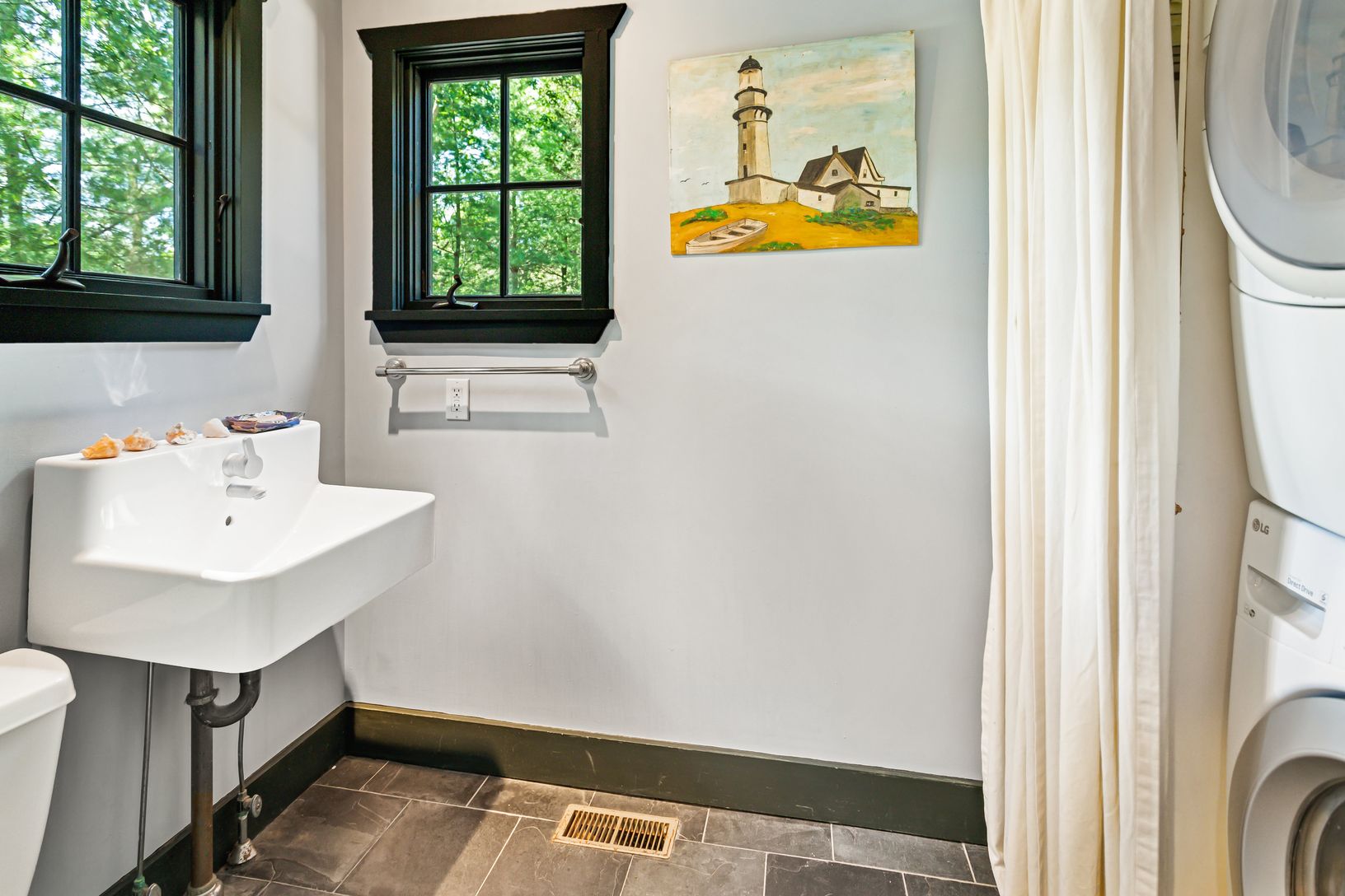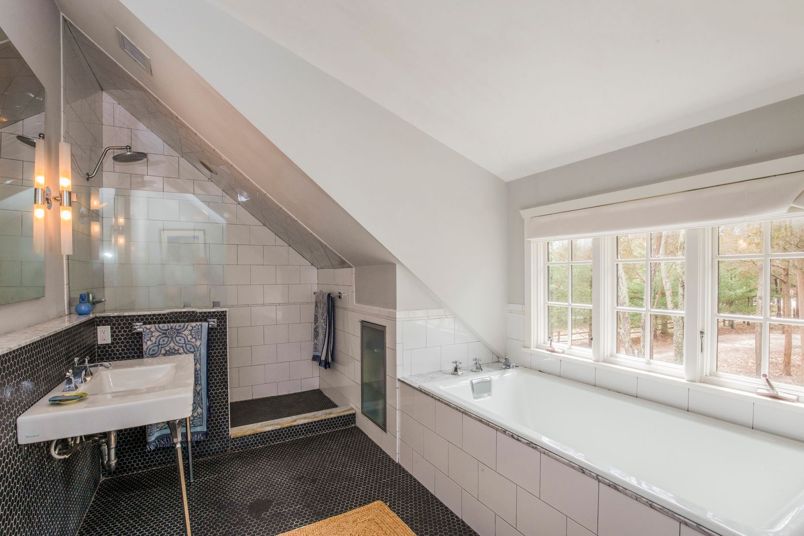 This property has deeded access to the bay just a few hundred feet away. A majestic field of cedars on the front lawn, welcomes you as you approach this 1930’s three bedroom home that glistens from every angle. This painstakingly designer renovated home is a unique slice of Sag Harbor history as it was once used as a boat house and moved to its current location. There are three stories starting with a garden level enveloping two of the bedroo