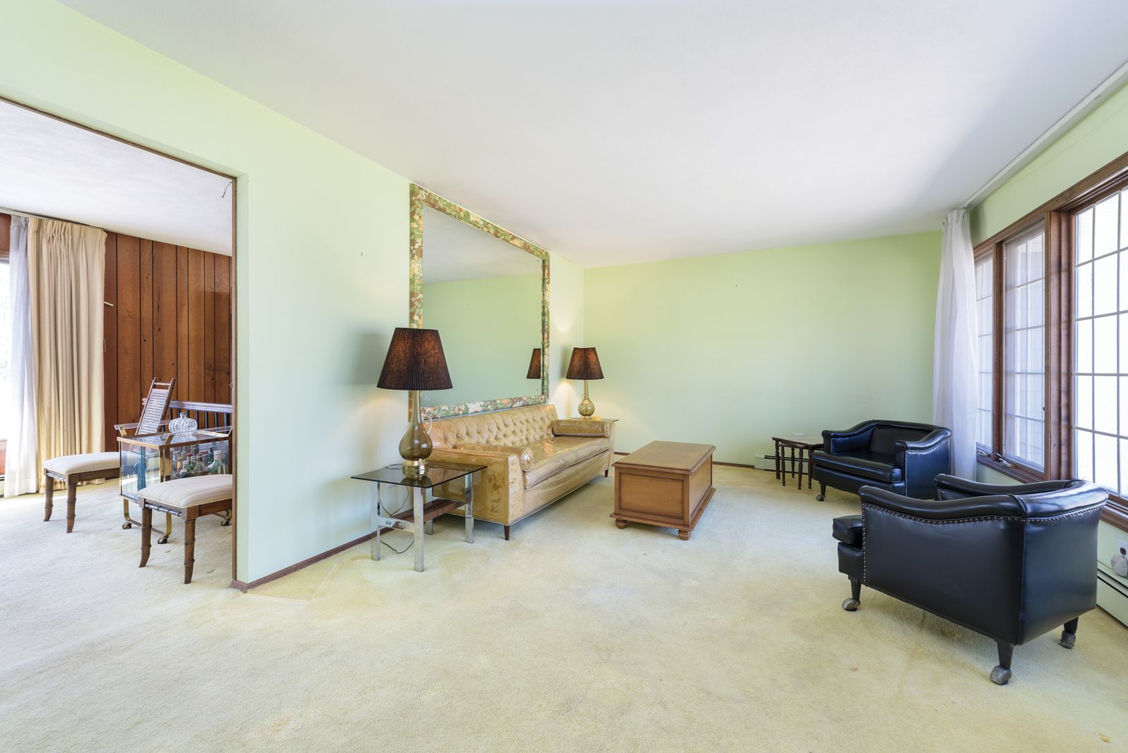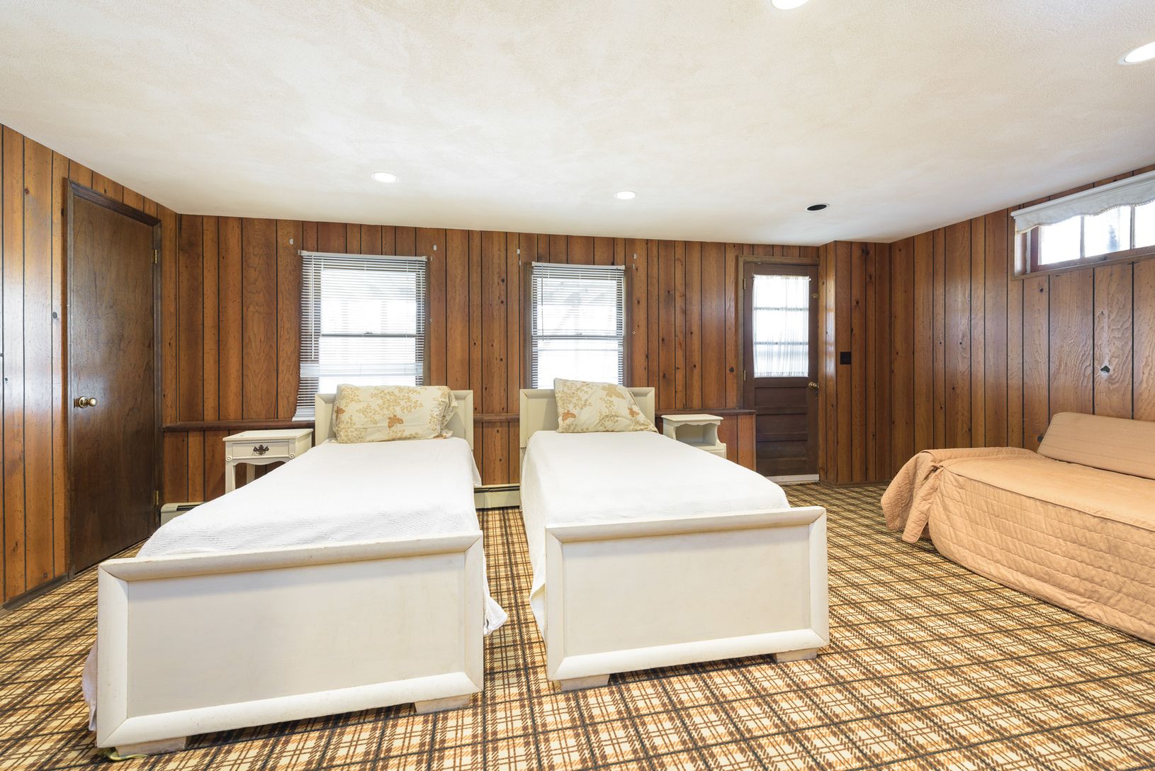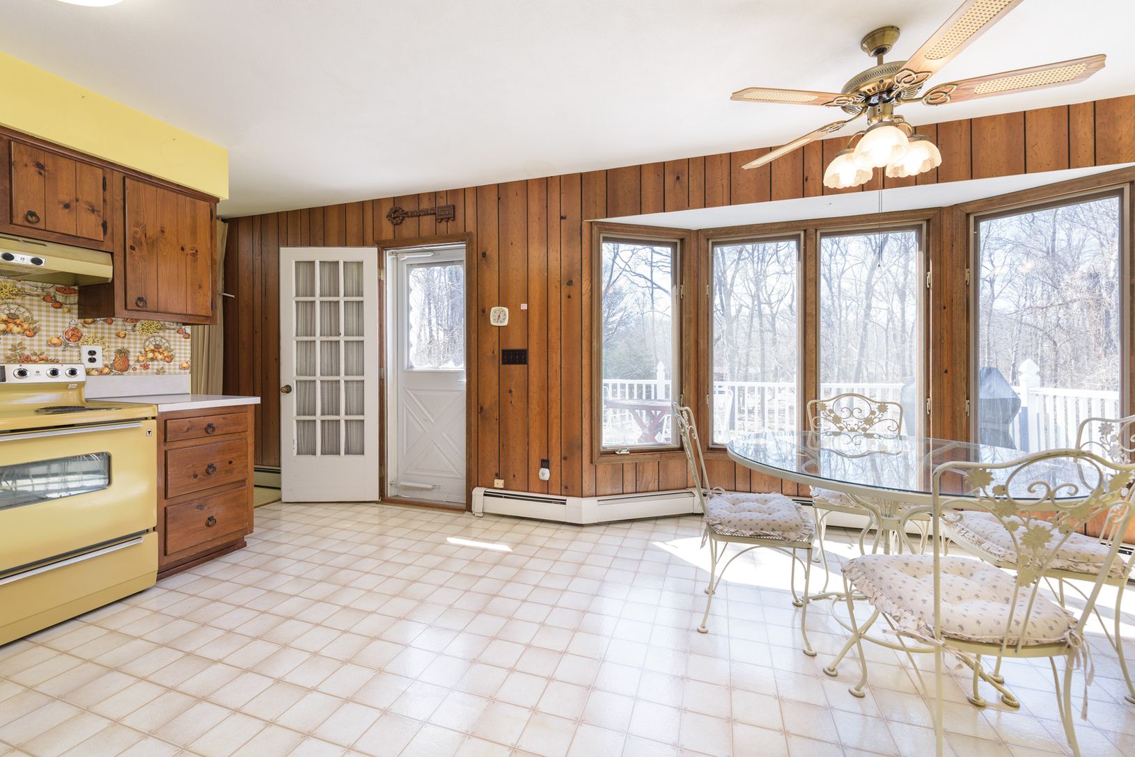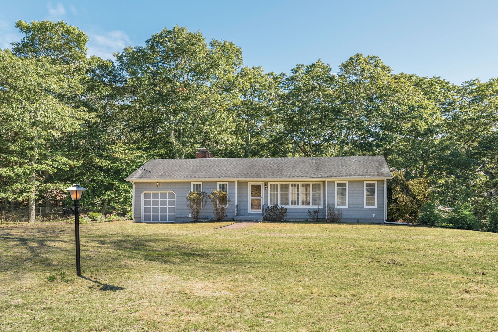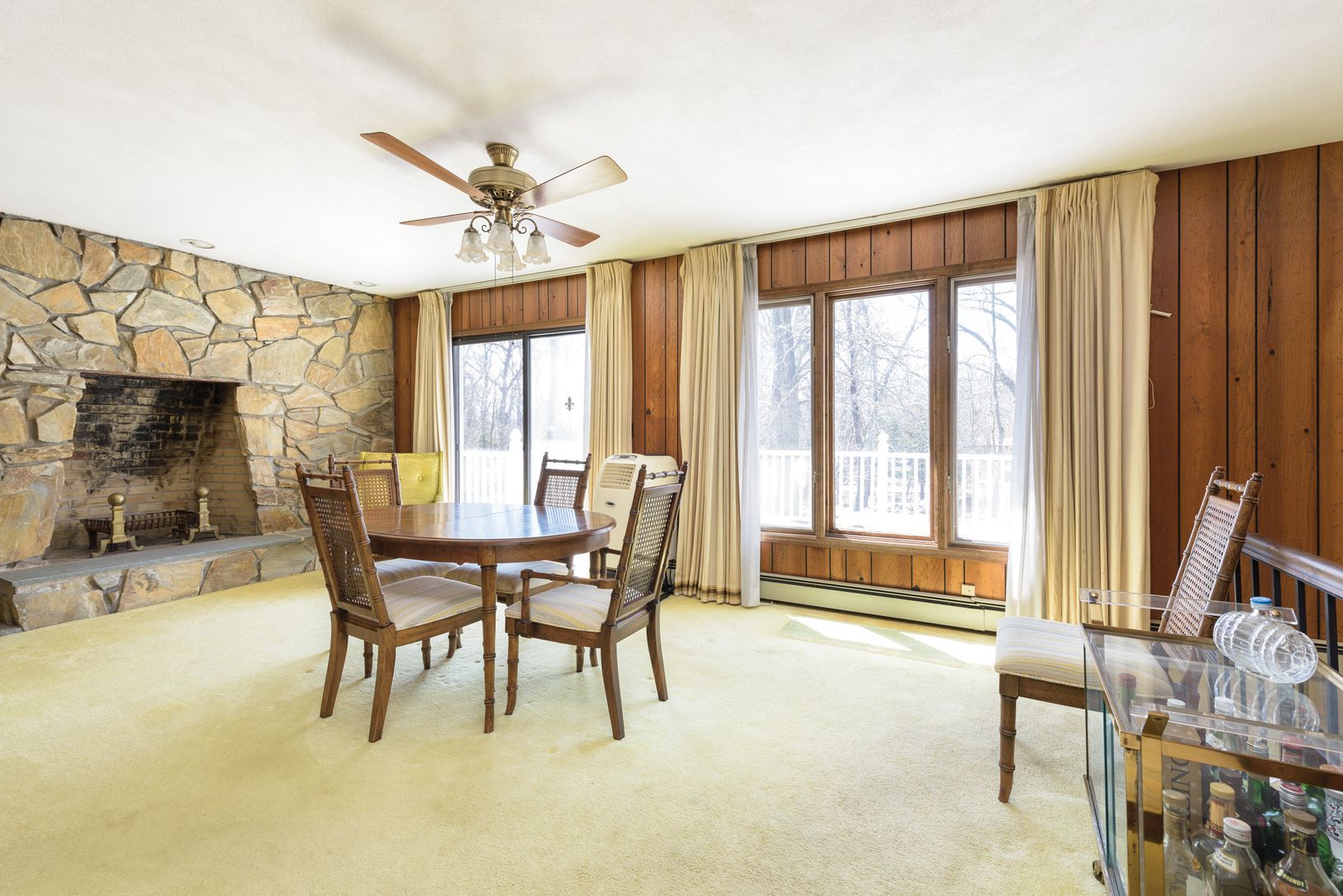 Sunny Shelter Island Cottage-This well maintained cottage, is located within close proximity to tennis, golf, beach and town on a quiet lane. The living room has a large picture window overlooking the front lawn. This leads to the dining room which has a large raised stone fireplace with room for a table of 8, and sliding doors out to a wide entertainment deck. The kitchen is spacious with a sunny breakfast nook. There is a bedroom off the din