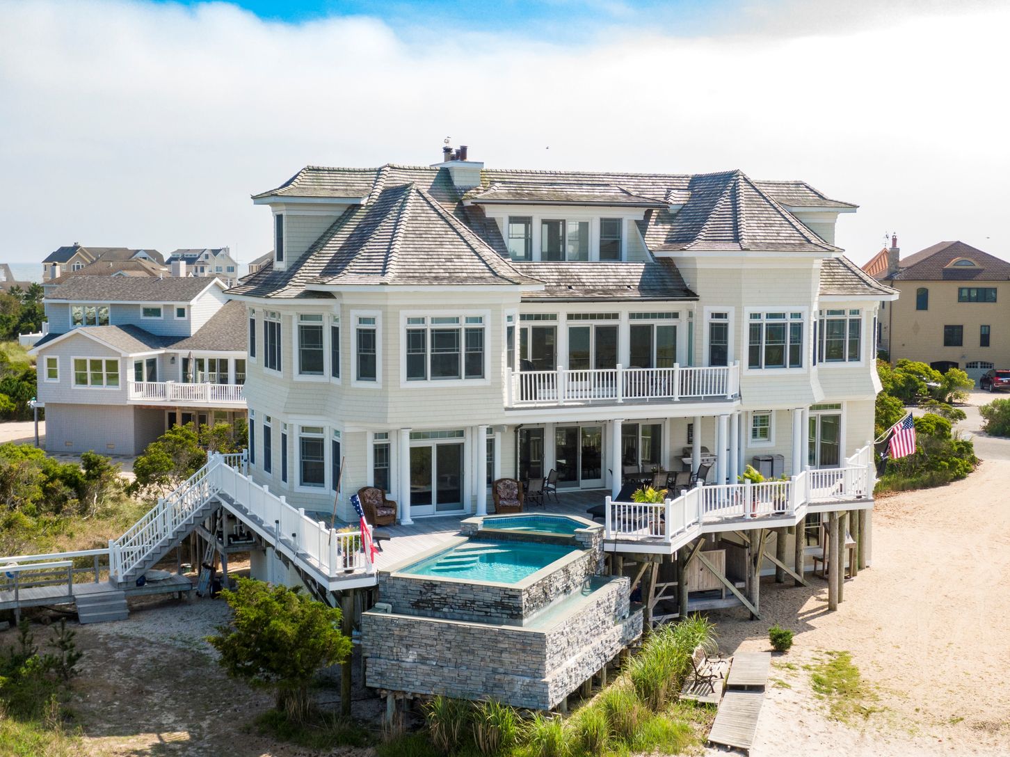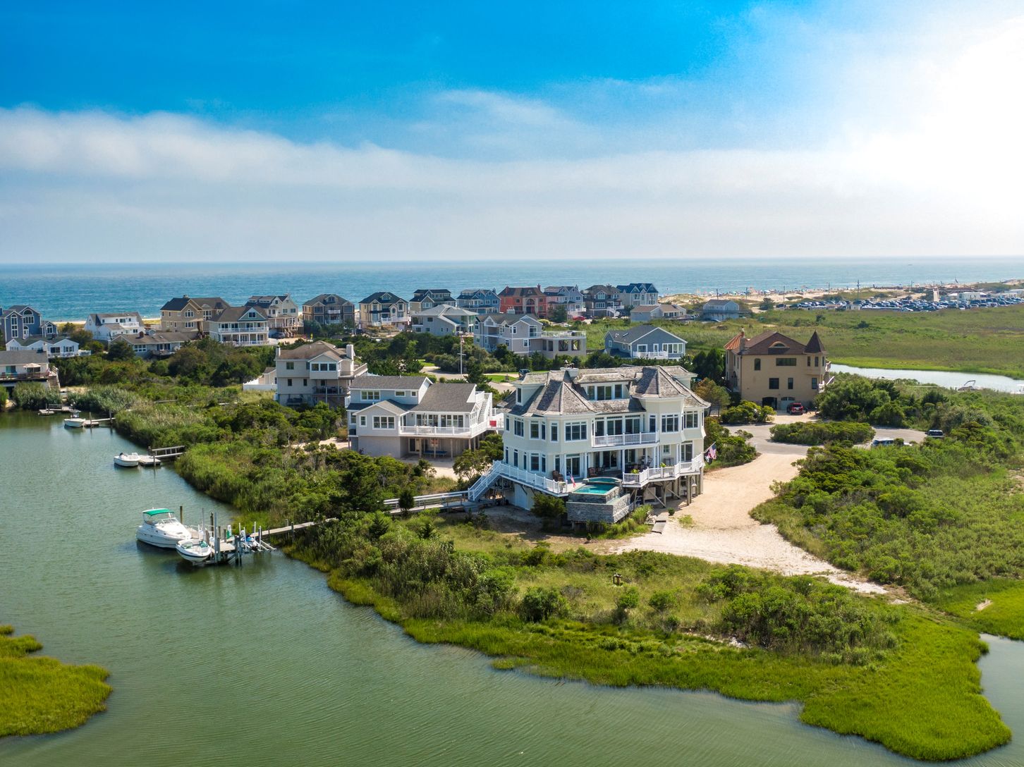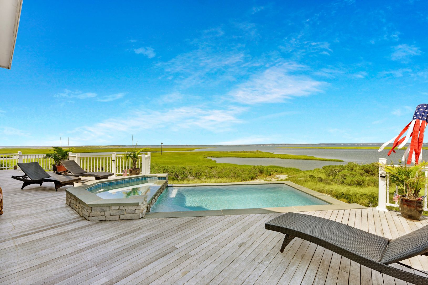 Watch the sun set over the bay from almost any room or while on any of the multiple decks in this 5,200 sq. ft. Post Modern beauty. This 5-bedroom, 4.5-bath Beach House offers multiple living areas, an eat-in kitchen with top-of-the-line appliances and water views, separate dining area overlooking the bay and a 3rd-floor additional recreational area. All of the amenities you could ask for including an infinity pool with a spa, deep water dock