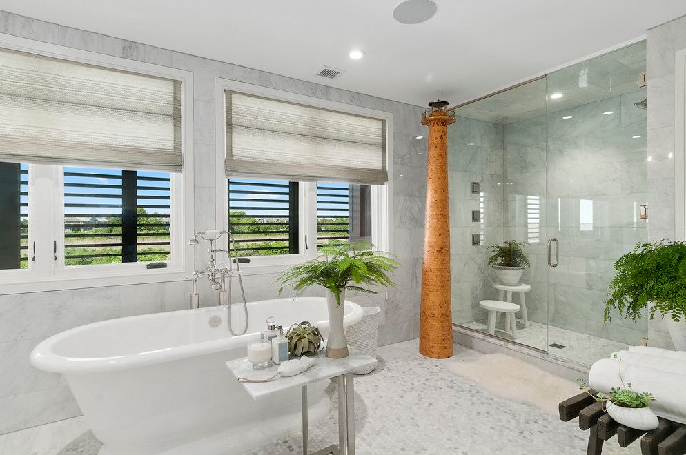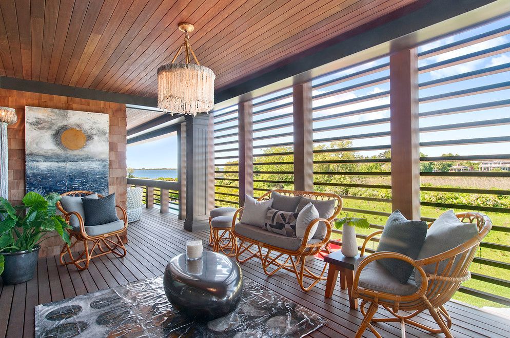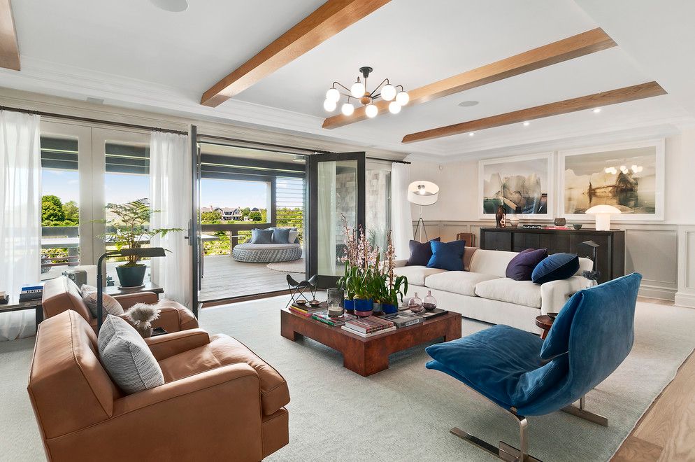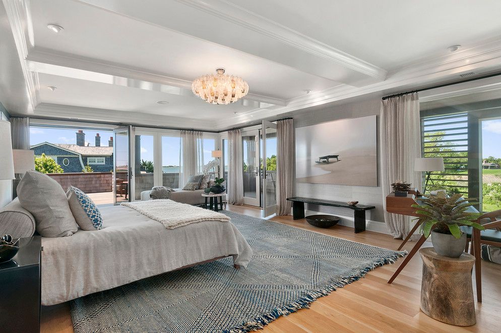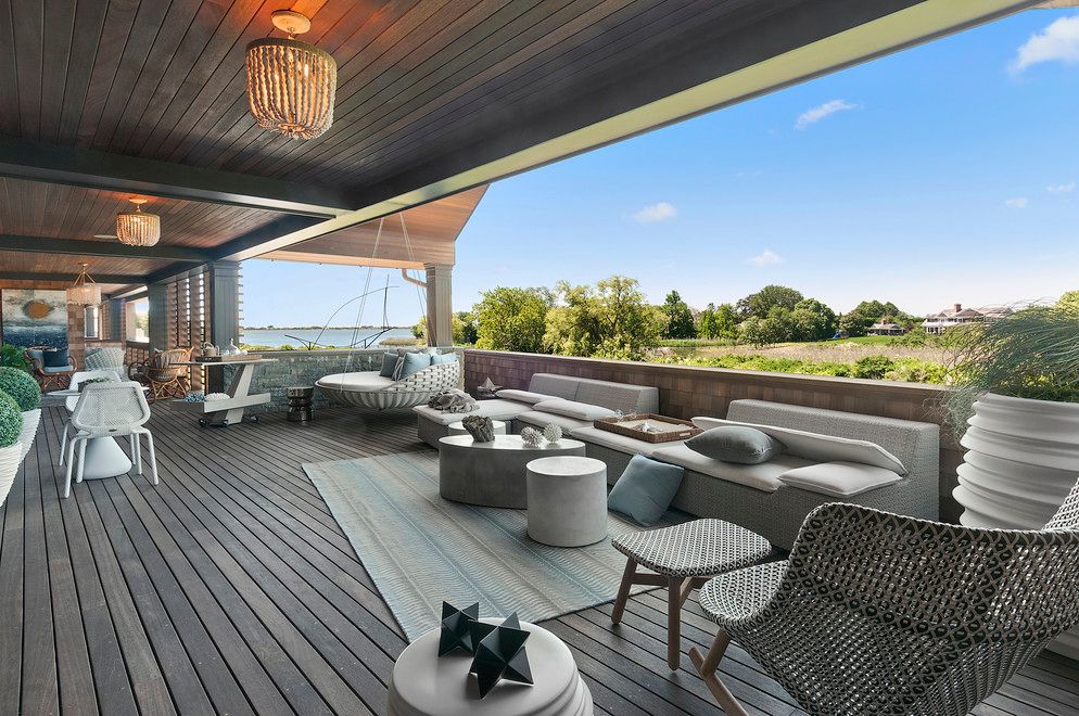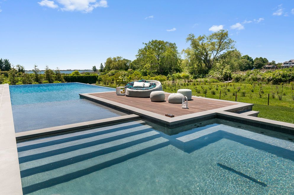 Modern and traditional architectural designs combined with master craftsman construction define the theme of this custom new home with access and open views of Mecox Bay. Views that are augmented by mahogany terraces, blue stone patios, and an infinity edge pool overlooking a landscaped estuary. The home is equipped with a media room, library, 500 bottle wine cellar, gym with spa, and elevator. This 13,000 sqft beauty is topped off with a roof