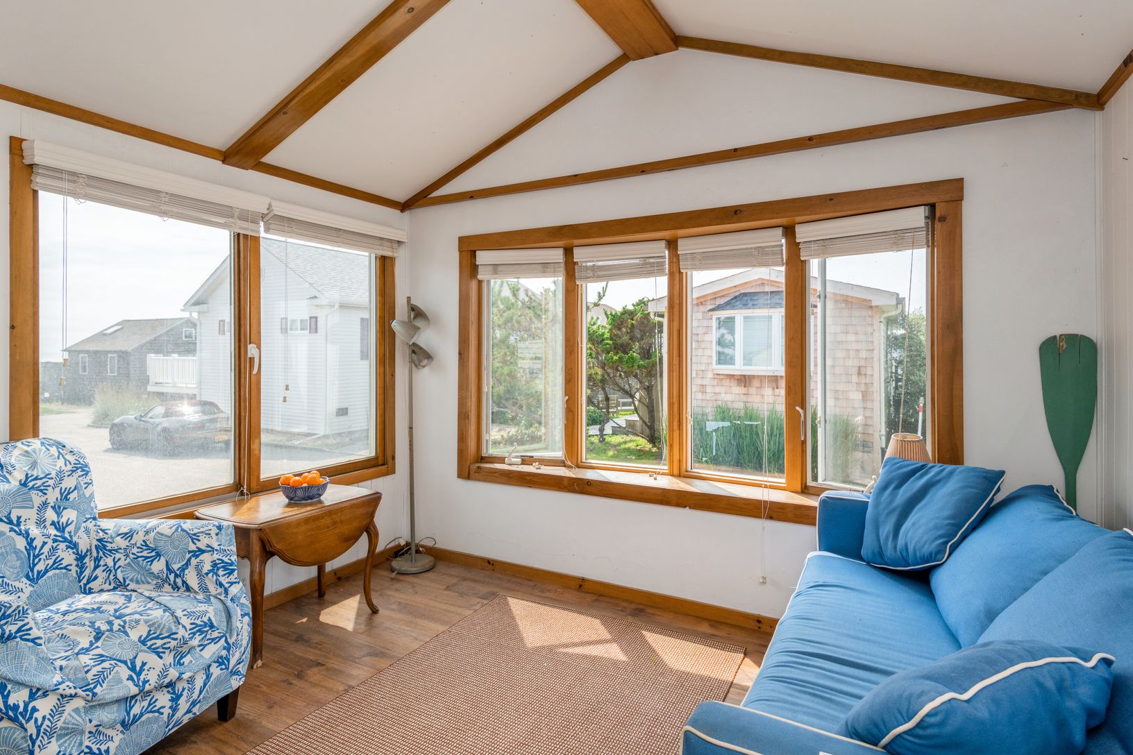 A hidden two bedroom gem on the ocean in Montauk. This beach cottage is perfect for the surfers, fishermen and beach lovers. Only a stones toss to the most famous surf spots in the Hamptons and stunning beaches with longs islands best life guards. Vaulted ceilings and large windows bring the outside in to the open concept living space. The expansive deck allows for outdoor dining and enjoyment of watching the whales breach now and then.