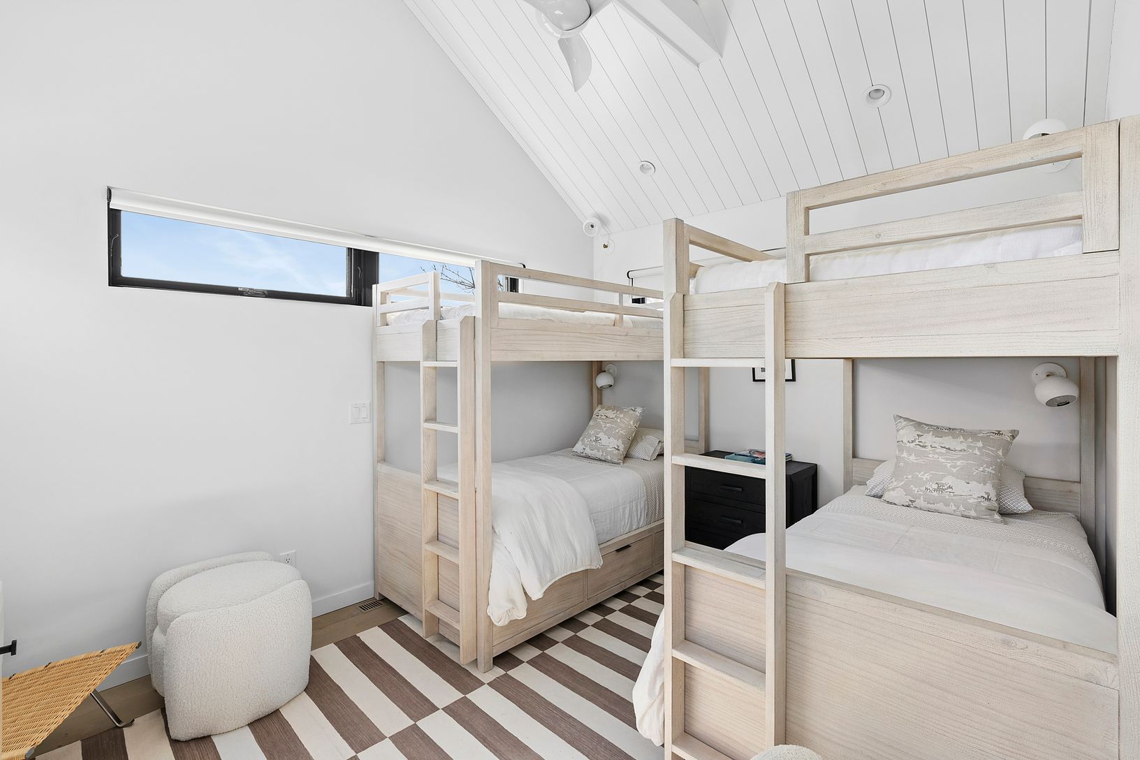 Located within Montauk Shores-often called Montauk's best-kept secret-this reimagined retreat offers a rare blend of design, location, and lifestyle. Set on a bluff with access to over 1,000 feet of oceanfront, the home has been thoughtfully transformed into a modern coastal escape. An innovative layout, soaring pitched ceilings with skylights, and a clean, curated material palette create a bright, airy interior that feels far beyond the expec
