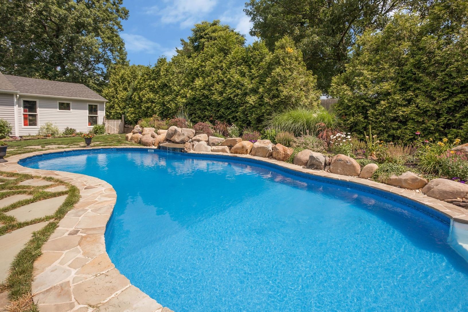 Character, Charm, Warmth, Functionality Offered In This Renovated Colonial. Stone Front ,Covered Front Porch that Invites You Into A Rustic Style Interior that has an Adirondack feeling , Hardwood Floors And Cedar Walls Throughout The Home, Living Room With Stone Fireplace. Kitchen Custom Wood Cabinets, Granite Counters, Viking Appliances, Step Onto Deck Overlooking Your Lagoon Style Pool With Rock Waterfall. Deep Garage 2 car With Shop/Office