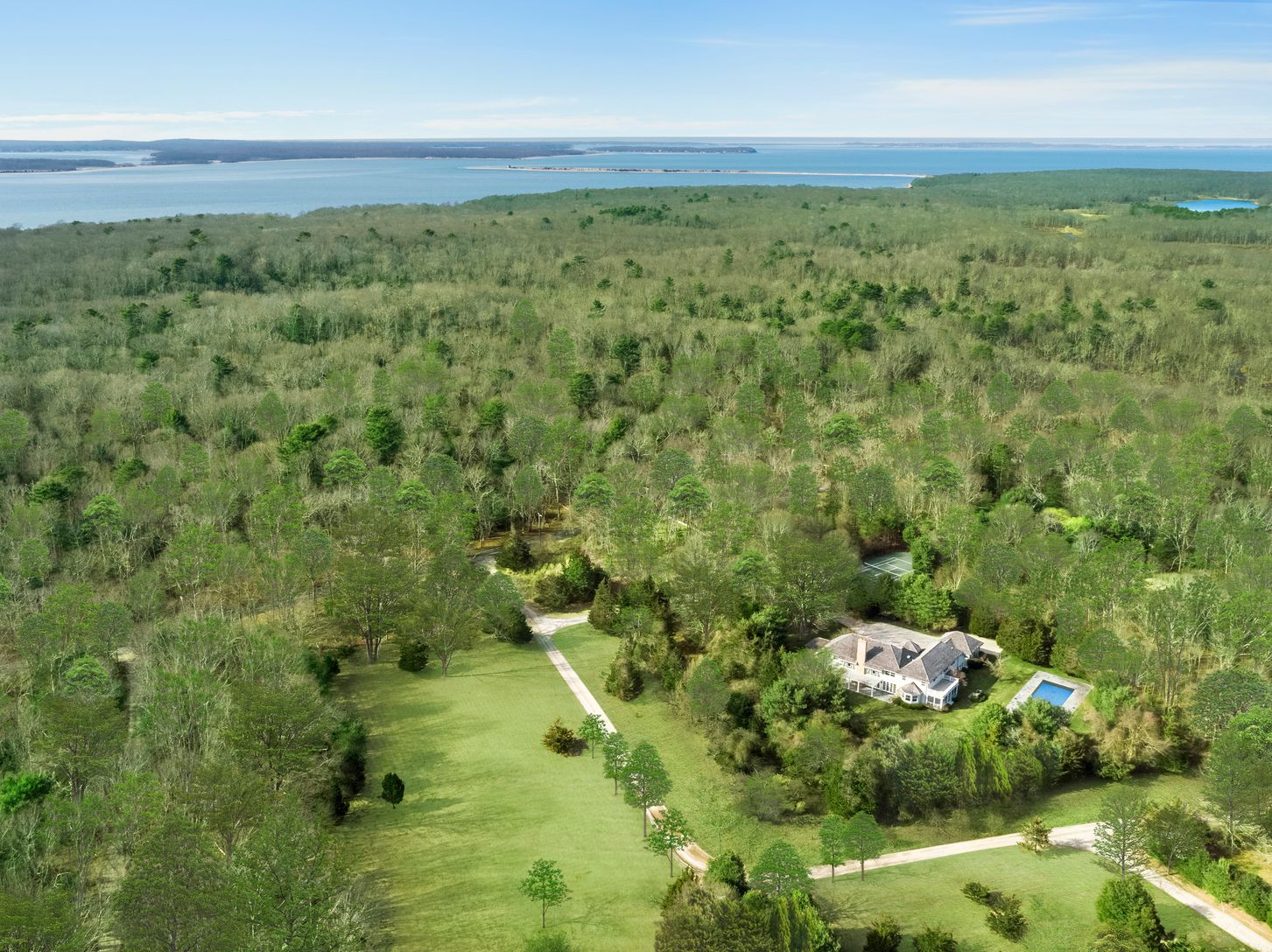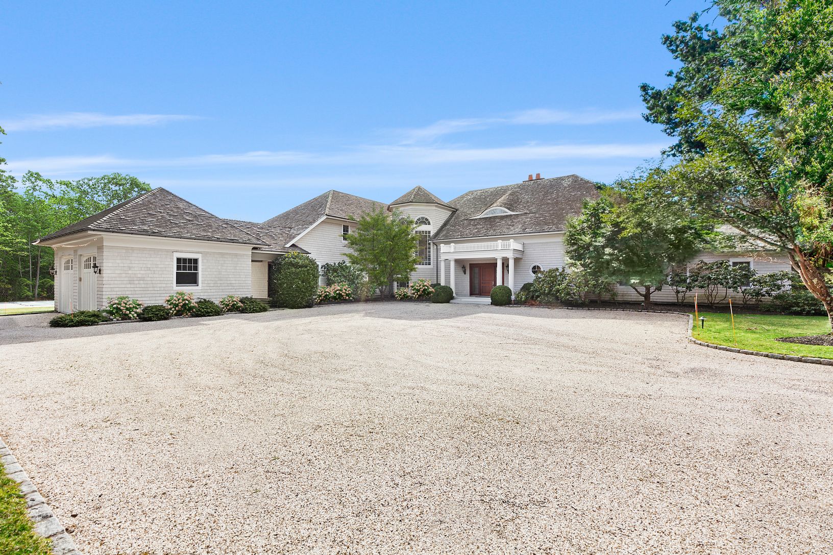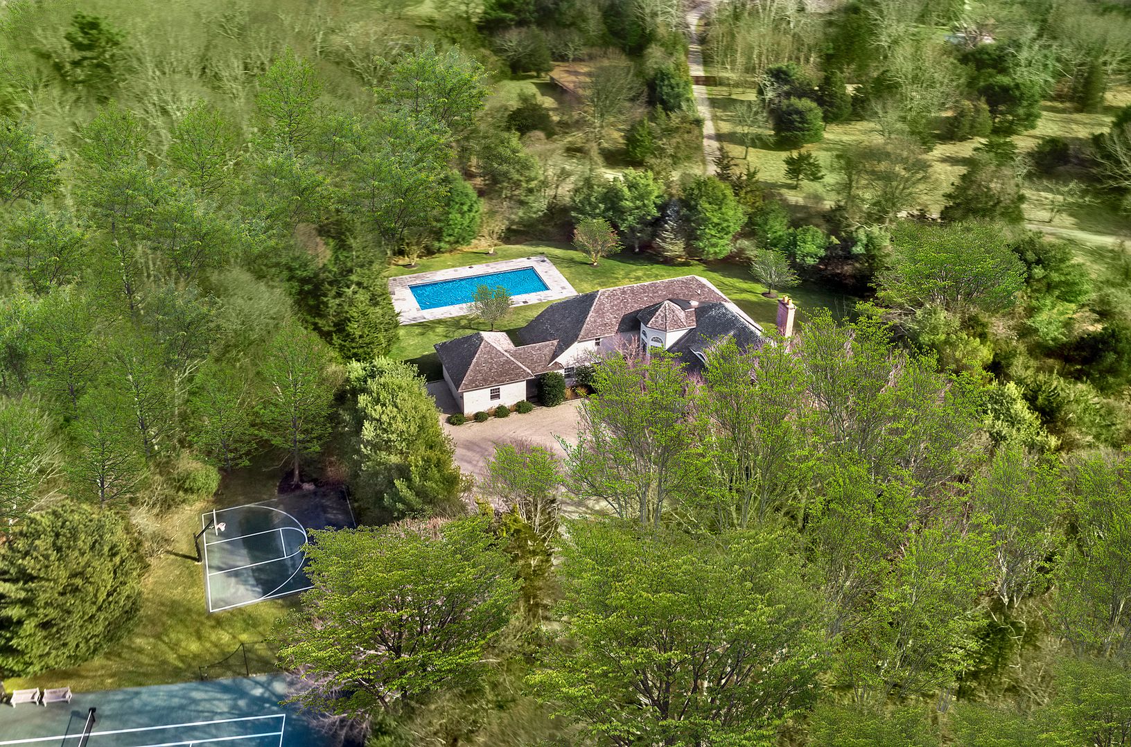Through the gated entry, down a private drive, past the tennis court and basketball half-court, lies this exceptional 7000 sq. ft. 6 bedroom, 7.5 bathroom East Hampton home, sited on a secluded 5.2 acre parcel. A feeling of grandeur permeates, reminiscent of a golden age. The grand foyer entry draws your attention to the open living room with 22.5 ft ceilings and French doors which open to the beau
