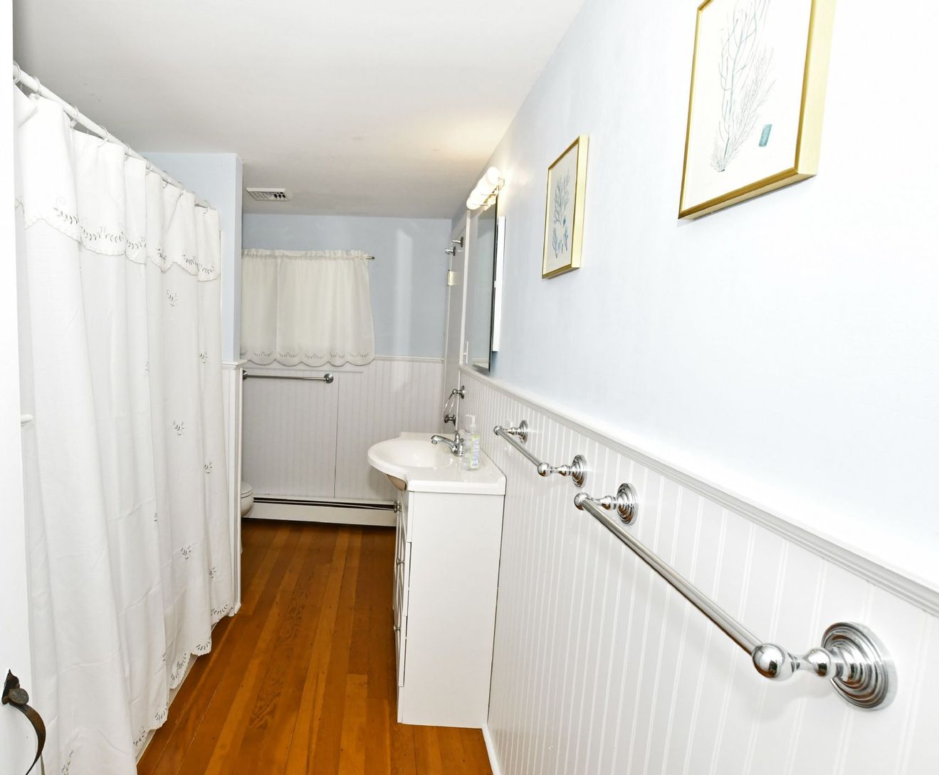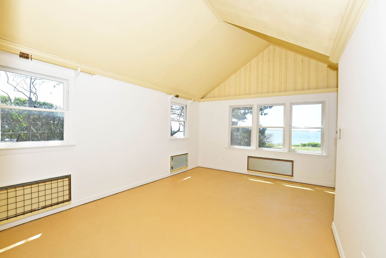 Infinite Views over Shelter Island Sound and extensive bulk-headed sandy beach front make for perfect, summer days and sunset filled nights spent enjoying the beauty and tranquility of this property. Charming interior with beautiful wood floors and touches of wainscoting, living room with beamed cathedral ceiling, picture window and wood burning fireplace, cooks kitchen with dining alcove, two bedrooms, two baths, office/den, large waterside c