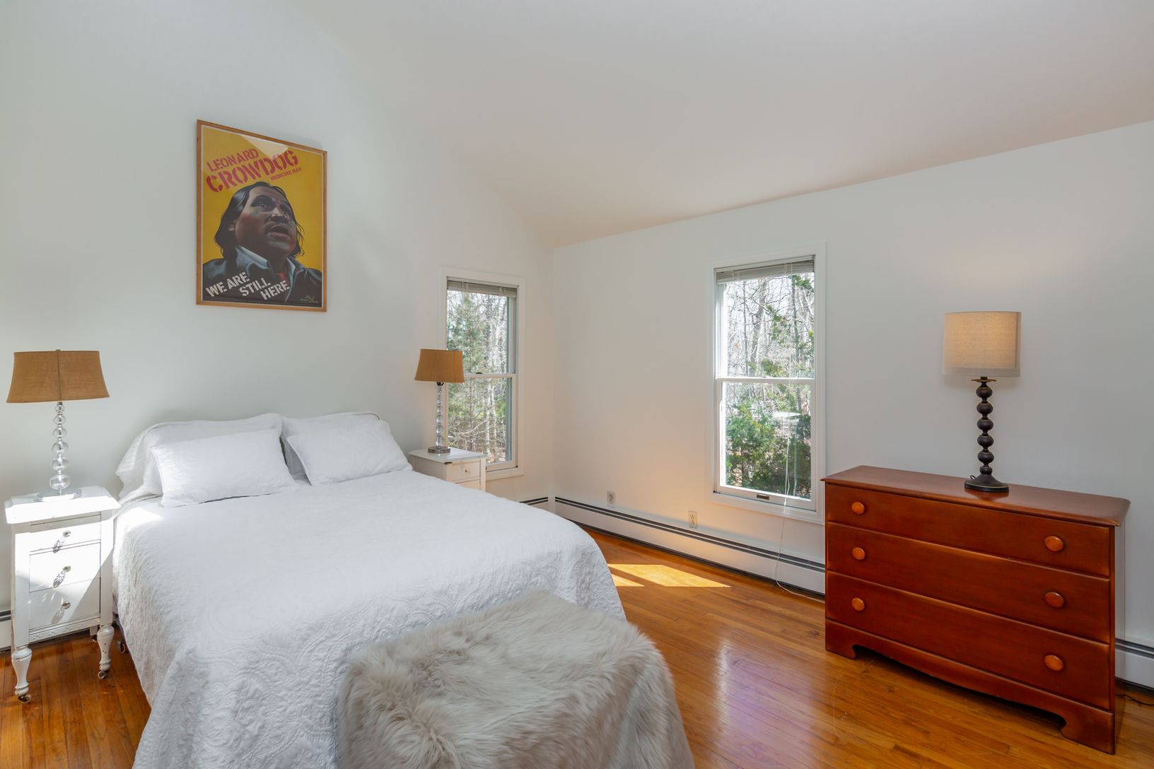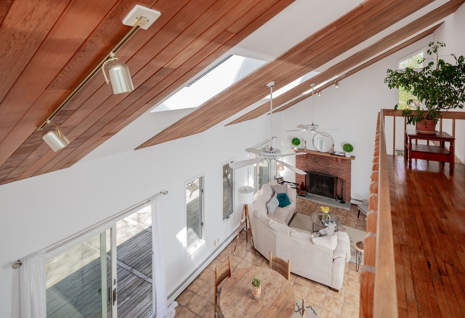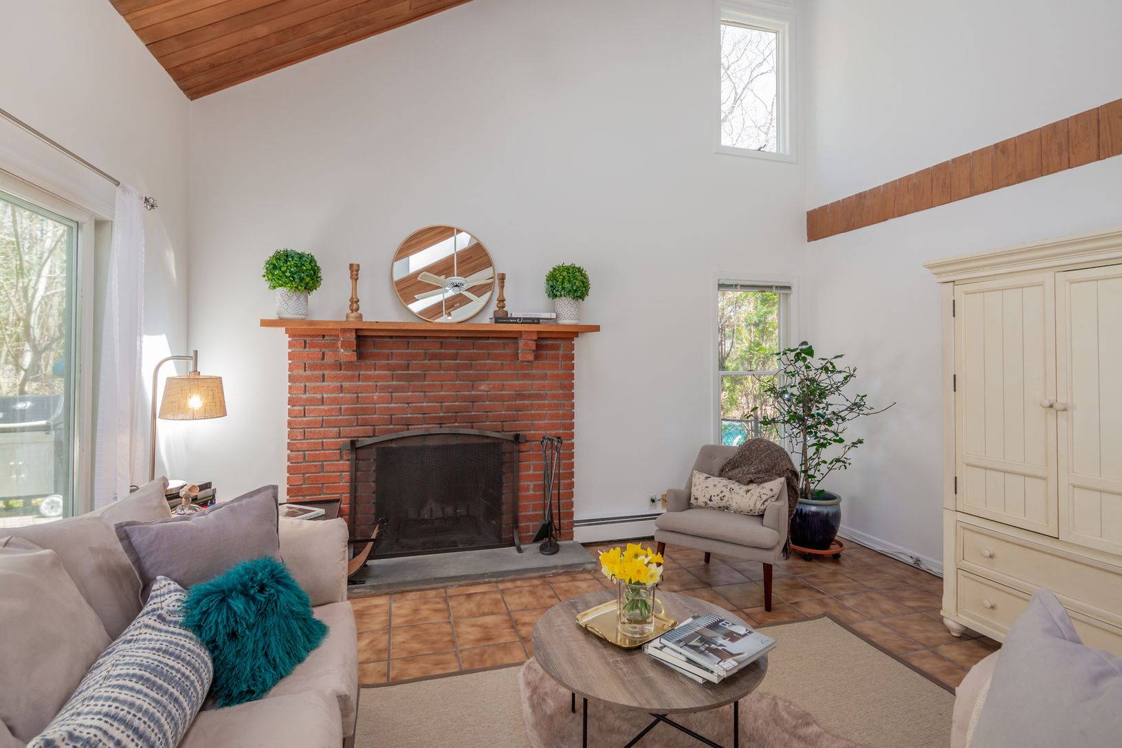 This Springs Gem offers a bright 3 bedroom/2 bathroom saltbox, minutes away from lovely beaches, sunsets and neighborhood shopping as well. The property features an open floor plan with double height living-dining great room, skylights, fireplace & balcony study. The sunny eat in kitchen offers new appliances, plentiful storage & new pristine granite counters. A wrap around deck overlooks the heated, generously sized enclosed swimming