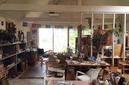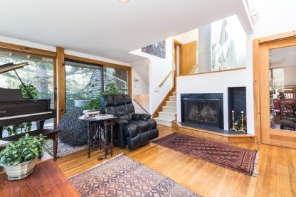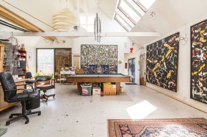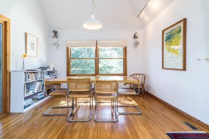 Private waterfront compound is uniquely sited to accentuate the 2+/- acres on which it is situated as well as offering direct access to Accabonac Harbor with a cleared path. There are four structures on the property including a main house, an attached oversized artist studio with vaulted ceiling and skylights, a second artist studio and a one-car garage. The main house offers four bedrooms and two and a half baths. The library could be used as