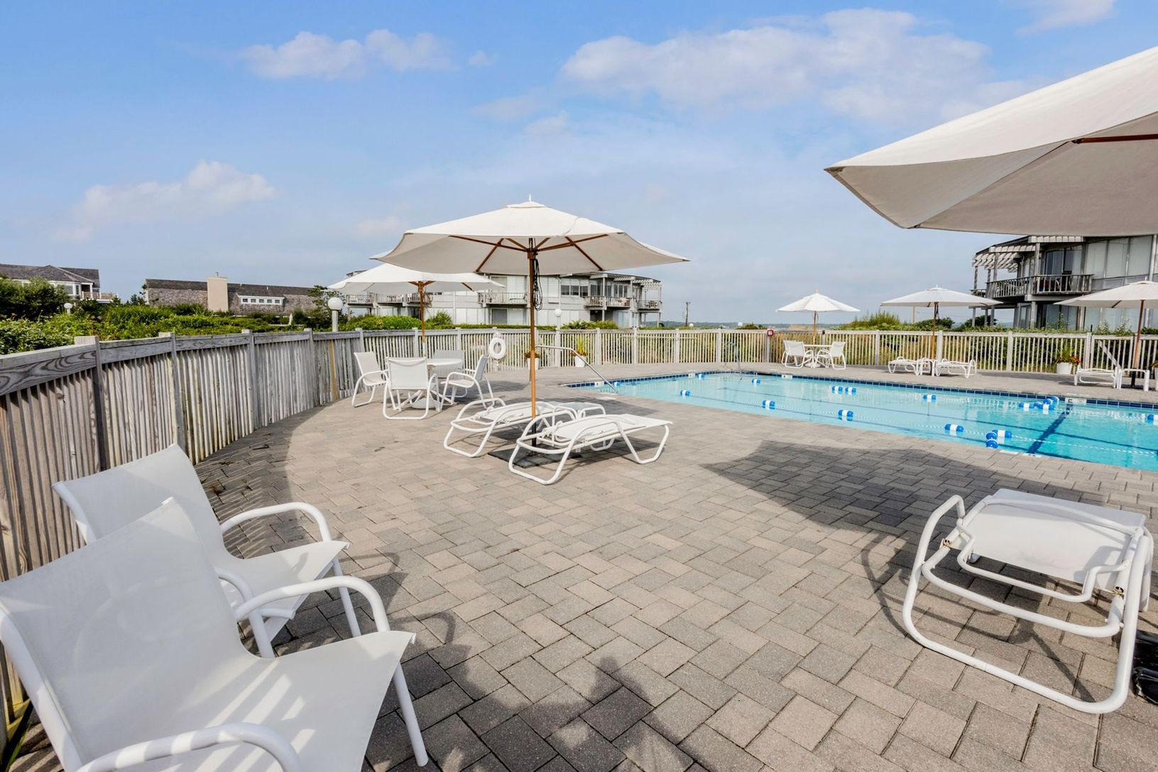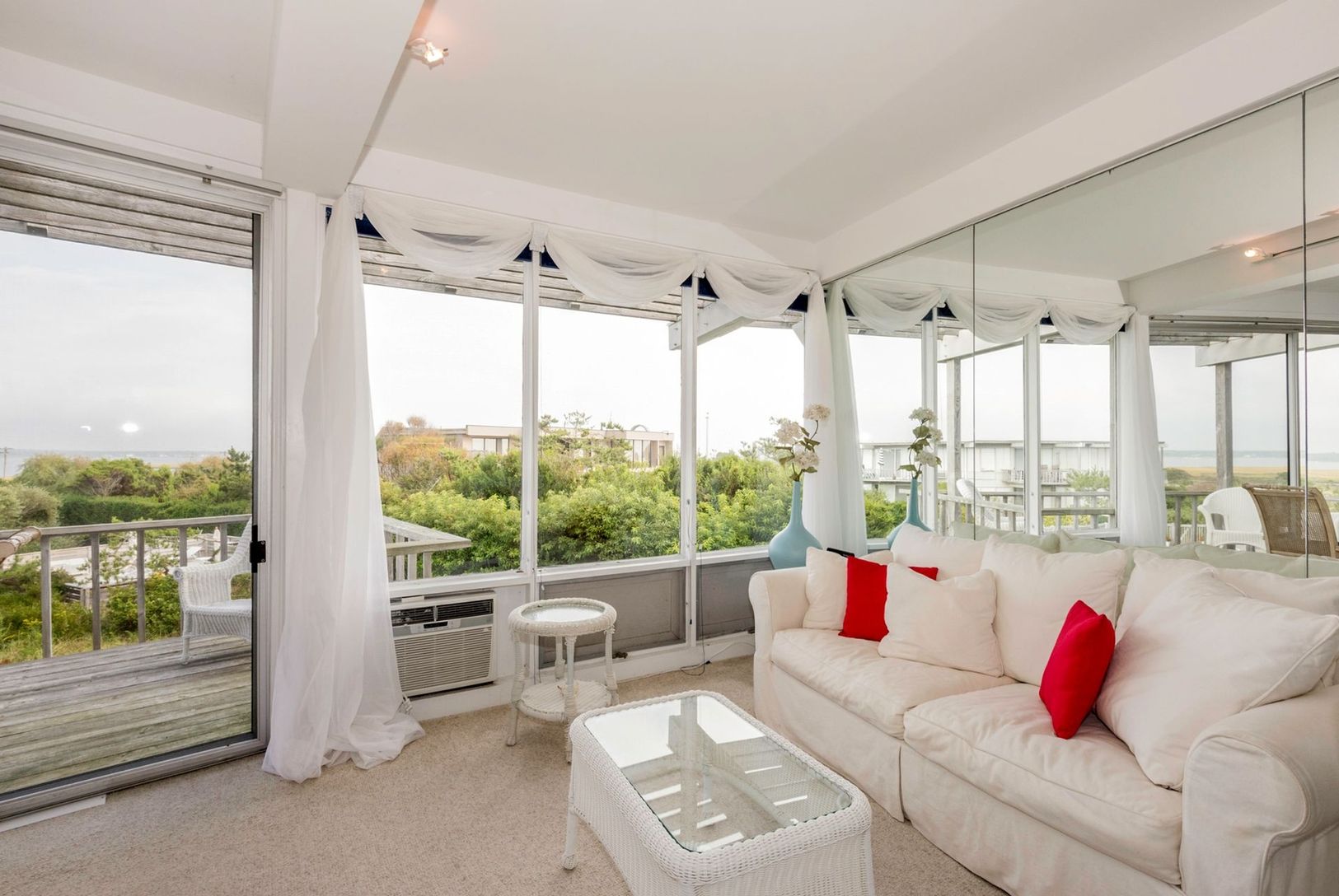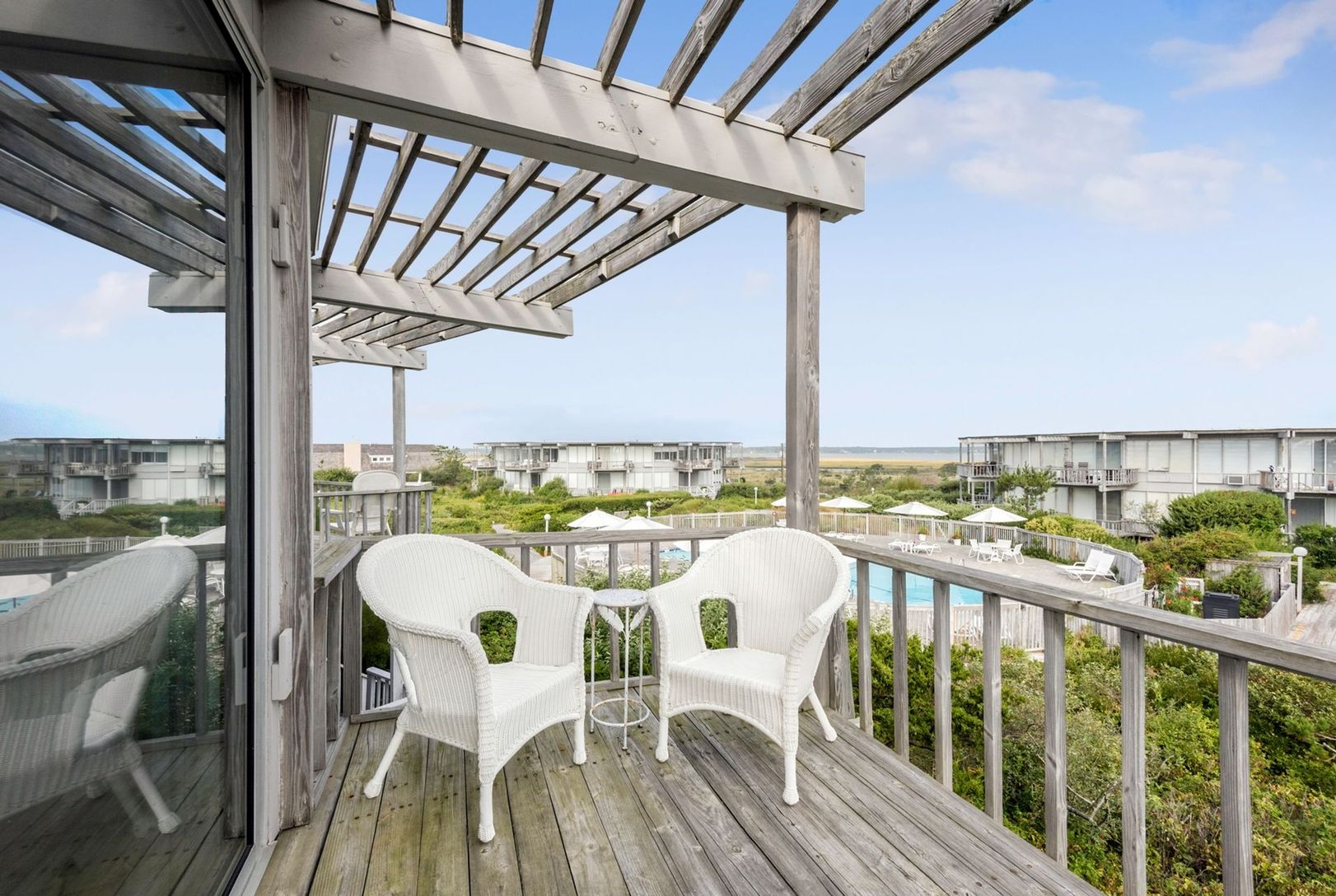 Enjoy easy summer living in this beautiful Round Dune unit offering breathtaking bay and ocean views and access to the ocean. Open floor plan with bright kitchen and living area revealing panoramic water vistas. Murphy bed overlooking the peaceful scenery. Delight in a long swim in the community heated gunite pool, savor your morning coffee by the ocean or sunset happy hour on the deck. The property is located just across the street from Docke