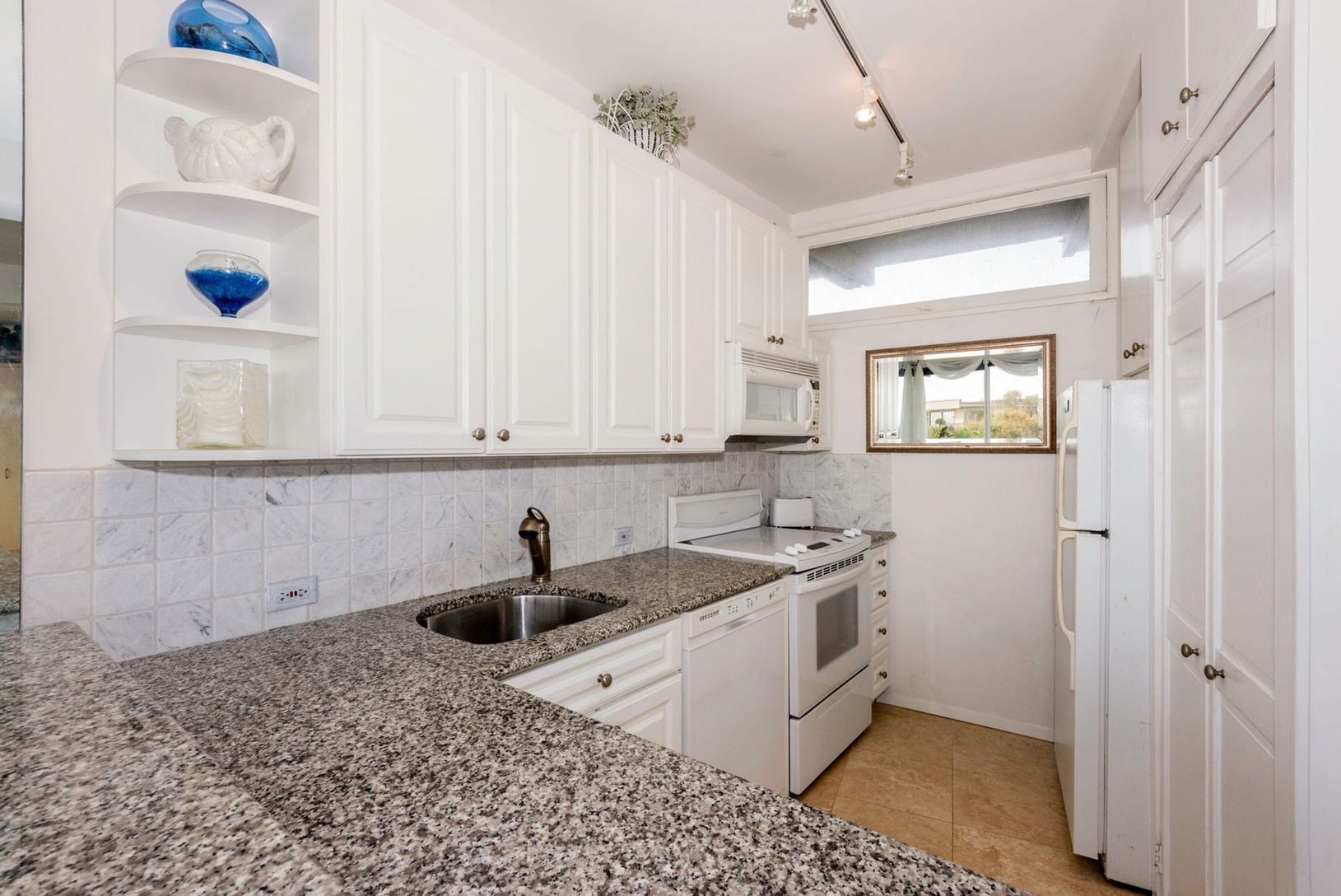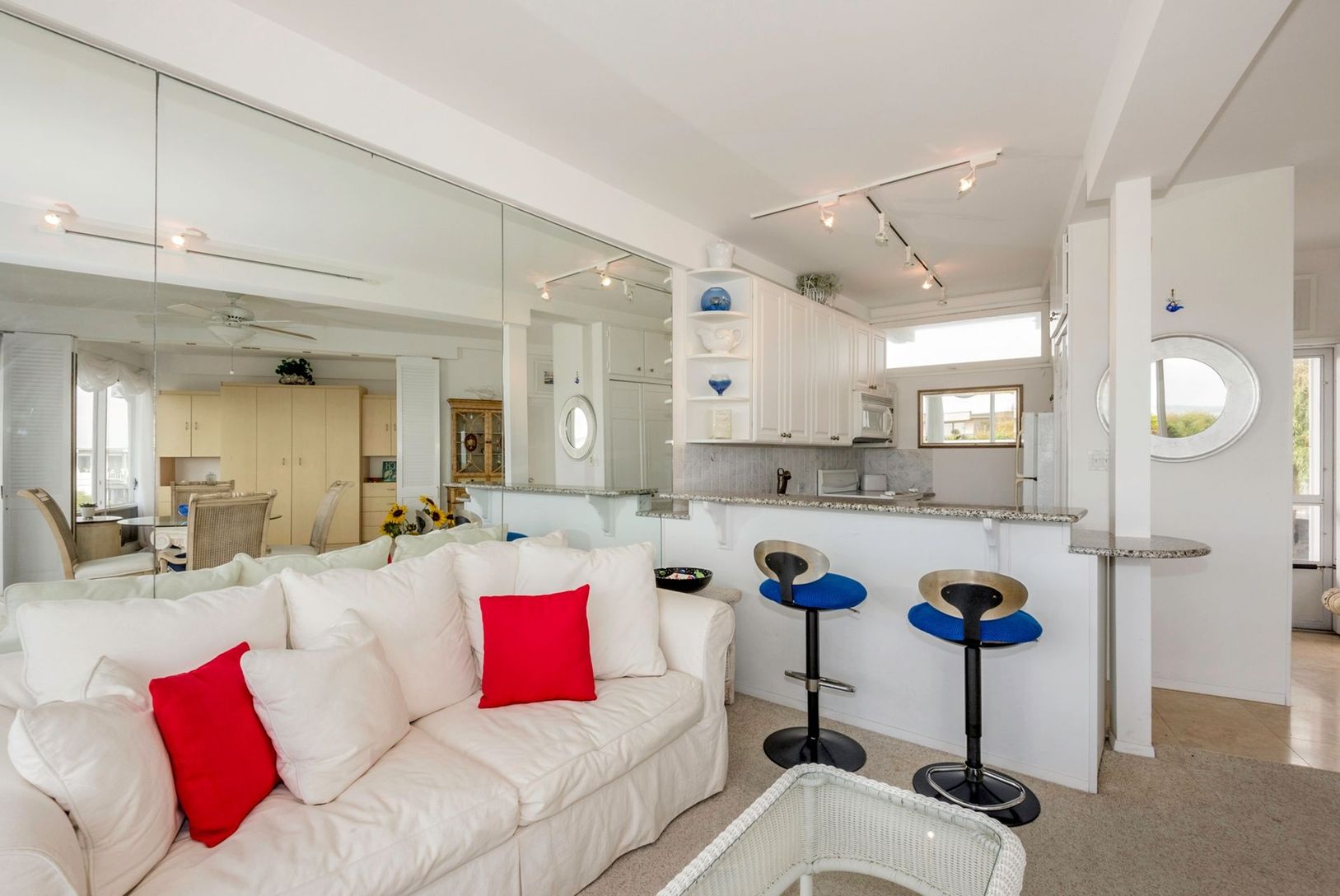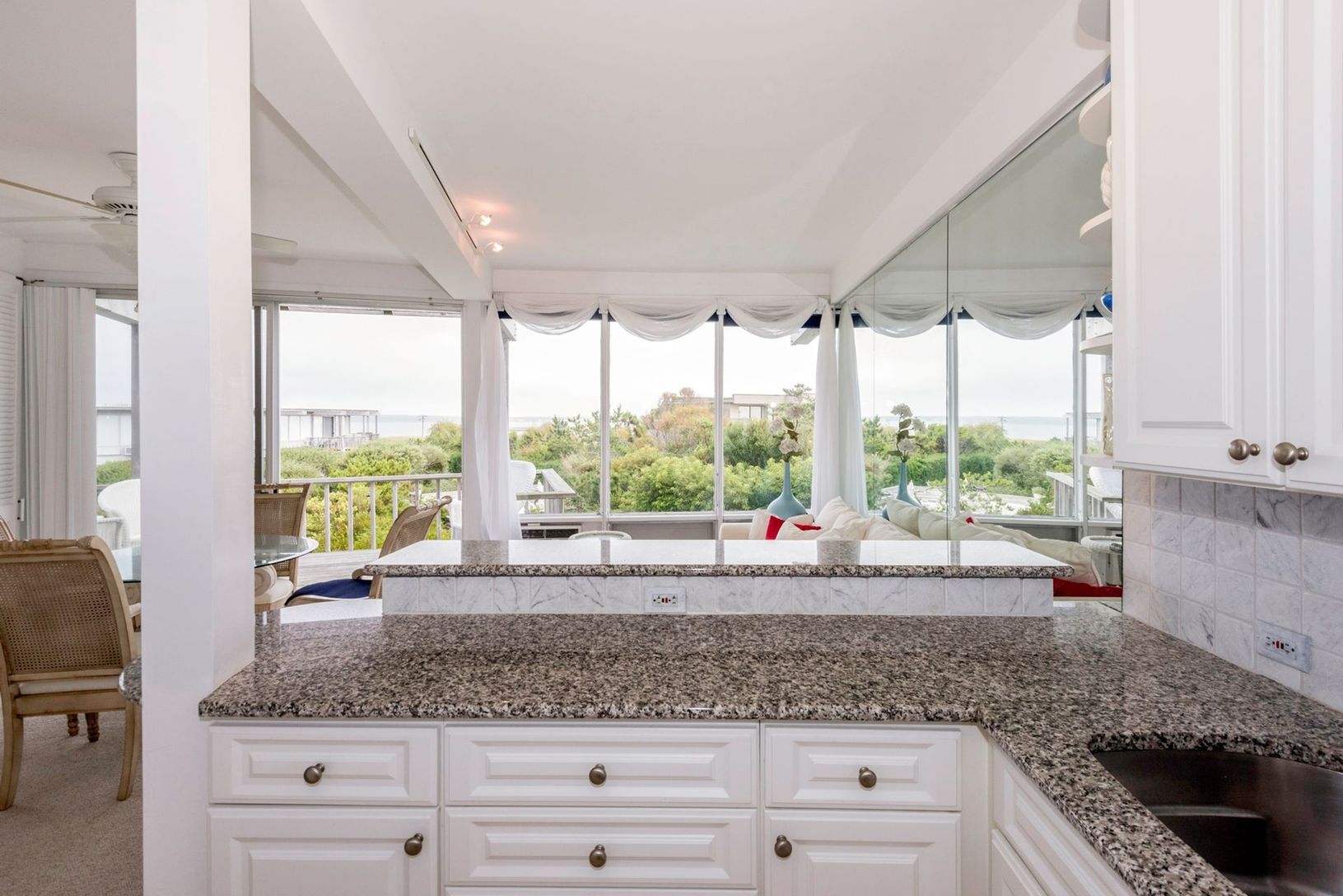 Enjoy easy summer living in this beautiful Round Dune unit offering breathtaking bay and ocean views and access to the ocean. Open floor plan with bright kitchen and living area revealing panoramic water vistas. Murphy bed overlooking the peaceful scenery. Delight in a long swim in the community heated gunite pool, savor your morning coffee by the ocean or sunset happy hour on the deck. The property is located just across the street from Docke