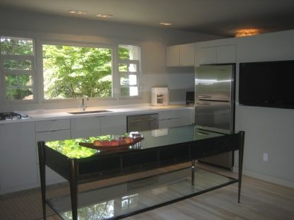 The exterior simplicity of this quaint 1950's Sag Harbor beach bungalow belies the crisp and sophisticated modern renovation of its interior. Masterfully redone to welcome you into an inviting and serene open living space embracing living, dining and custom kitchen areas. From the kitchen, you access the delightful screened porch with mahogany flooring and wraparound windows; french doors from the living area as well as the master bedroom, lea