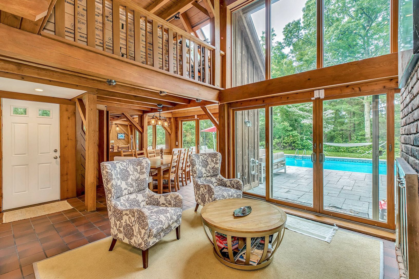 Nestled amidst the picturesque landscape of the Hamptons, this stunning beachy chalet is the epitome of coastal elegance and relaxed luxury. Boasting a seamless blend of rustic charm and modern sophistication, this idyllic retreat offers an enchanting escape from the hustle and bustle of everyday life. As you step inside, you are greeted by a light-filled open-concept living space that perfectly complements the surrounding environment. The fir