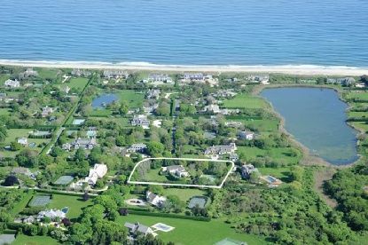 In the heart of the coveted Murray compound, a rarefied community in Southampton Village, presides this stunning stucco traditional home on two professionally landscaped acres. The property is one of only a few properties with deeded access down a quiet country lane to the pristine Atlantic Ocean beaches. The residence has 5 bedrooms, 6.5 baths, a grand entry with barrel-vaulted ceiling, a formal living room with fireplace and views overlookin