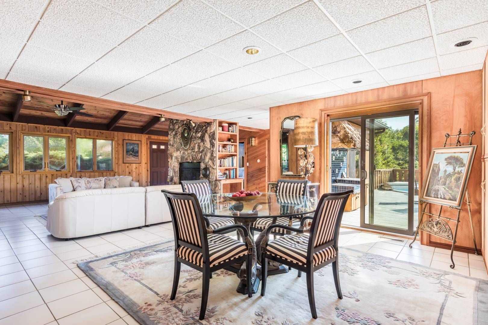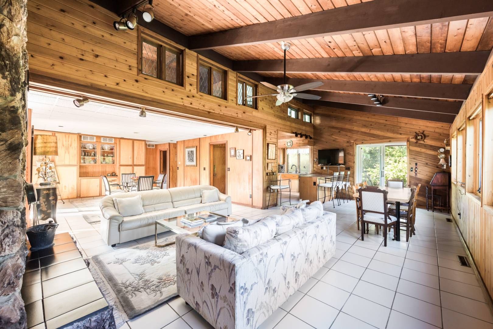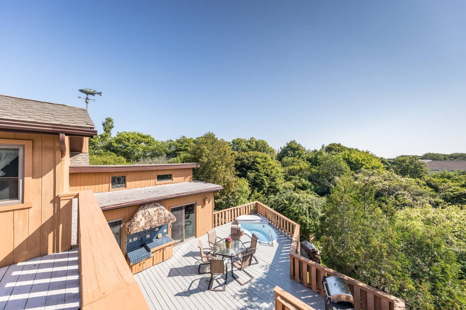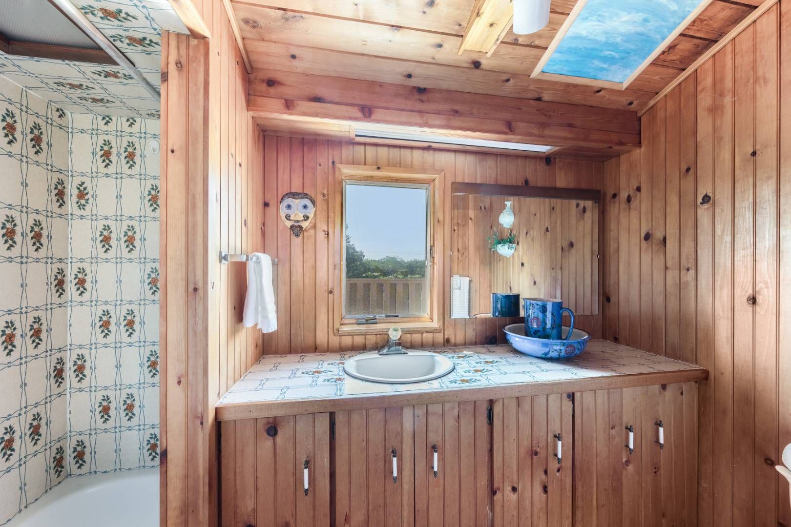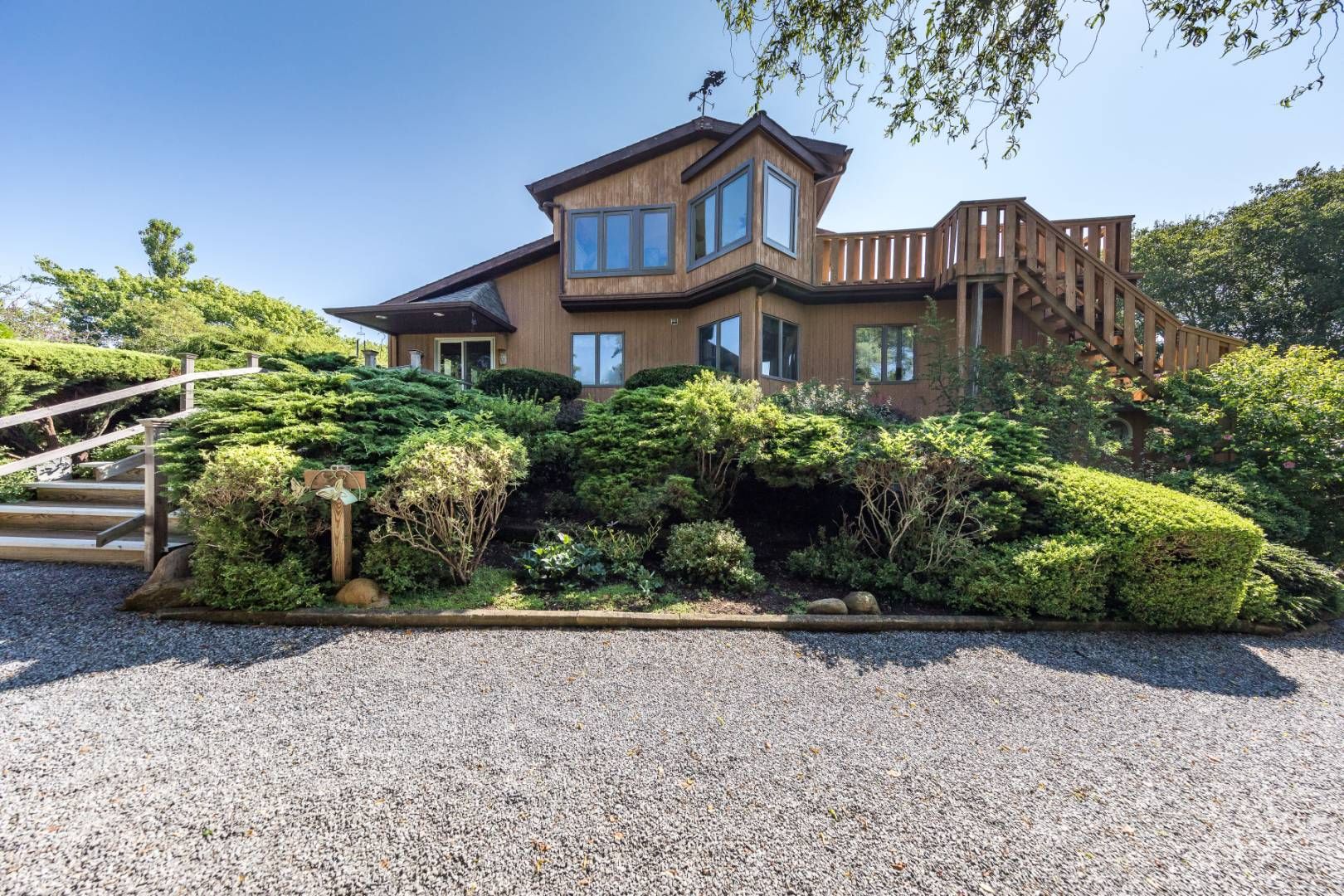 Sitting privately on over one acre, this classic Montauk home offers endless possibilities! The main level offers an open concept throughout with three of the four bedrooms and one full bath. An additional sunroom/den area as well as a living area with wood burning fireplace and kitchen are also located on the first floor. Upstairs is home to the large master bedroom with ensuite bath and second sunroom with sliding glass doors out to the wrap