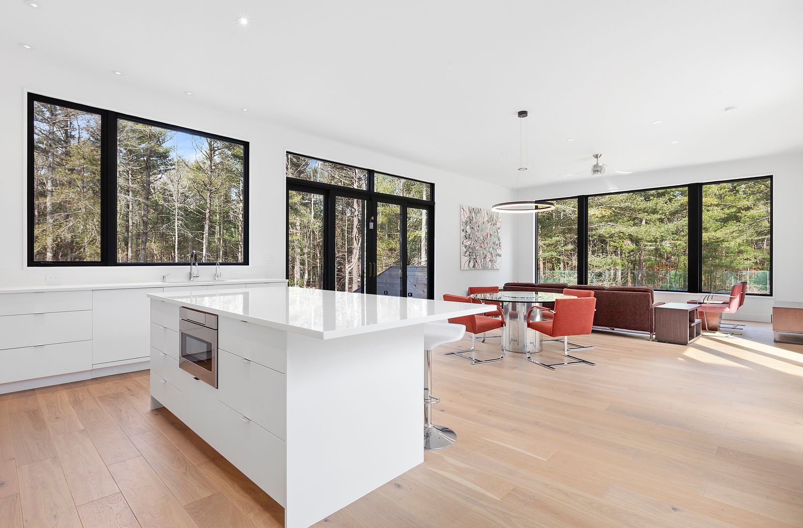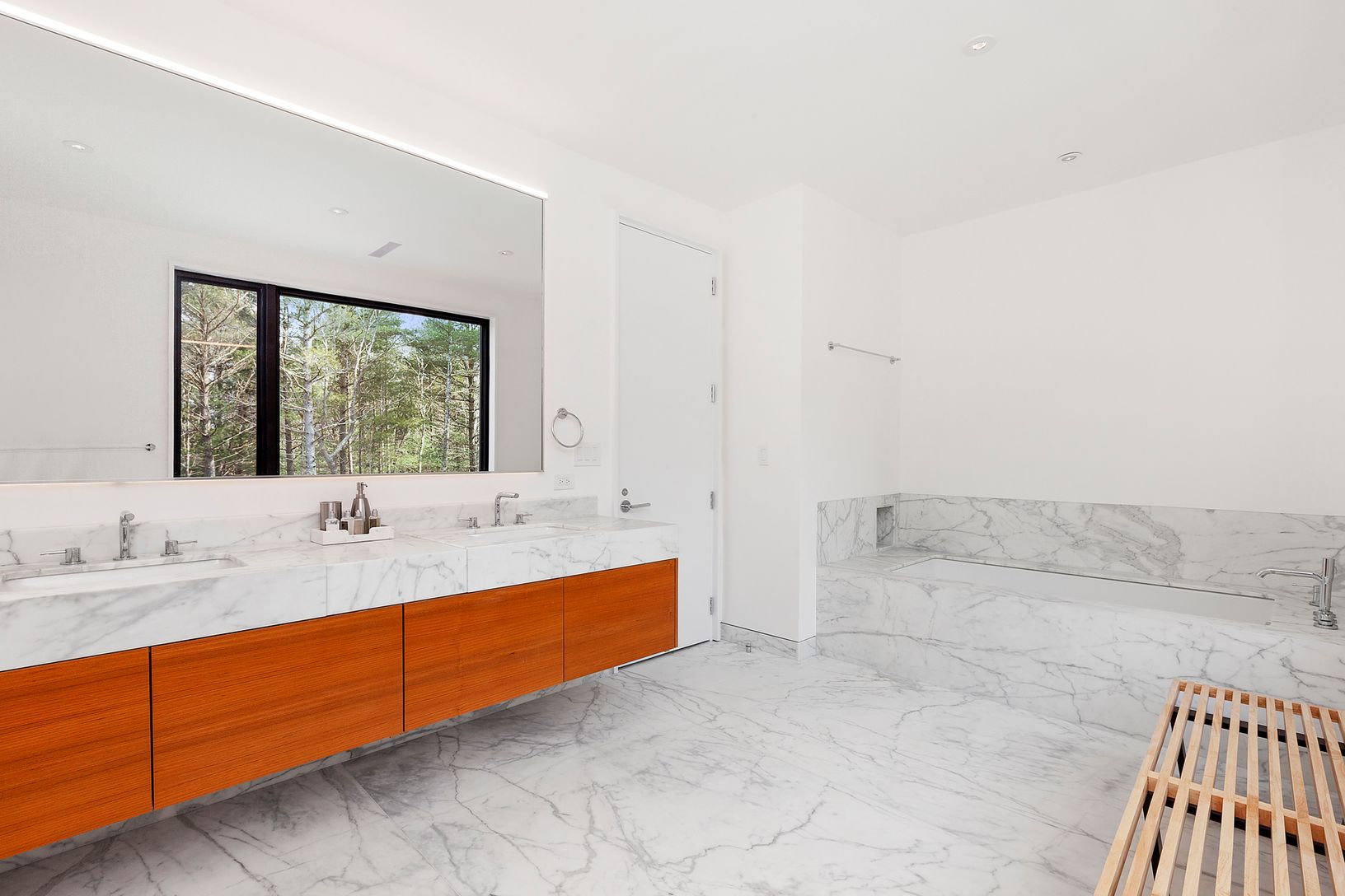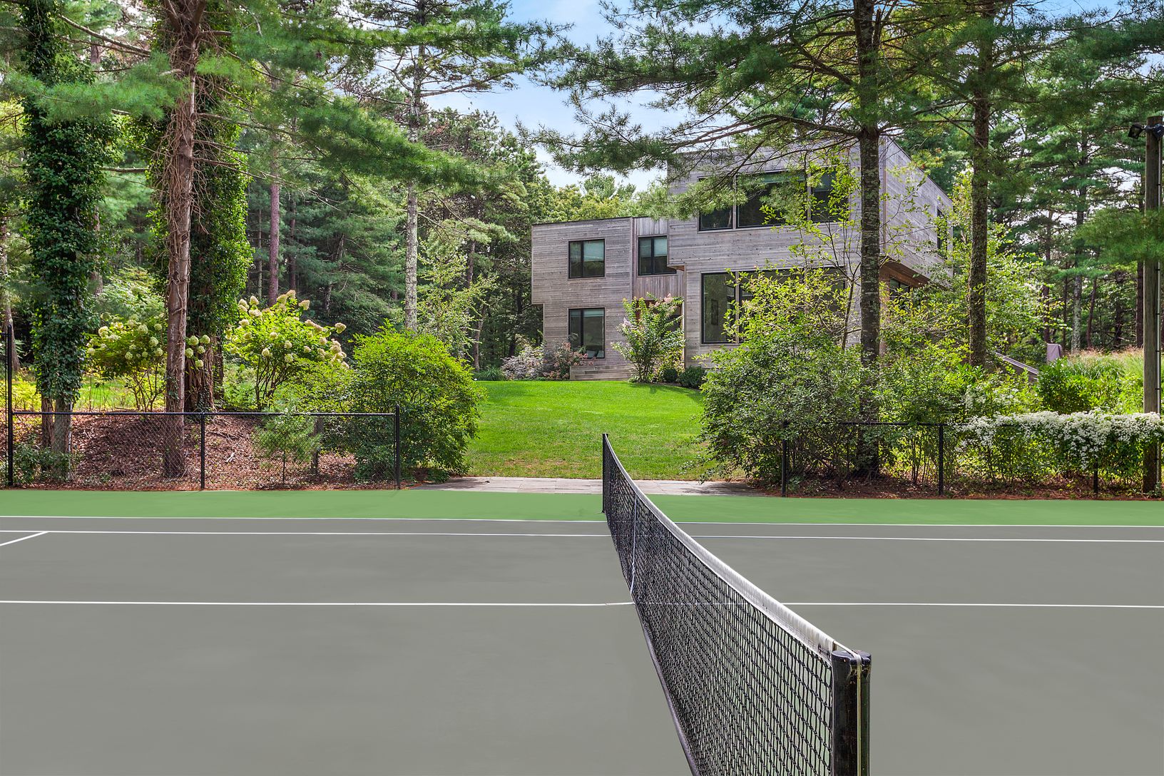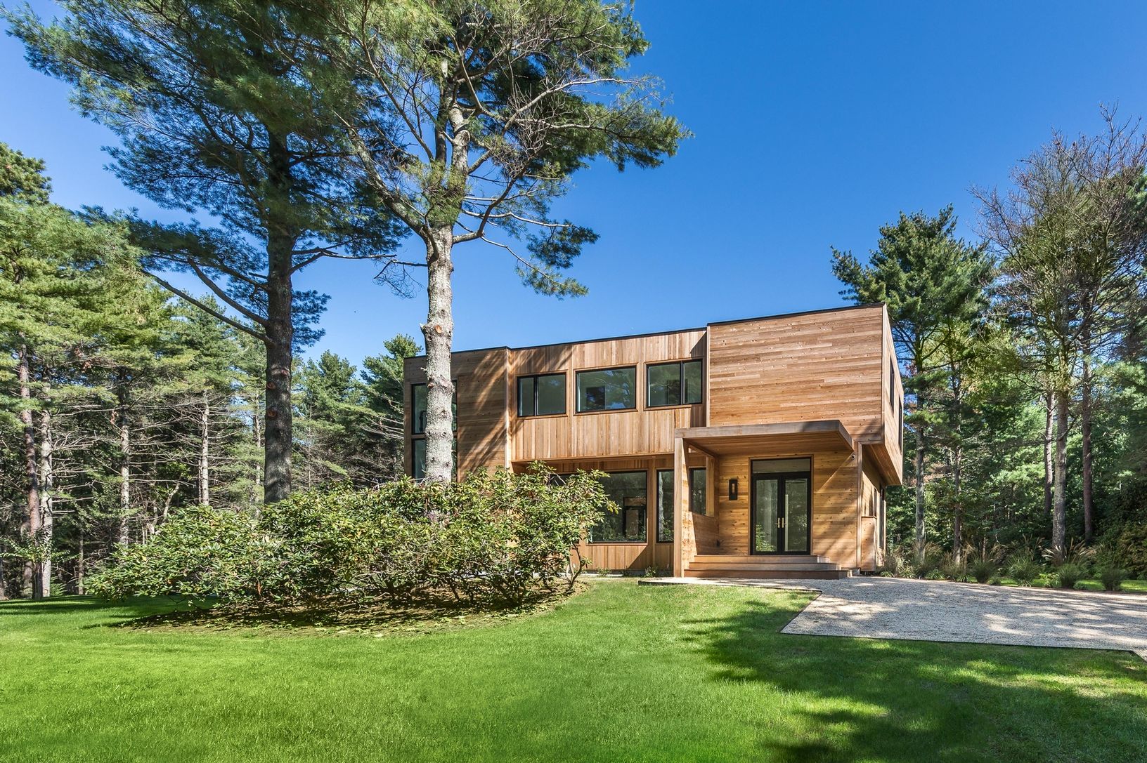 Gorgeous new modern home in East Hampton, a true contemporary masterpiece in it's design and detail, conceived by AIA architect Vivian Wang. Perfectly located adjacent to the Two Holes of Water Reserve, and accessed by a long private gated drive. The gorgeous 2.6+ acre property, comprised of peaceful white pine forest and pristinely landscaped grounds, provides a relaxing retreat and resort-like lifestyle, with a 15'x46' heated swimming pool a