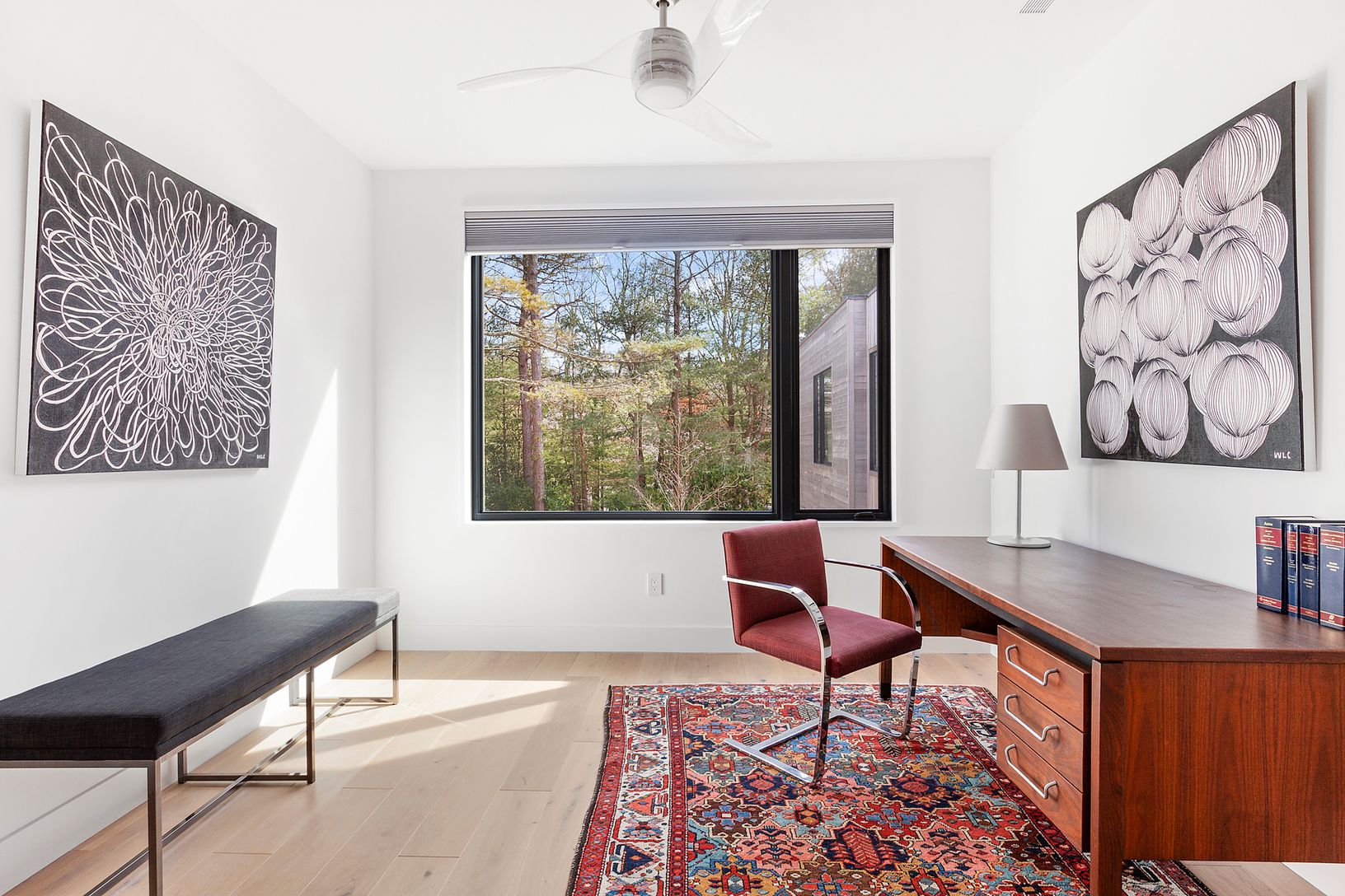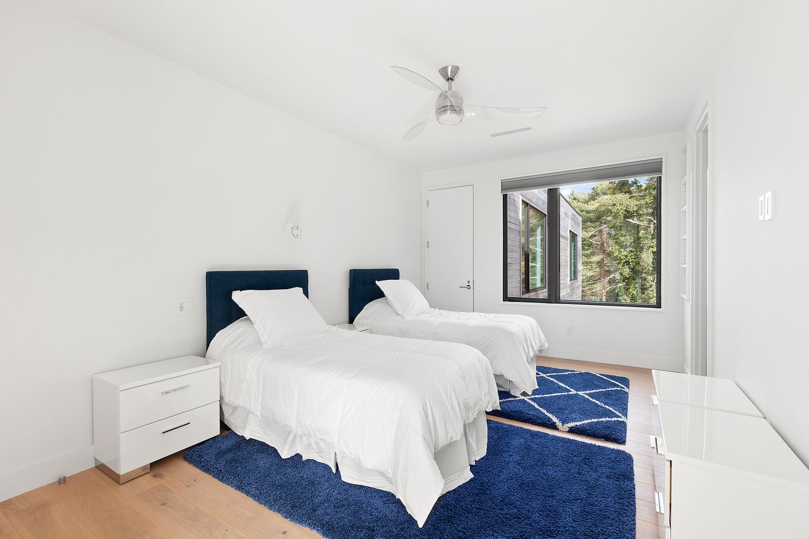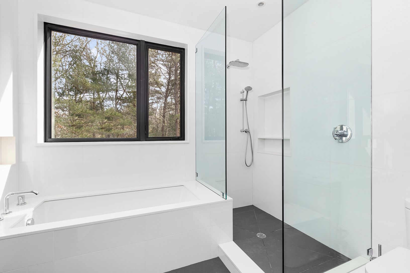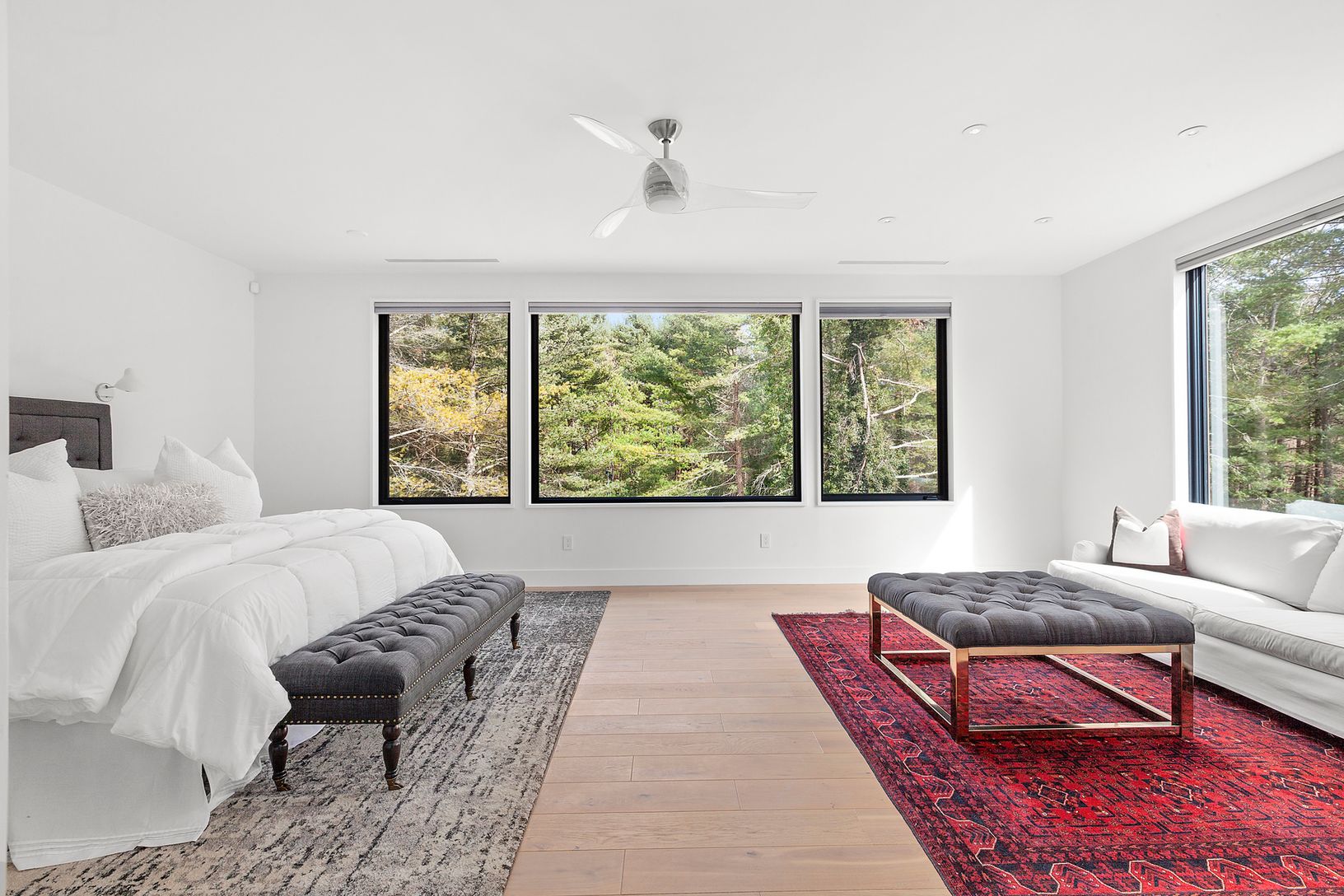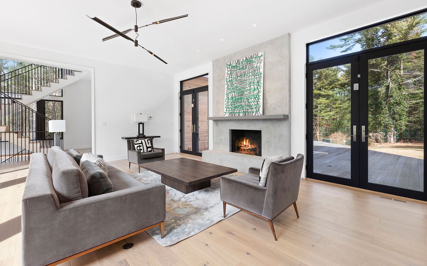 Gorgeous new modern home in East Hampton, a true contemporary masterpiece in it's design and detail, conceived by AIA architect Vivian Wang. Perfectly located adjacent to the Two Holes of Water Reserve, and accessed by a long private gated drive. The gorgeous 2.6+ acre property, comprised of peaceful white pine forest and pristinely landscaped grounds, provides a relaxing retreat and resort-like lifestyle, with a 15'x46' heated swimming pool a