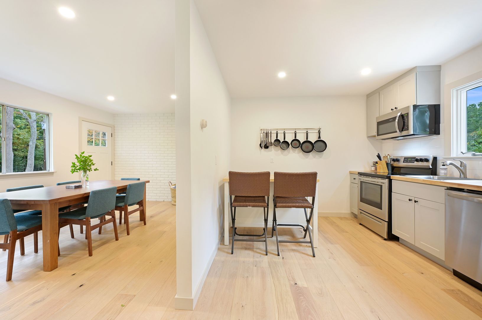 Handsomely renovated and re-imagined 3 bedroom and 1 bath ranch on a 1 acre flat parcel at 102 Copeces Lane in Springs, East Hampton. Brand new stainless eat in kitchen and bath with new flooring throughout. Cathedral ceilings feature beautiful exposed rafters in the living or 3rd bedroom. There's a tucked away pantry with wine refrigerator. Laundry conveniently located on the main level. Brand new forced air heating and central air system ins