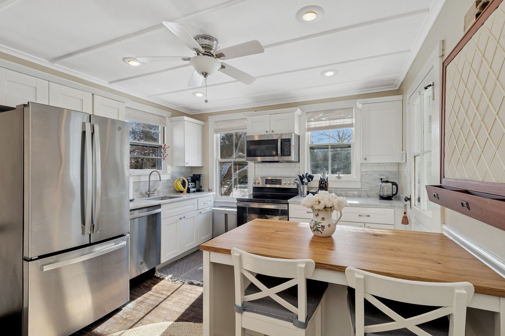 Beautifully situated within 1.05+/- acres, this fantastic property offers complete privacy and is conveniently located near ocean/bay beaches and restaurants. This well cared for sunny cedar shingled farmhouse c1900 has great period details with modern updates and comforts. The home features a stylish living room with original wood-burning fireplace; a den/TV room, formal dining room, stunning kitchen, home office and enclosed porch. There ar