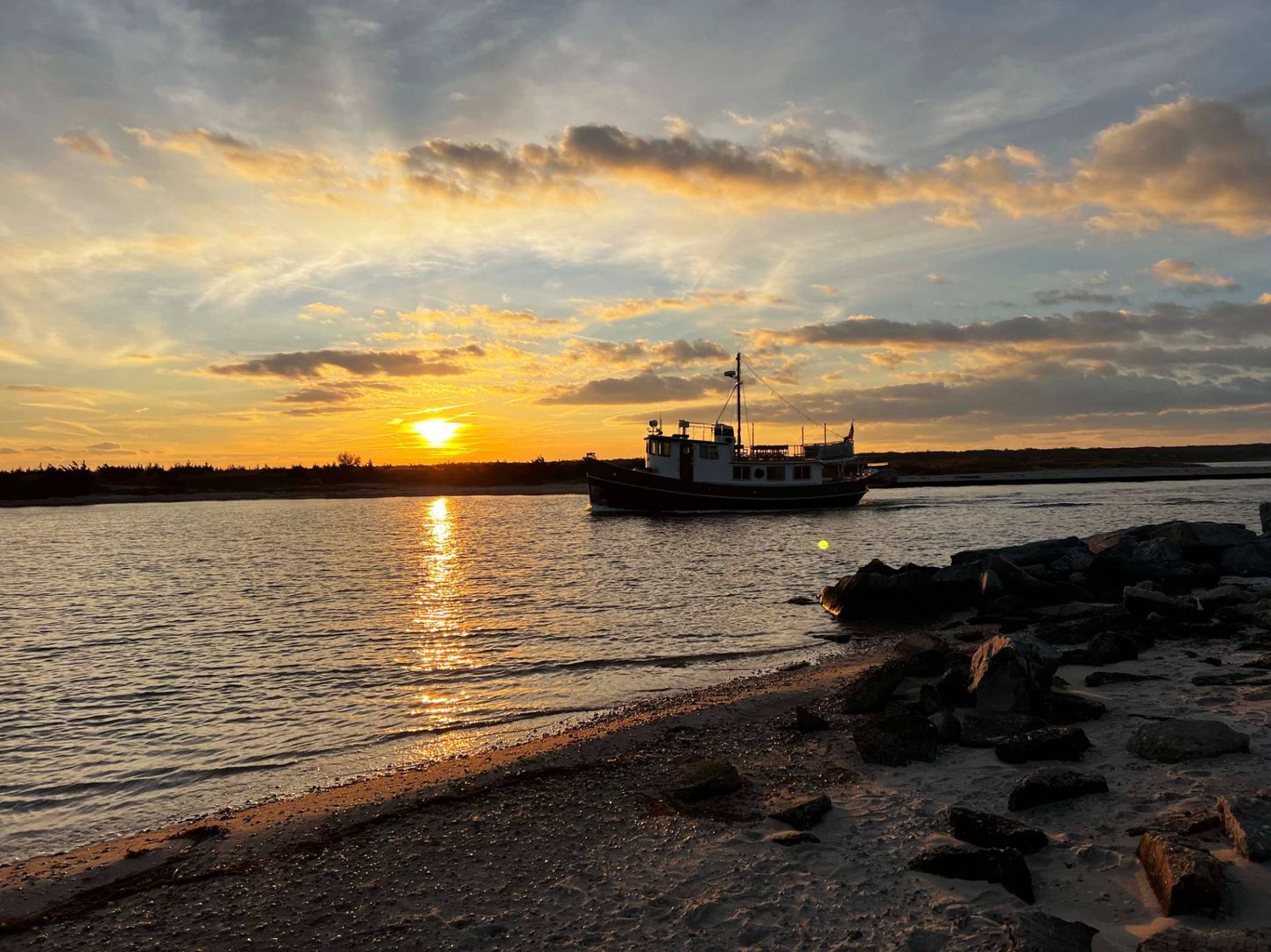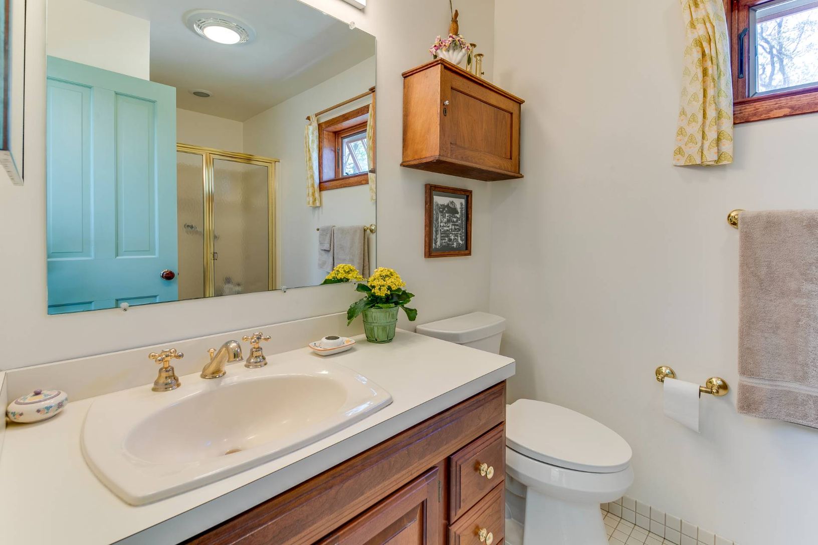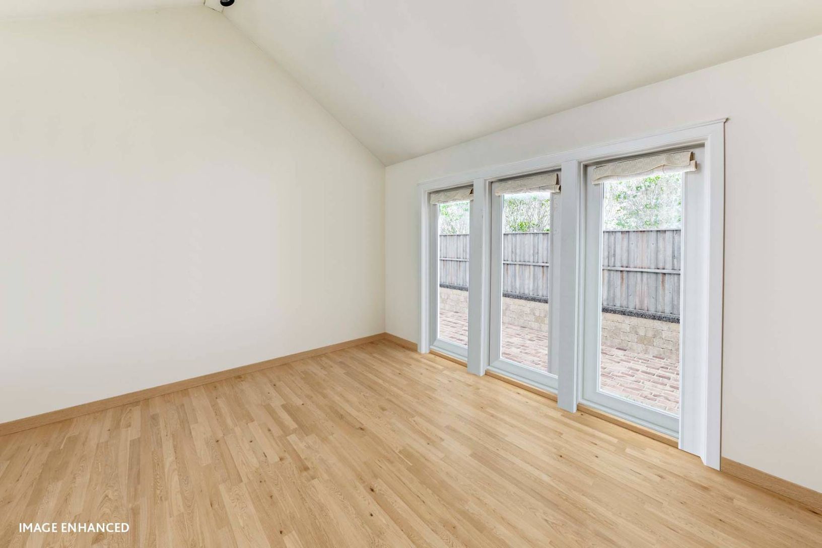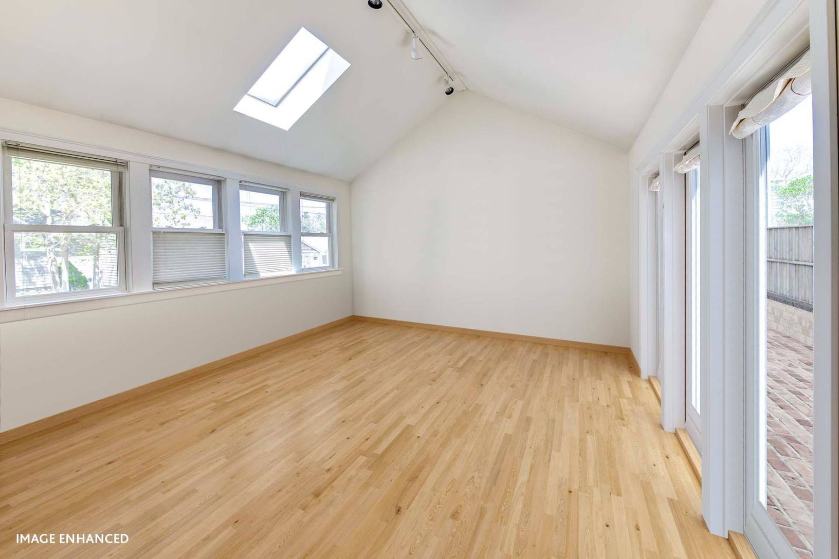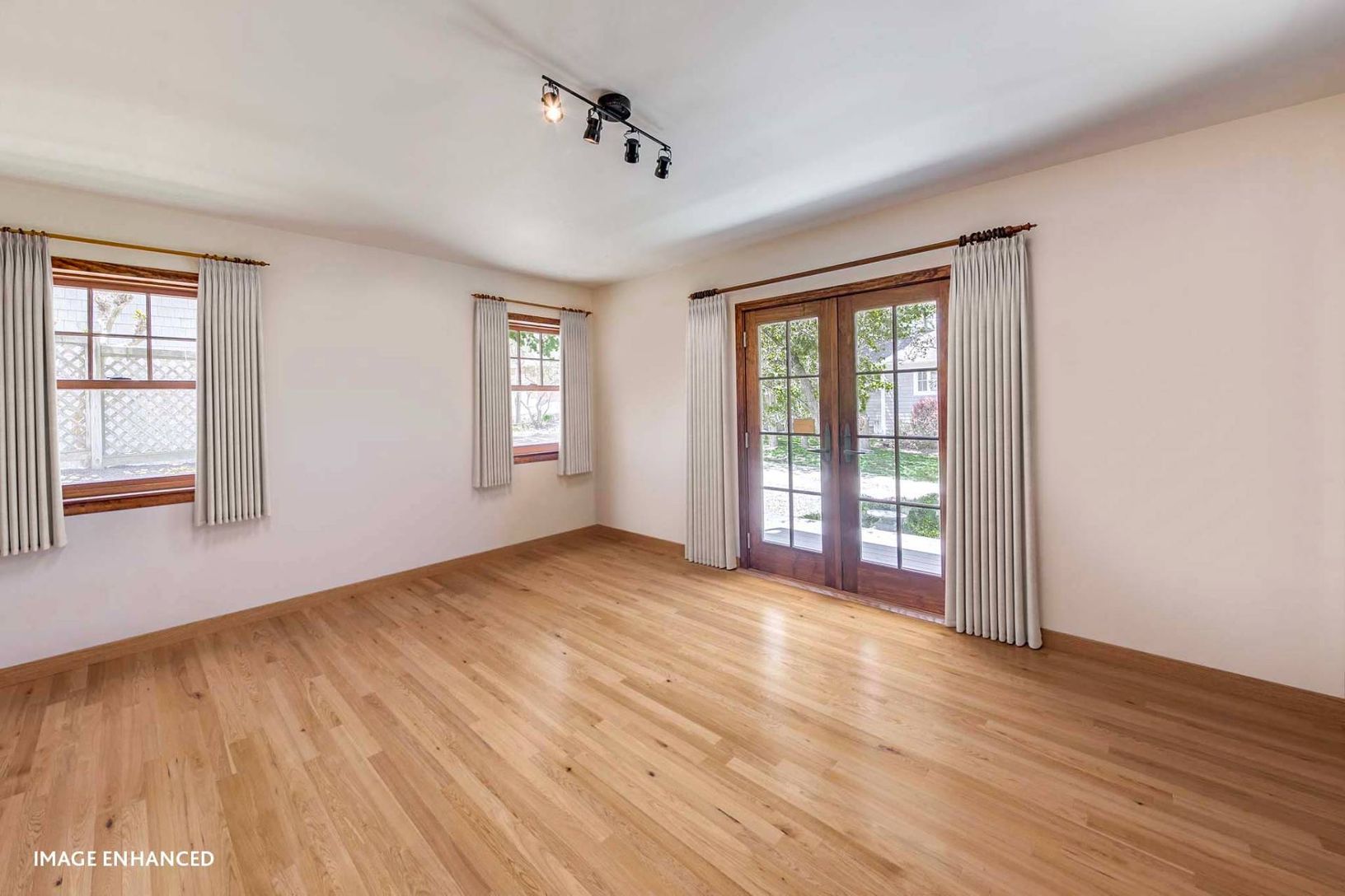 Set on a quiet street just 100 yards from Maidstone Beach, one of the most beloved bay beaches on the East End, this unique compound features two charming cottages totaling 2,100 +/- sq. ft. of living space on three levels. The main cottage welcomes you with a generous lawn and deck leading to a bright living room with three skylights and a fireplace, flowing into a dining area and galley kitchen with loft above. Two ensuite bedrooms - one on