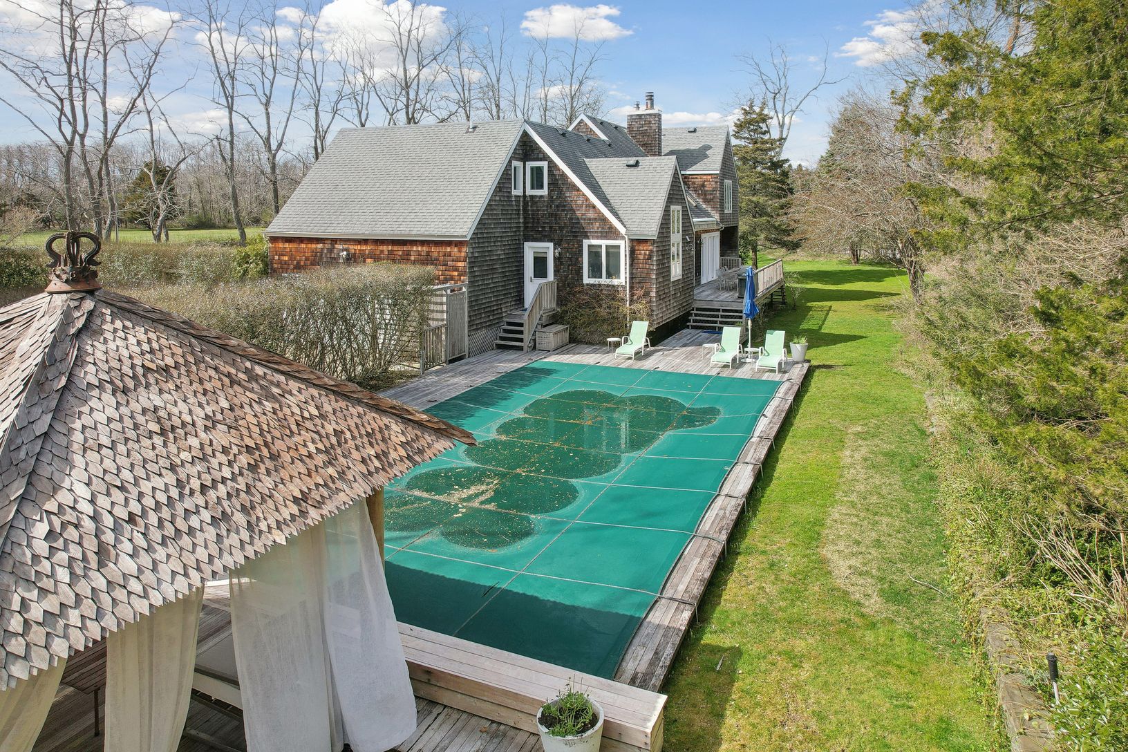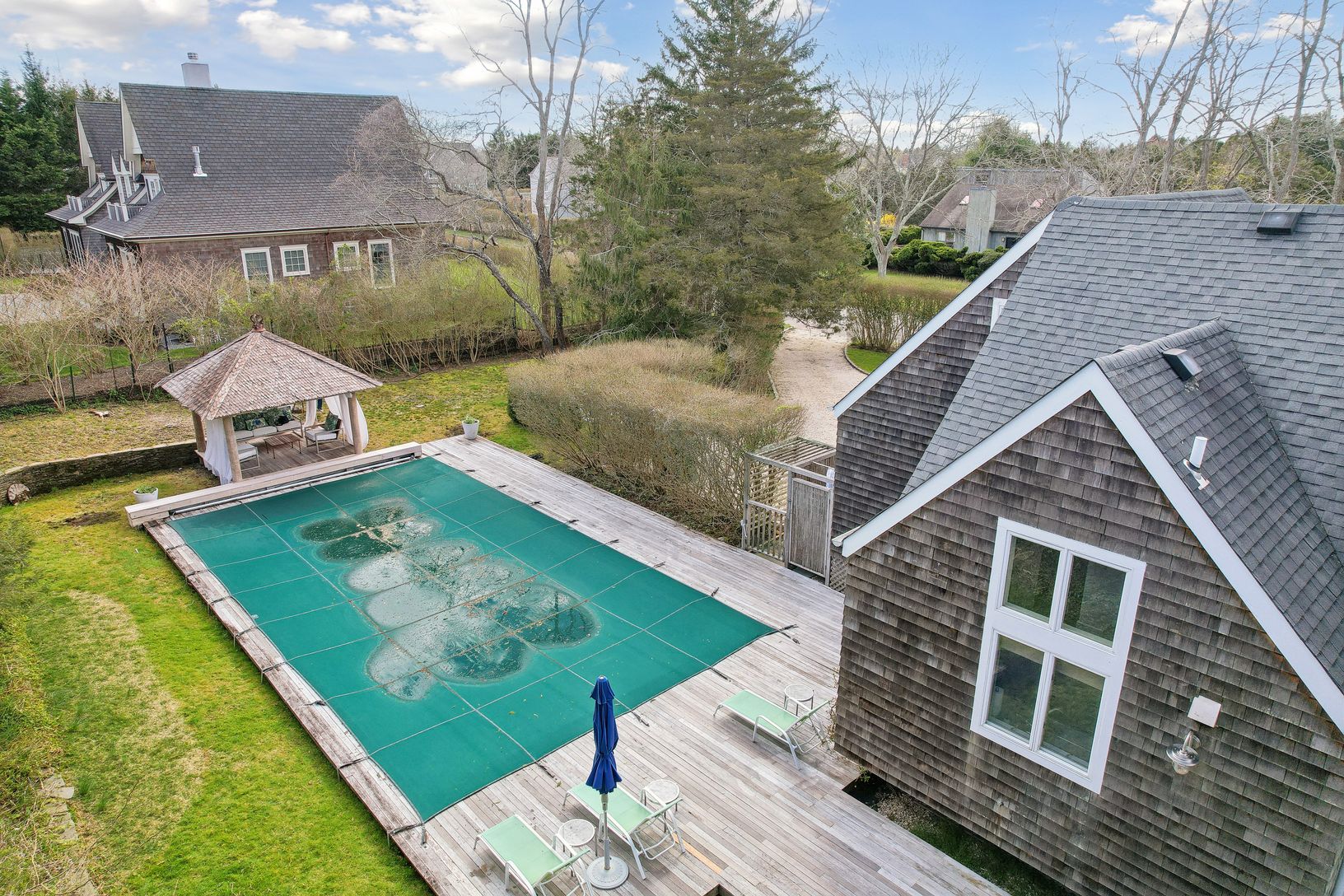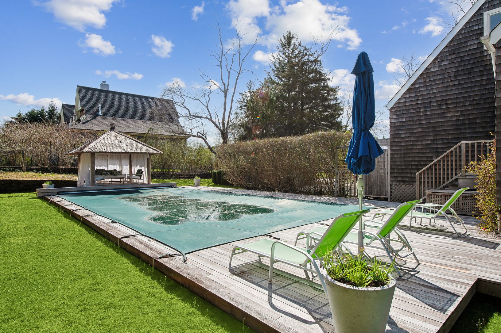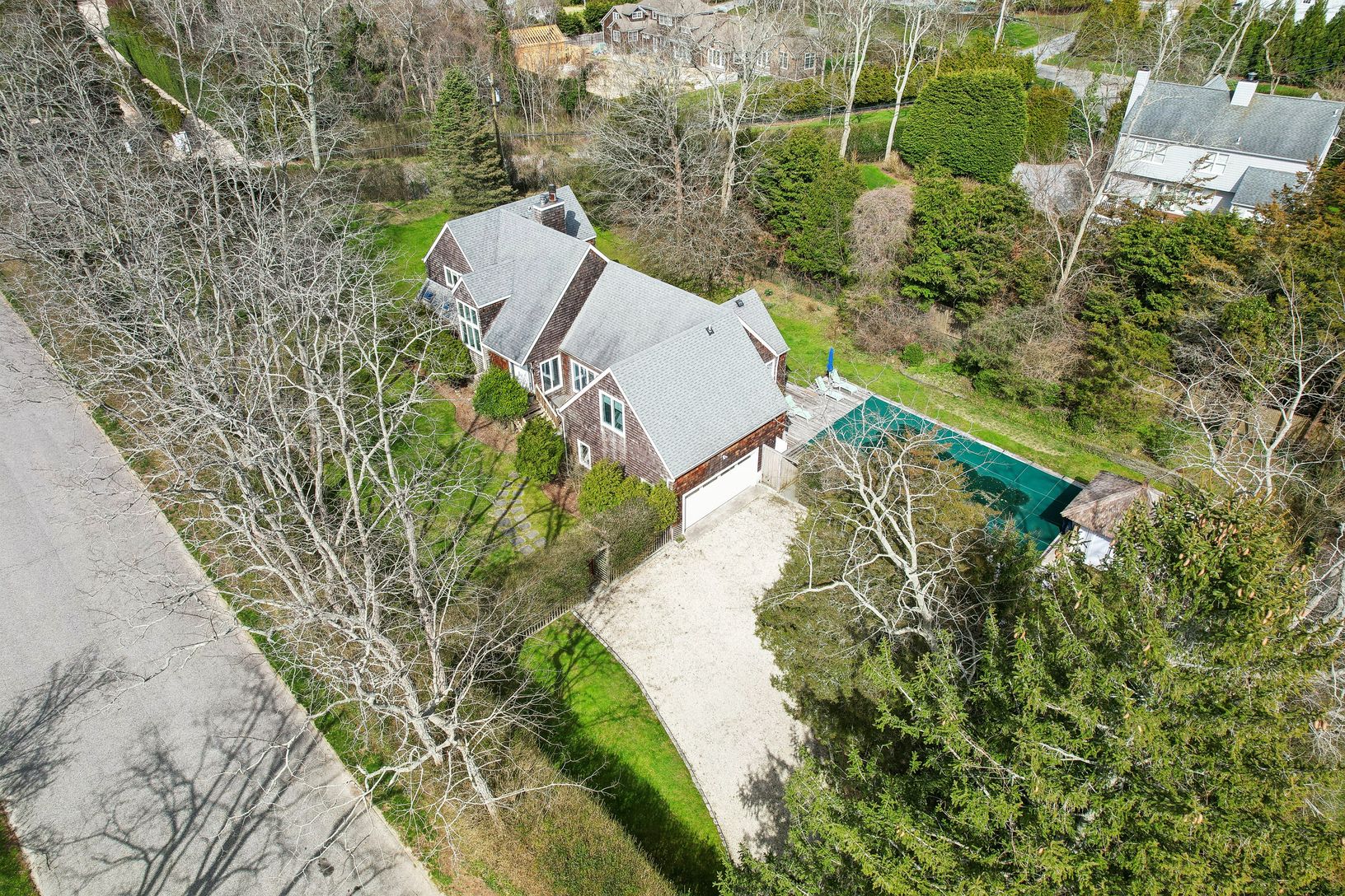 Welcome to this Southampton Village Post Modern. This 5 bedroom and 3.5 bath includes a convenient main level primary and a marble tiled bathroom with radiant heated flooring. Open living room with a fireplace, open chefs kitchen with plenty of space for entertainment. 4 additional bedrooms. Finished lower level, 2 car garage. Relax by the heated salted water pool under the cabana. This beautiful property sits across the street from a spr