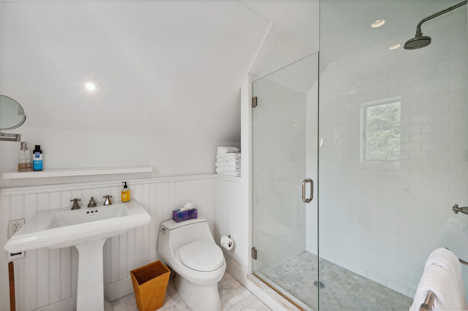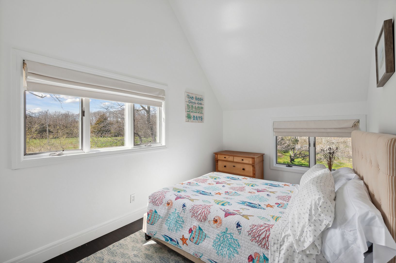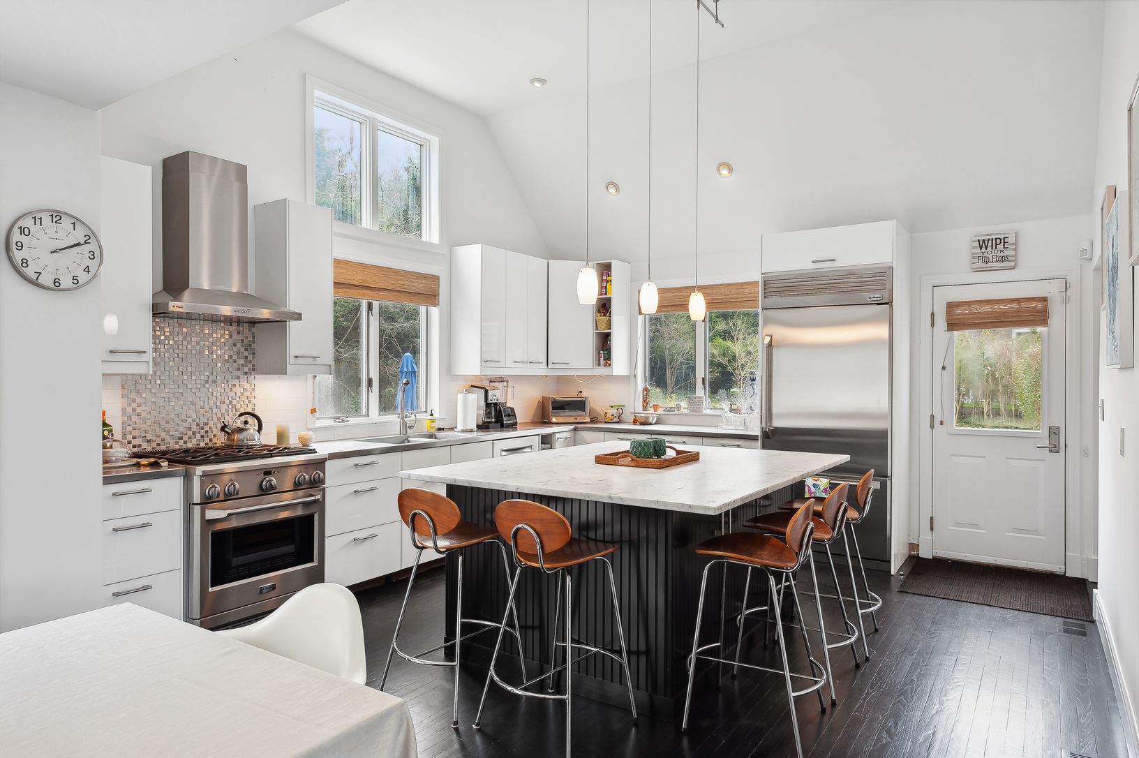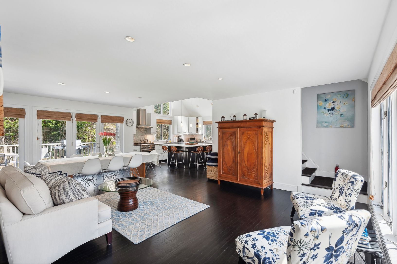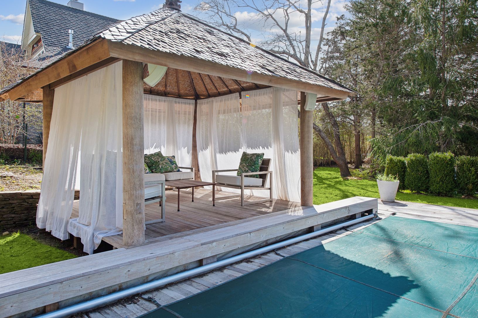Welcome to this Southampton Village Post Modern. This 5 bedroom and 3.5 bath includes a convenient main level primary and a marble tiled bathroom with radiant heated flooring. Open living room with a fireplace, open chefs kitchen with plenty of space for entertainment. 4 additional bedrooms. Finished lower level, 2 car garage. Relax by the heated salted water pool under the cabana. This beautiful property sits across the street from a spr