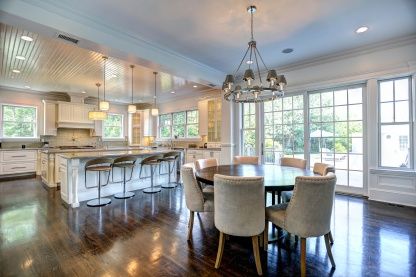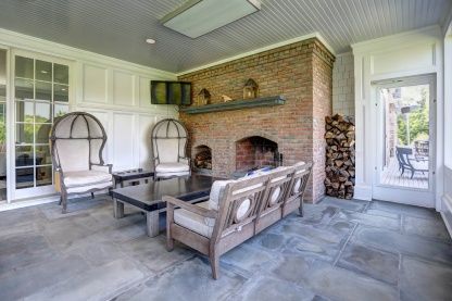 Situated down a long driveway is a 5,000 +/- square foot situated on 1.20 +/- acres. An open floor plan with a double-height foyer, a great room and living room both with woodburning fireplaces. A large formal dining room leading into an expansive kitchen with two islands and Wolfe and Sub-Zero appliances.There is an elevator servicing all three floors of the residence. Upstairs there are five en-suite bedrooms, including the master suite with