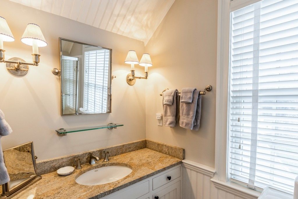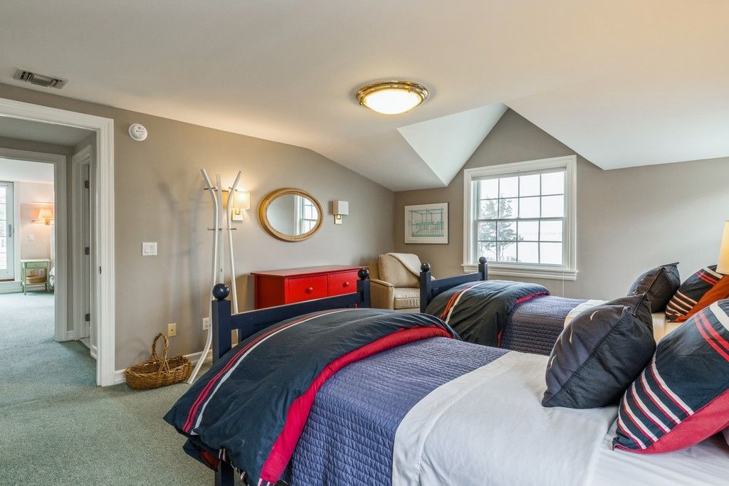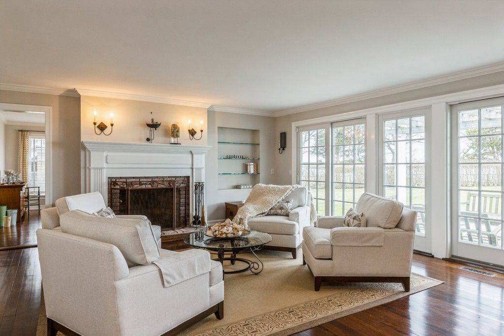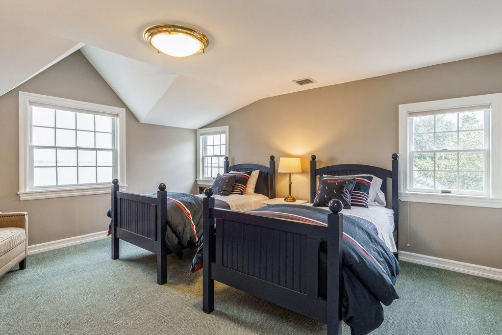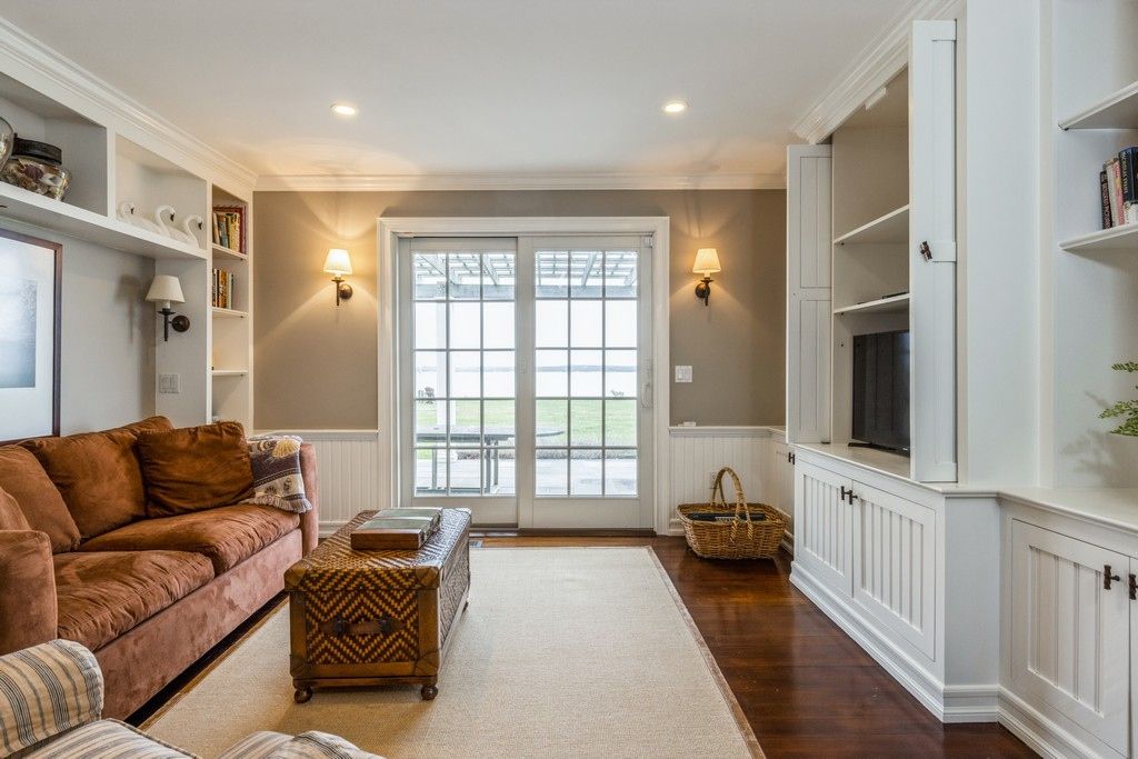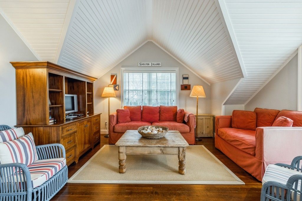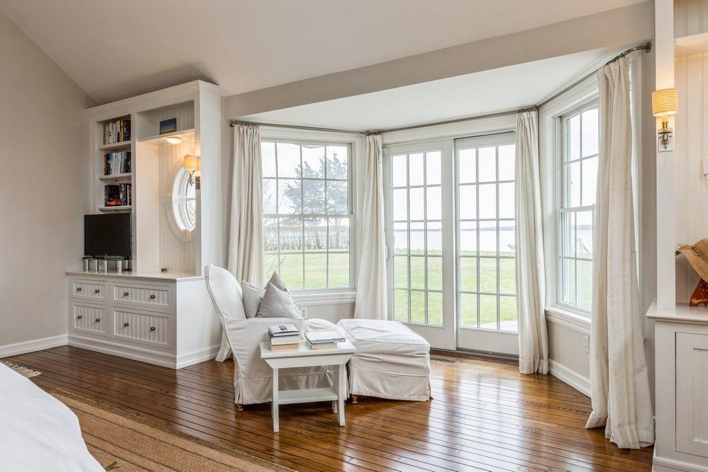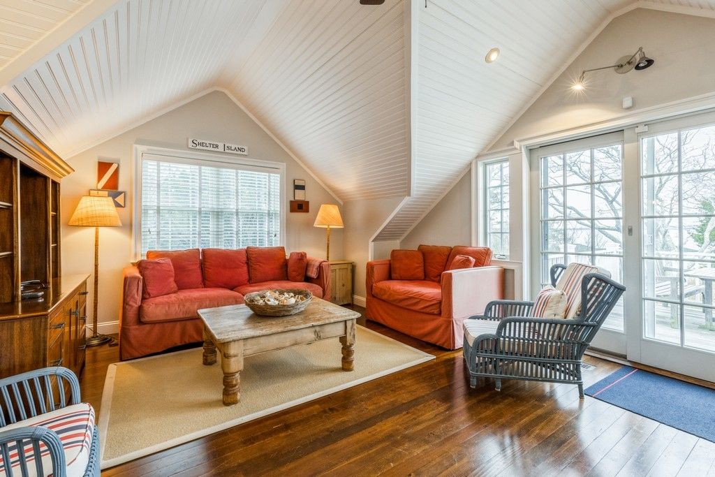 A rare opportunity to rent this prime waterfront Nantucket-style beach house with sweeping views of Great Peconic Bay and the shorelines of both the North and South Forks. This 5 bedroom, 4 1/2 bath house with guest cottage is set on a very private 1.2 acres with its own 200 feet of sandy beach and waterside pool. Wraparound stone patios with pergola, lovely seating areas and expansive lawns complete this unique summer outdoor experience. A