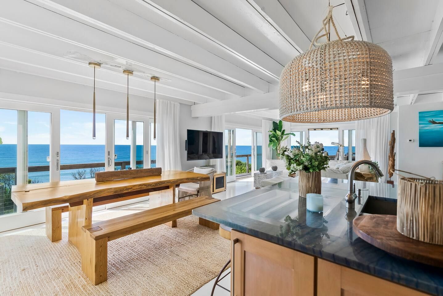 Perched directly above the Atlantic, Surfside Villa is an iconic Peter Blake designed oceanfront retreat and a masterclass in mid-century coastal architecture, thoughtfully restored to honor its original vision. The home’s signature upside-down layout places the expansive living, dining, and en