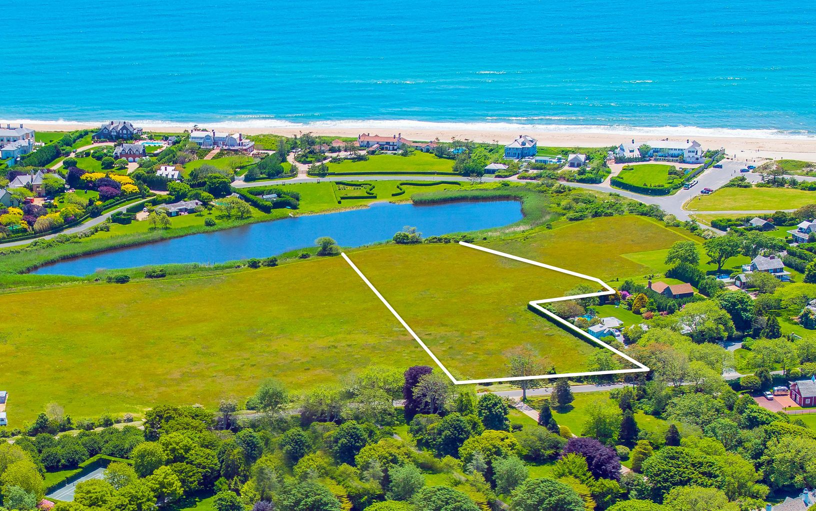 First time offered in 75 years this 3.7 acre vacant lot boasts frontage on "Lily Pond" along with potential stunning second floor ocean views. Take full advantage of ocean breeze, light, and soft sound of waves hitting sand. Very close proximity to Georgica Beach. Build up to 10,235sqft.
