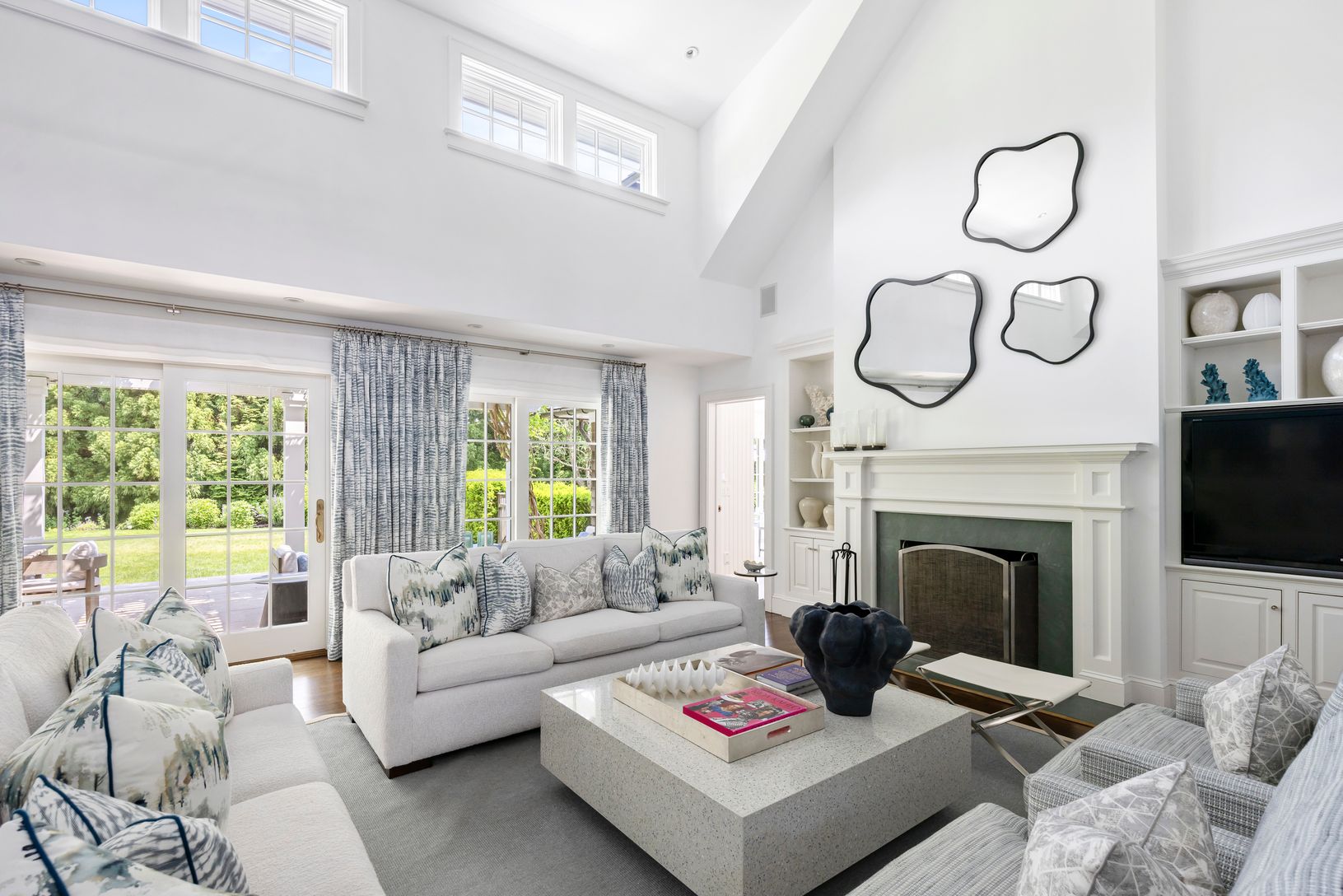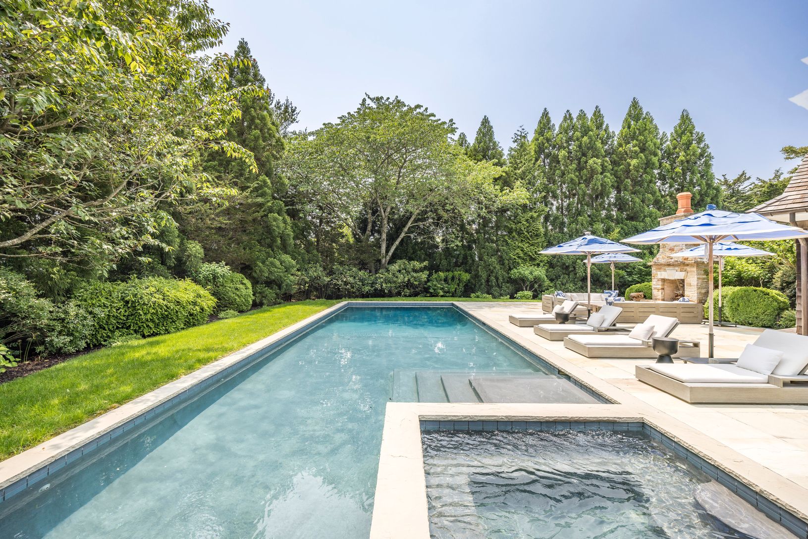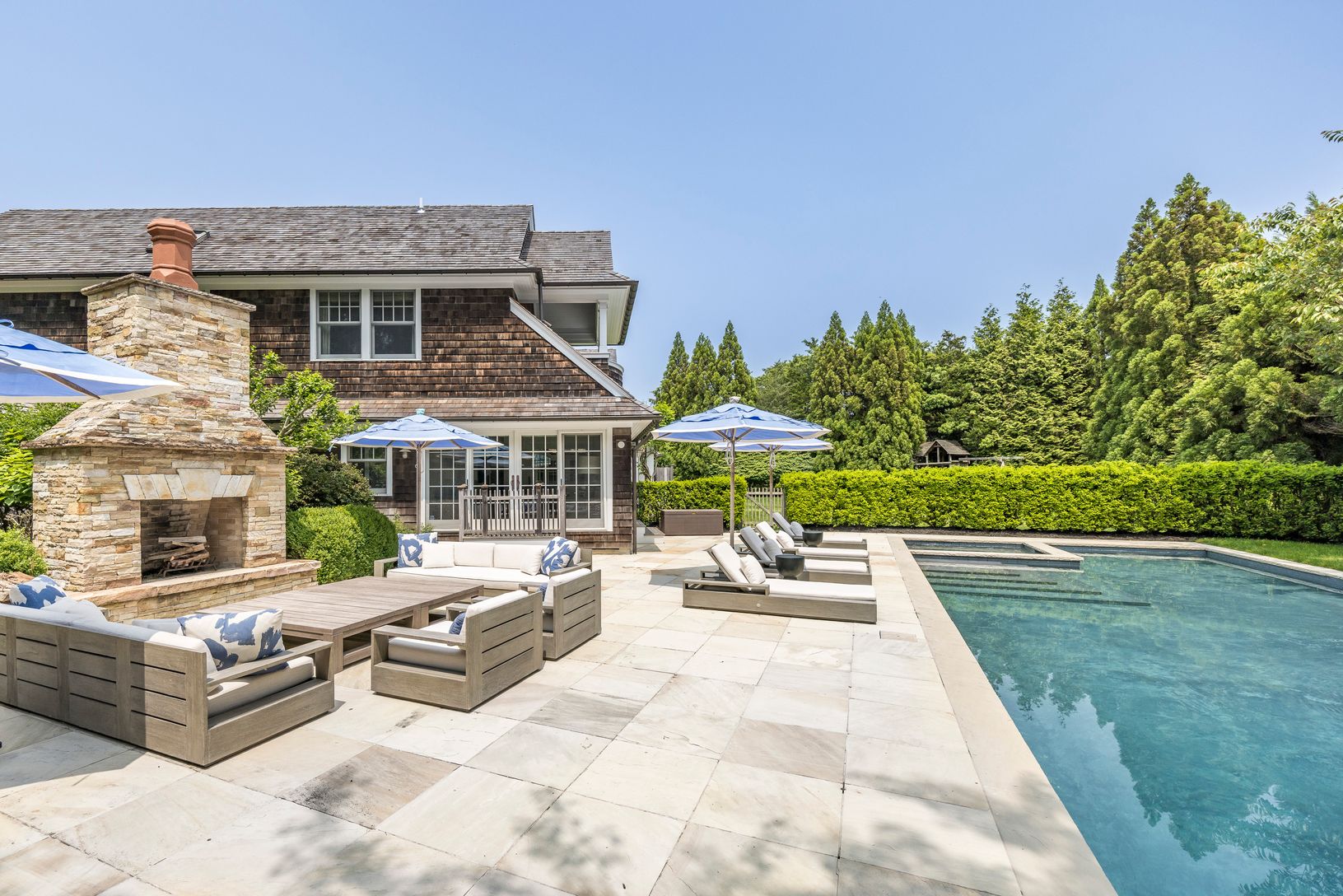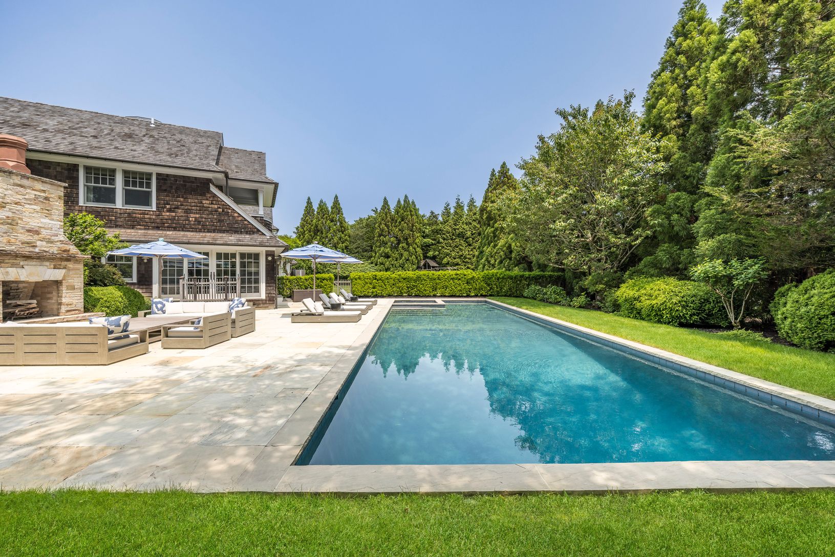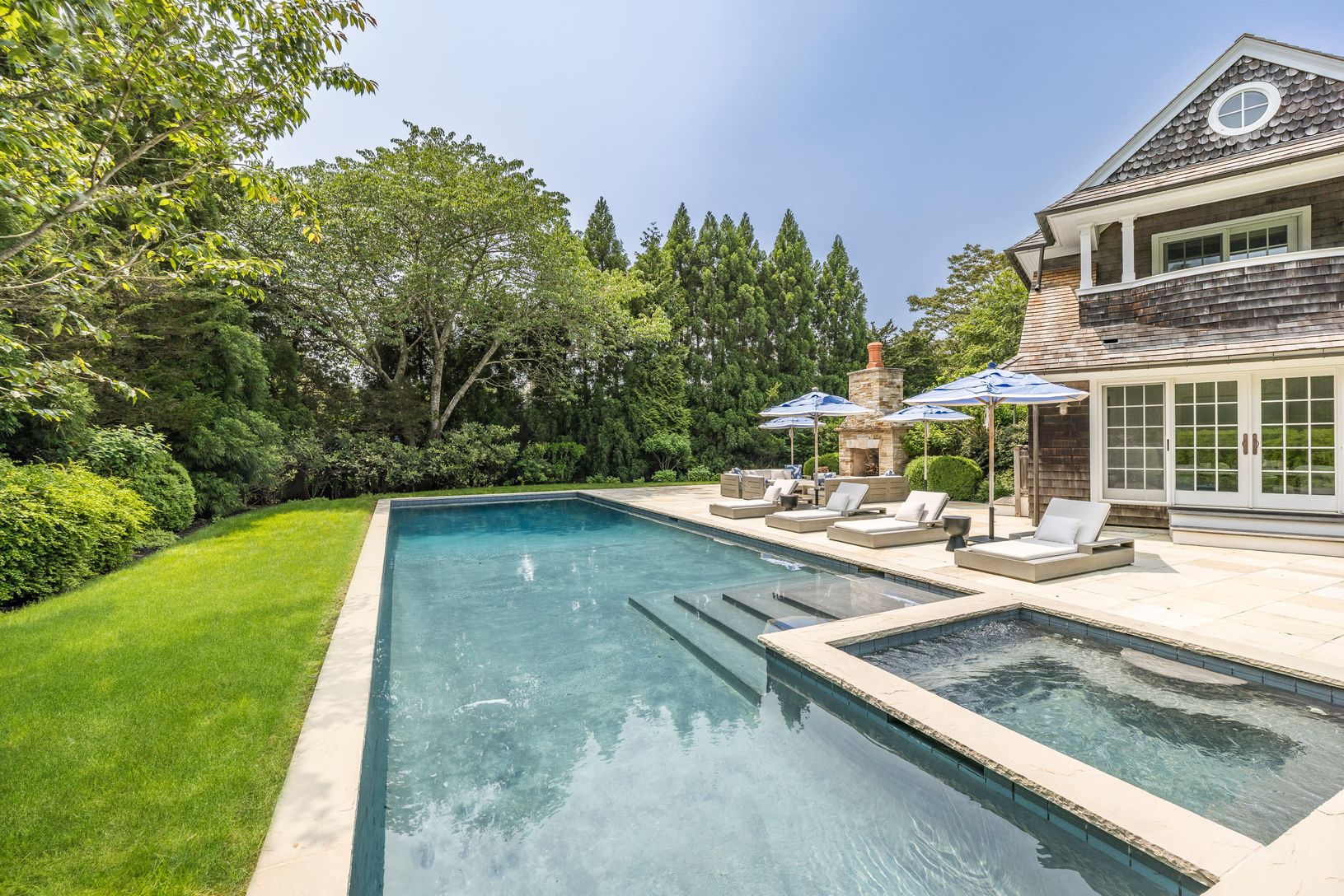 Exquisite Amagansett Traditional, just a stone's throw from Atlantic Beach. Driving up this private flag lot, you are greeted by lush mature landscaping and a quintessential Hamptons cedar shake home. Entering the house through an open foyer, you are immediately struck by the scale and size of the double height great room. With a wall of sliding doors onto the back patio, seamless indoor/outdoor entertaining is a breeze. For those colder fall