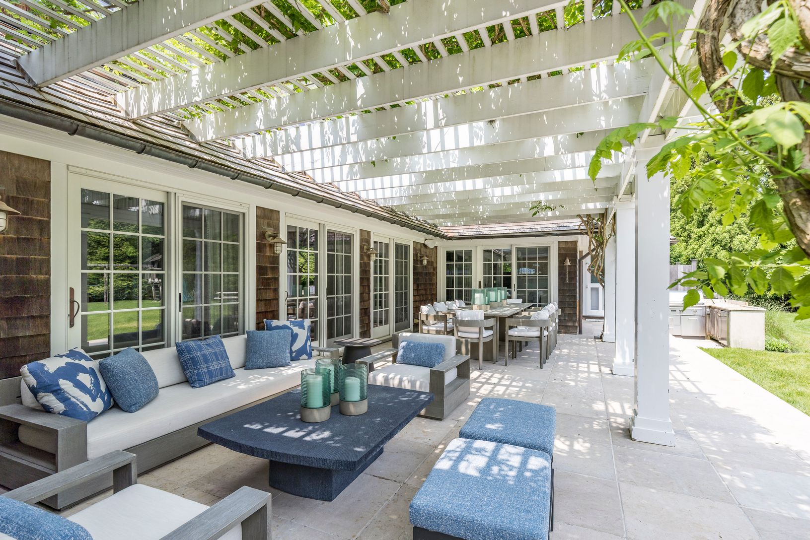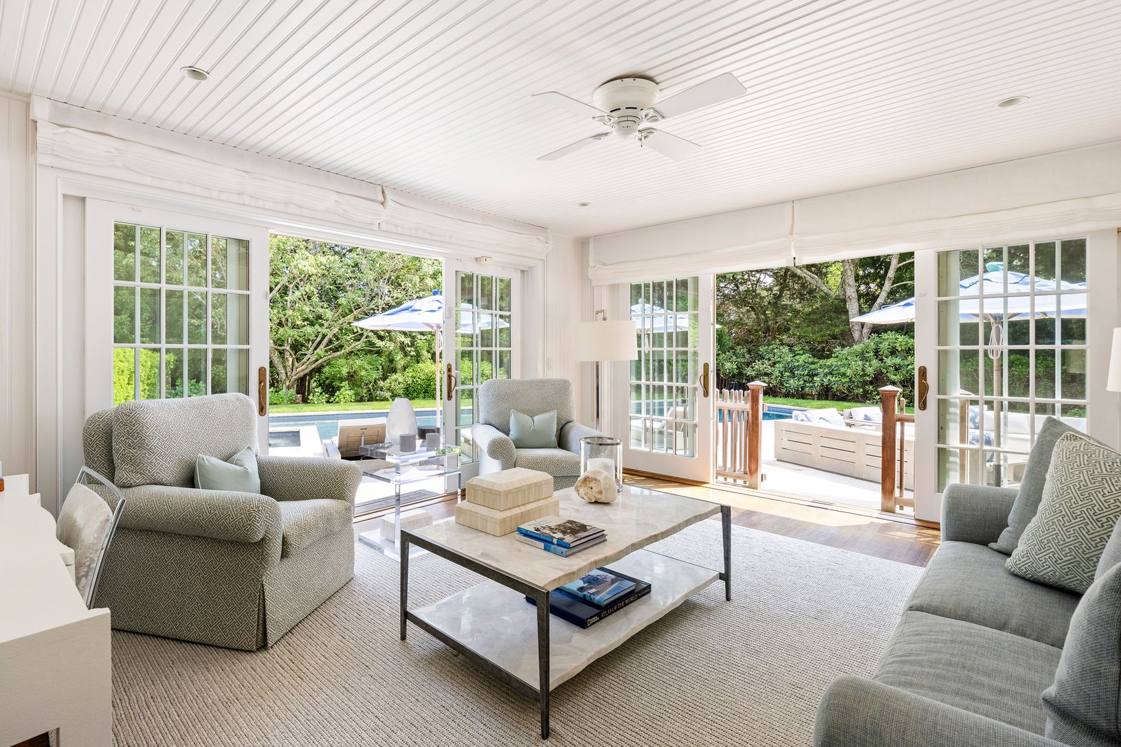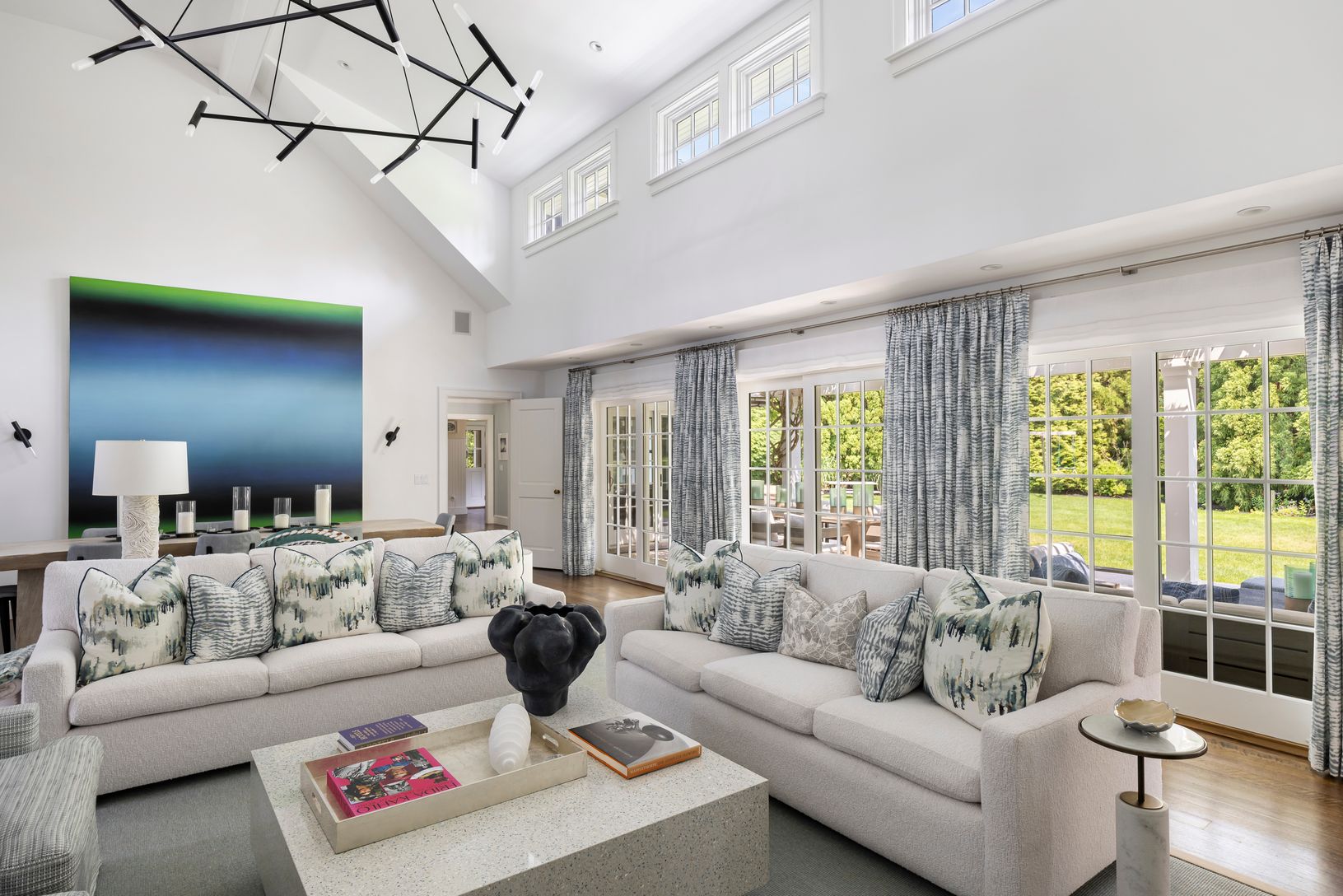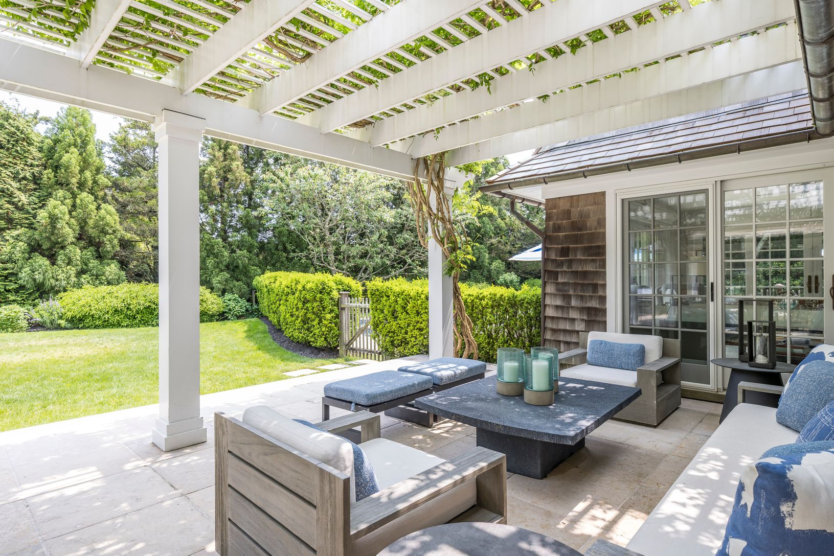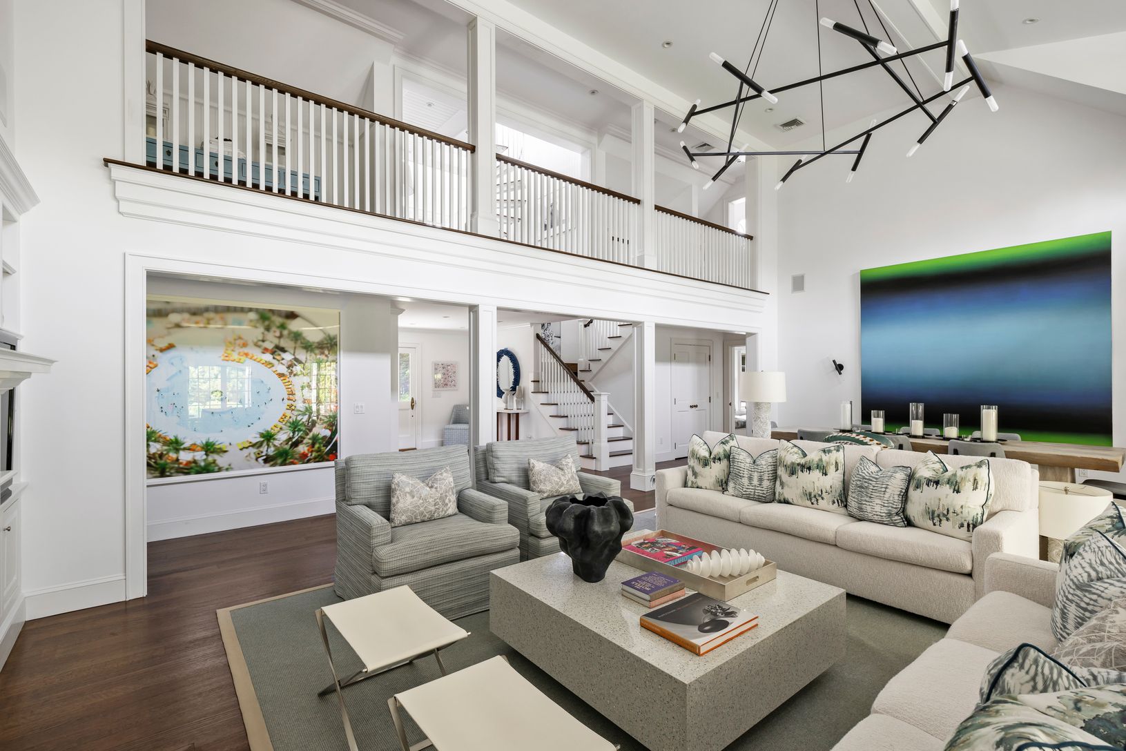 Exquisite Amagansett Traditional, just a stone's throw from Atlantic Beach. Driving up this private flag lot, you are greeted by lush mature landscaping and a quintessential Hamptons cedar shake home. Entering the house through an open foyer, you are immediately struck by the scale and size of the double height great room. With a wall of sliding doors onto the back patio, seamless indoor/outdoor entertaining is a breeze. For those colder fall